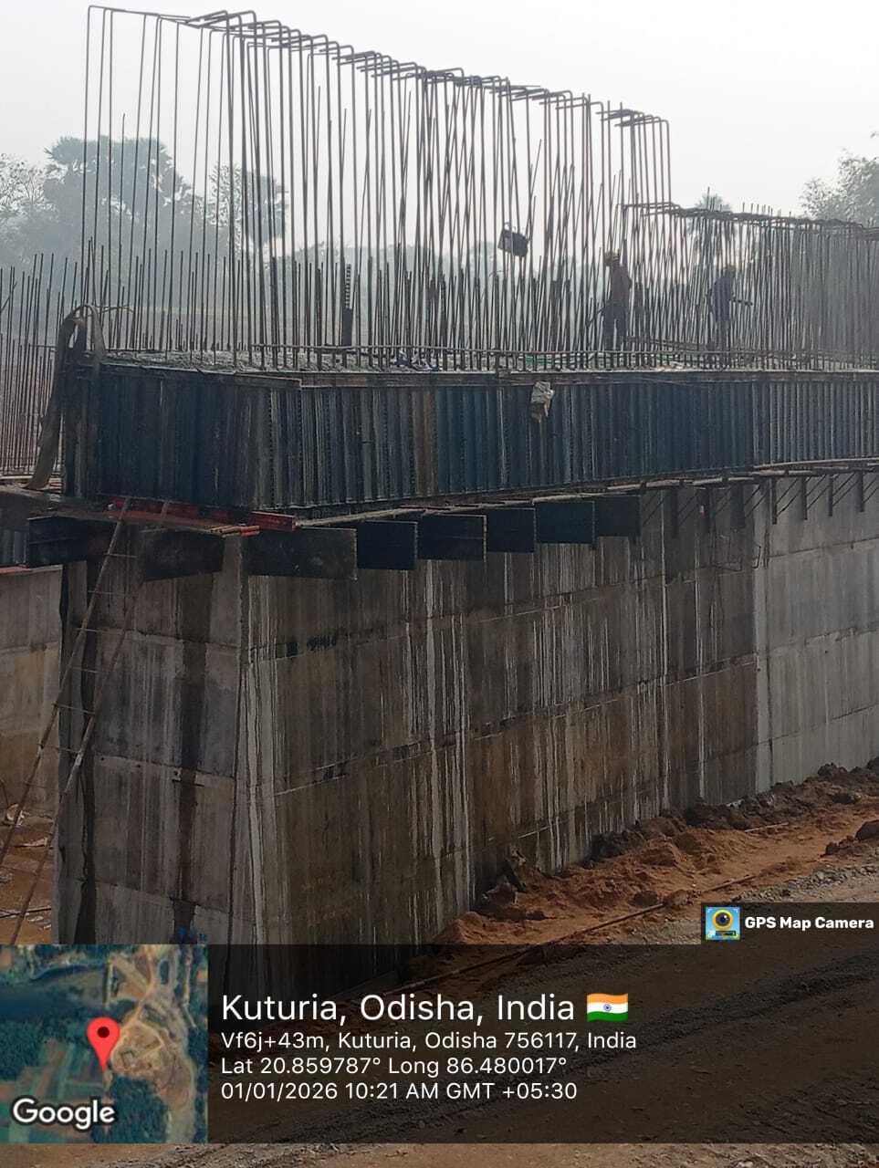 Reinforcement binding & shuttering at U/S & D/S right flank wall Block-2 is in progress on 06.01.2026