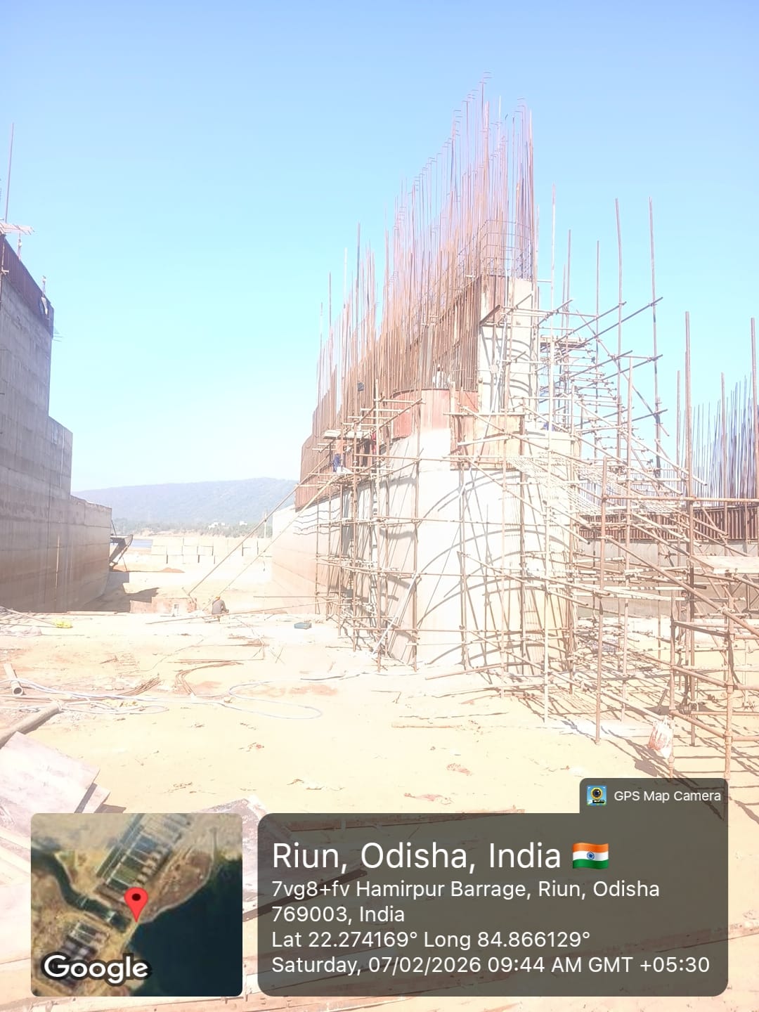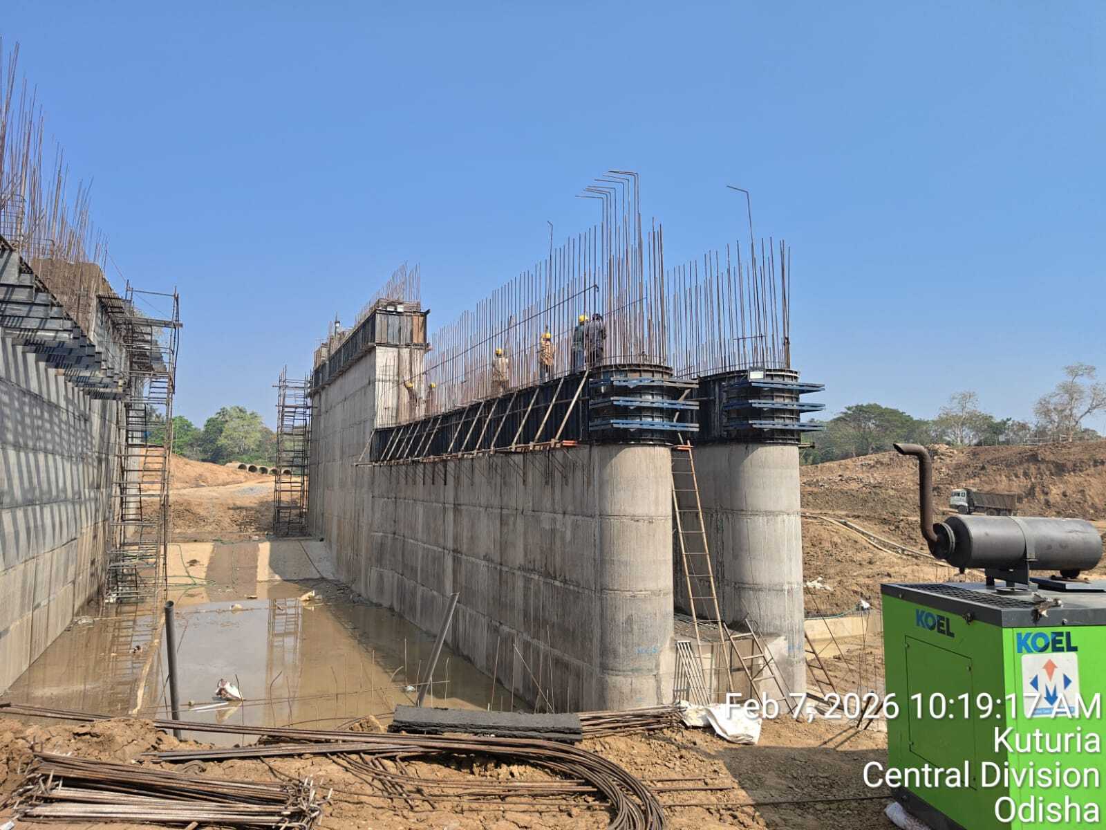 Downstream divide wall reinforcement fixing work in progress at baitarani iss project.