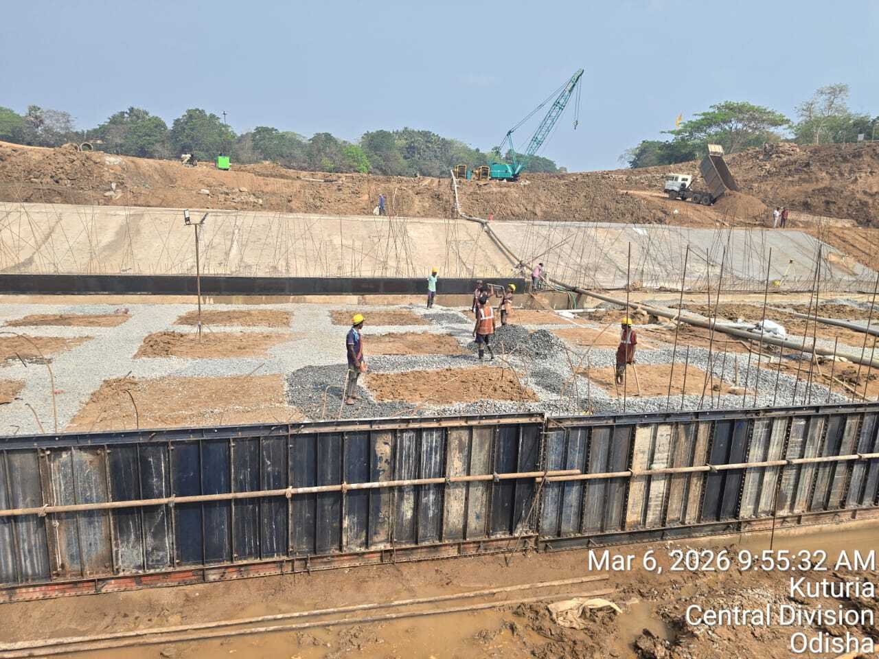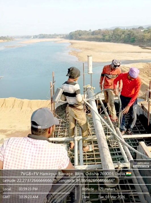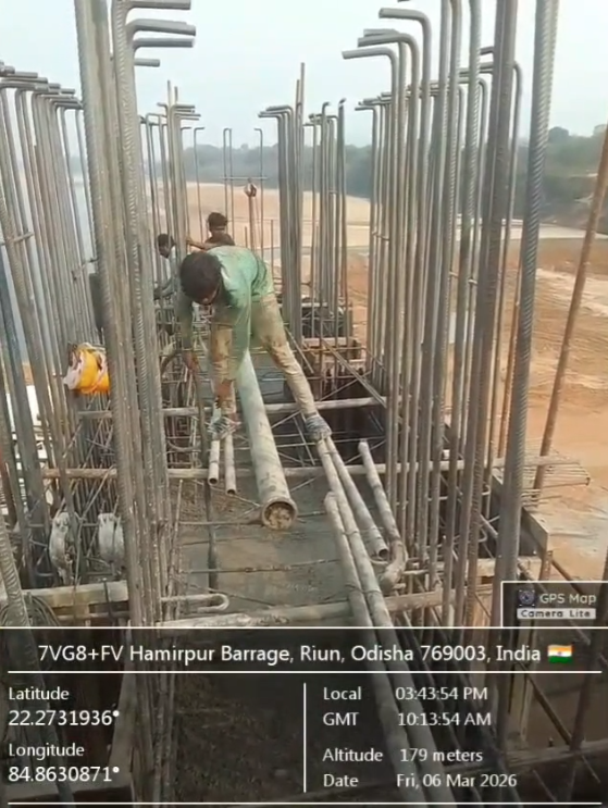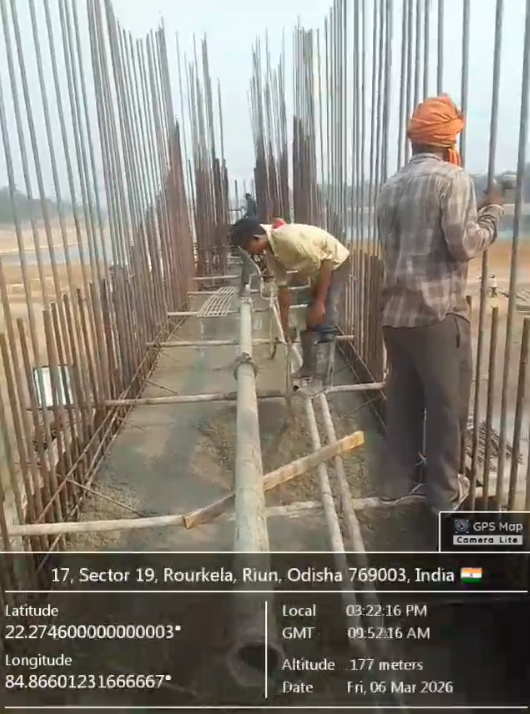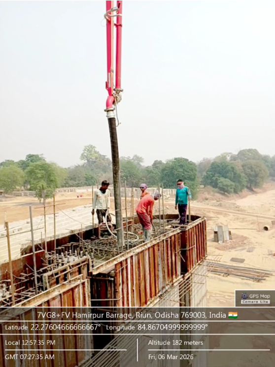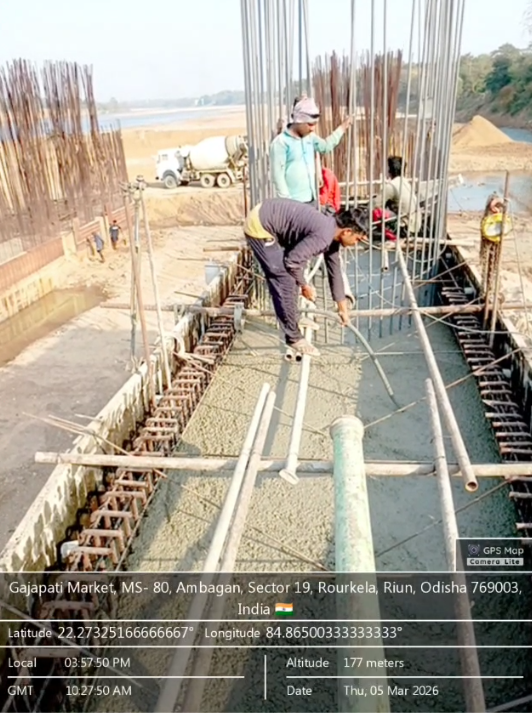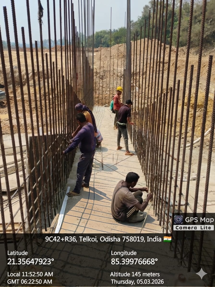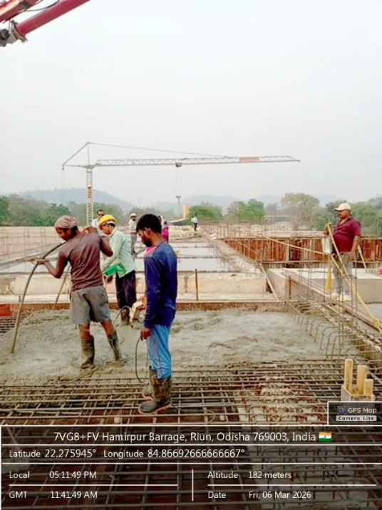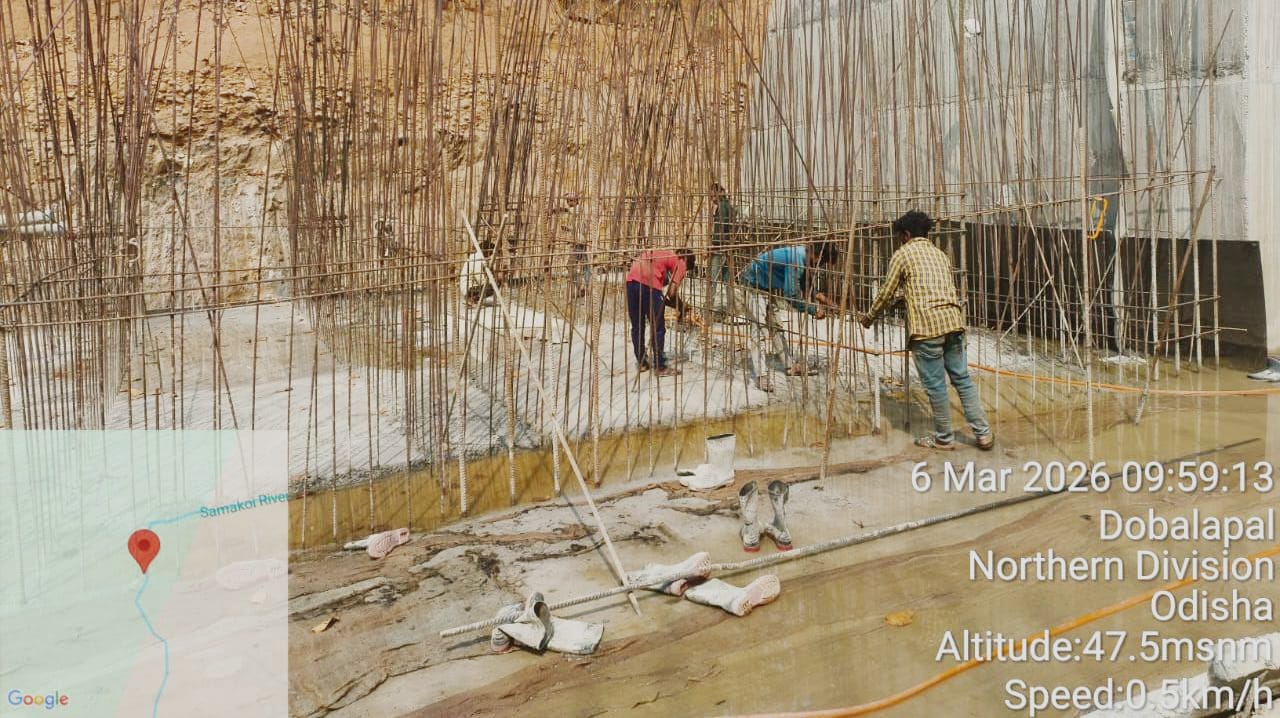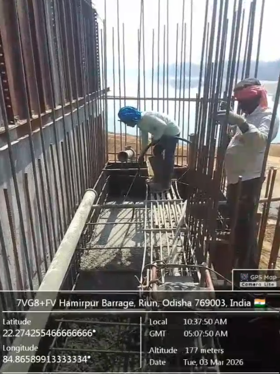 (v) Area is cleaned using air water pressure and passed by SE, KID, Bhawanipatna and ready to place concrete with RCC M35A20 grade upto RL-247.00m on 03.03.2026