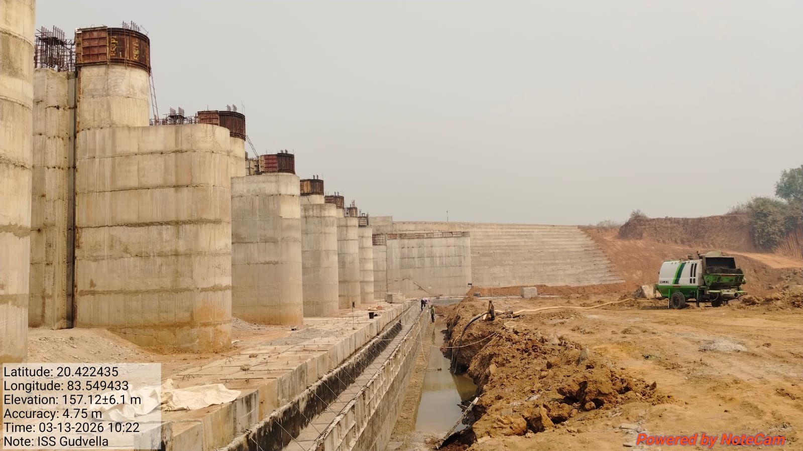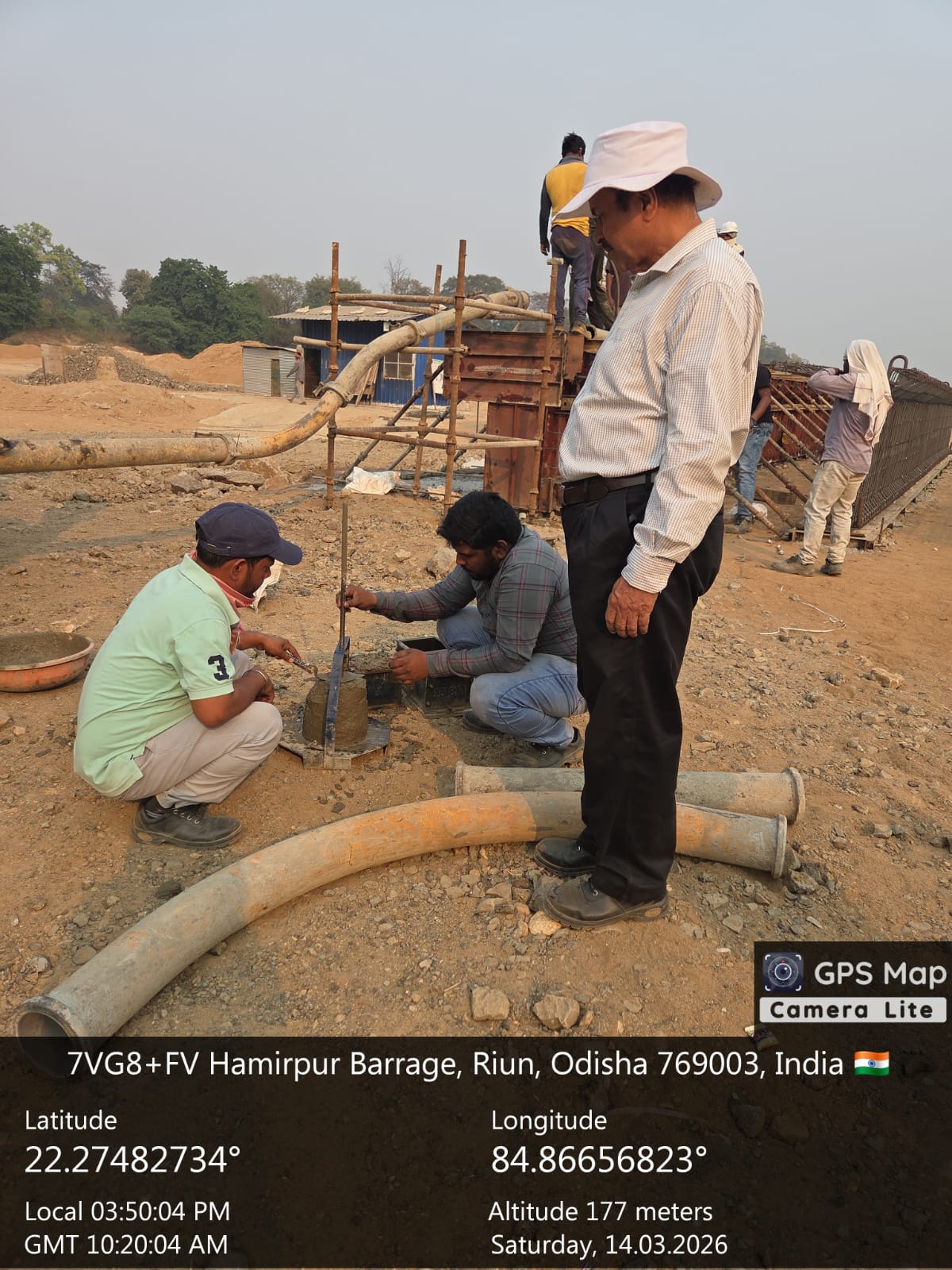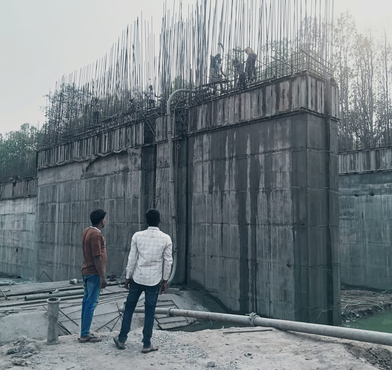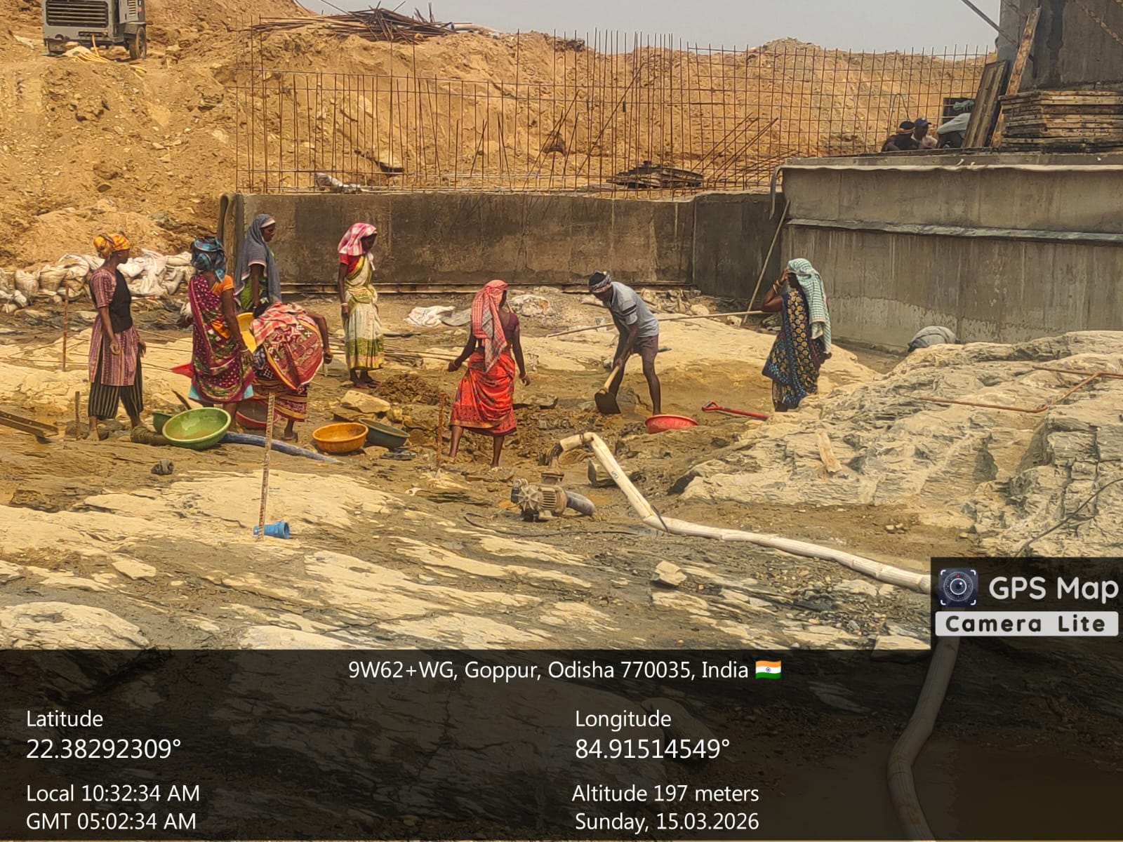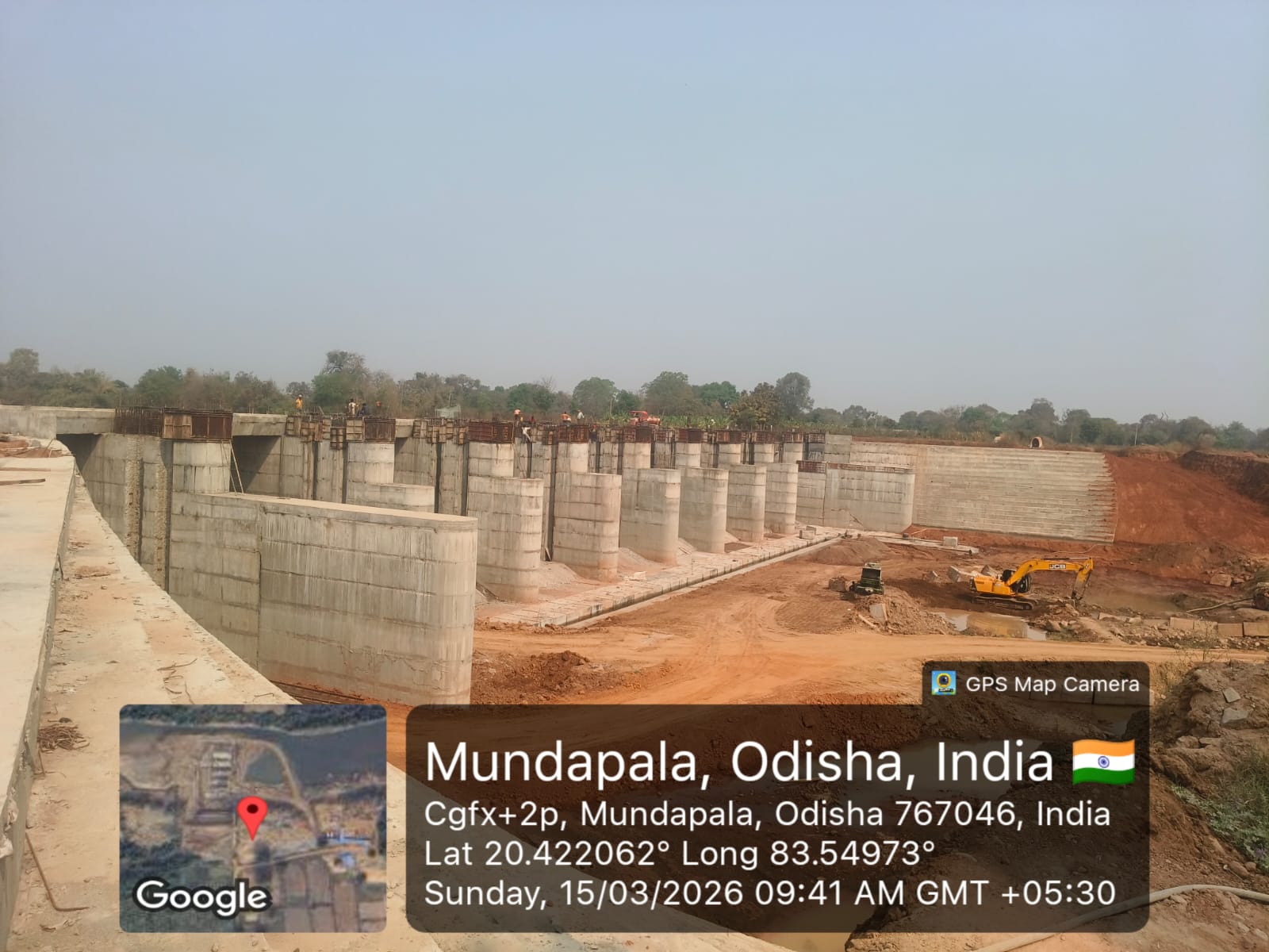 Concrete casting with RCC M35A20 grade for 2nd stage concrete at pier no.1& left abutment for 2nd lift of undersluice bay-1 is in progress in presence of PM EPC agency, Site Engineers of PMC & EPC agency. The slump test value is 89mm on 14.03.2026