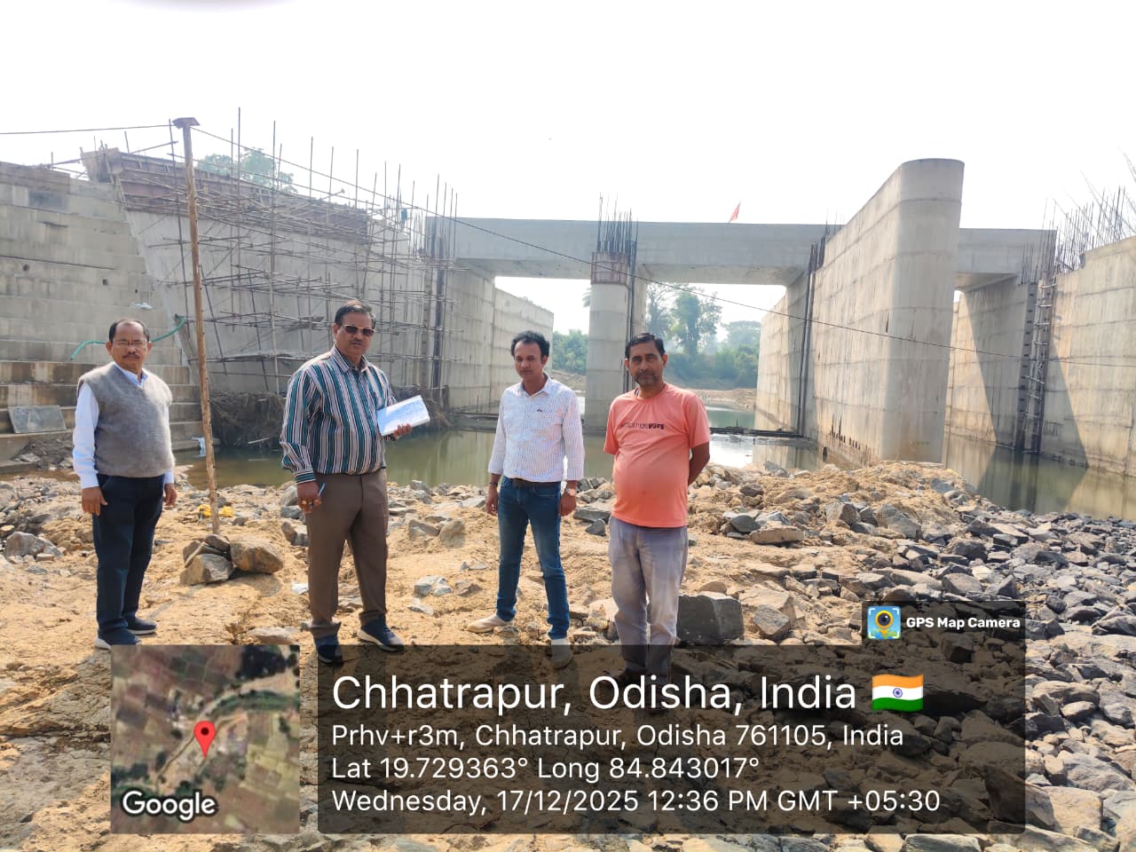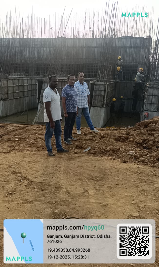 Engineer-in-Chief, Planning & Design, Department of Water Resources (DoWR) with C.E & BM, Brahmani Basin Samal visited and inspect the ISS Construction Site in presence of A.E.E & A.E, AID and C.M.E, I.E.E, QA & QC Expert, Geologist of PSS team along with representative of EPC Agency.