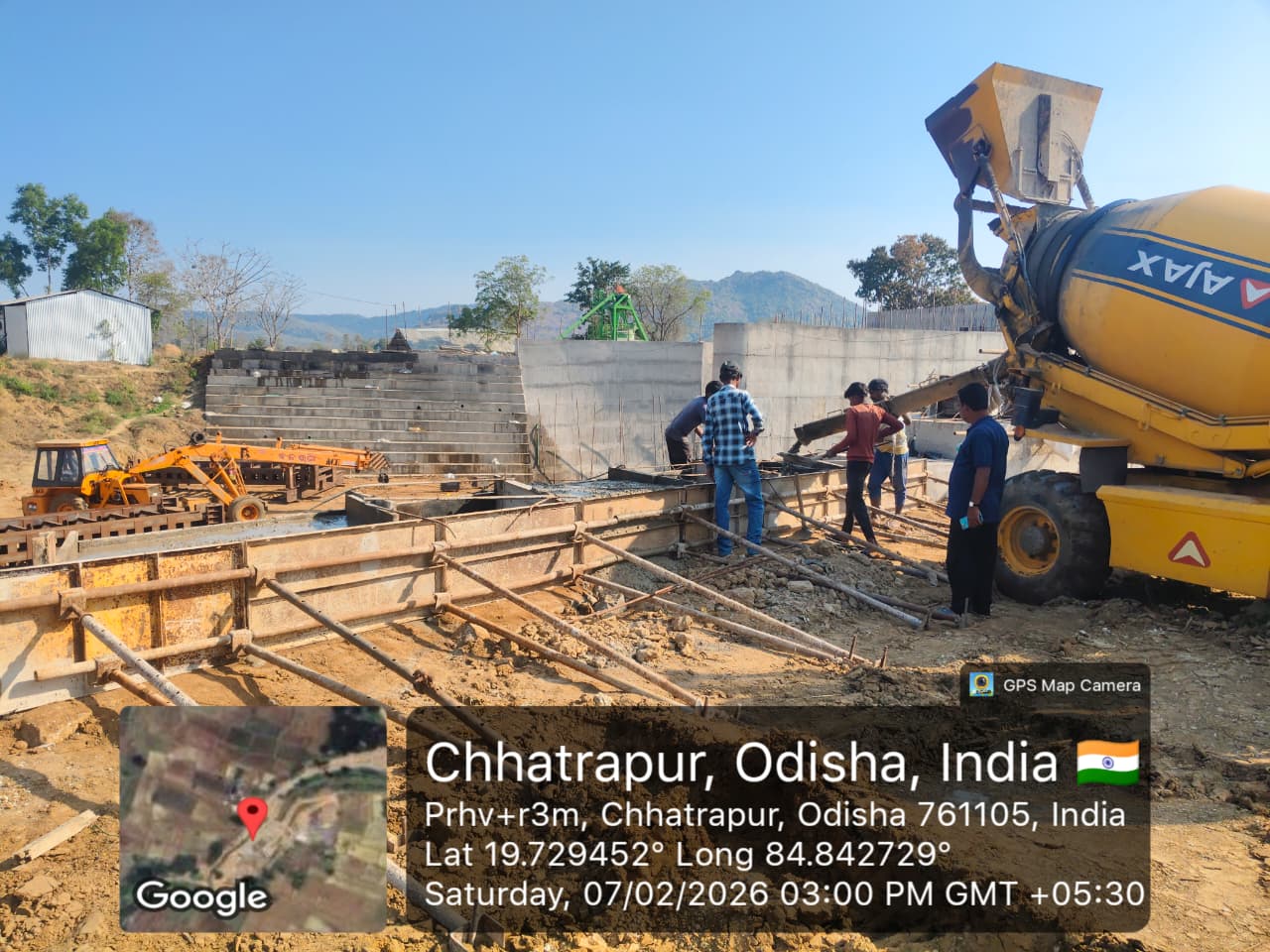 (iii) The concrete surface is cleaned properly through air water jetting and passed by SE, KID Bhawanipatna for placing concrete with PCC M15A20 grade on 09.02.2026
