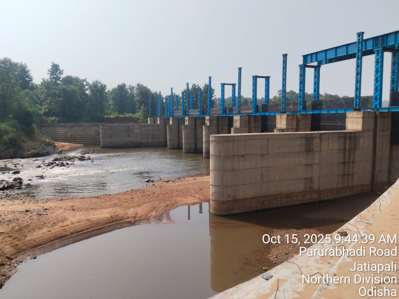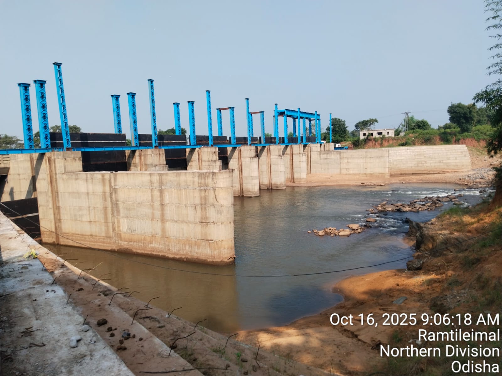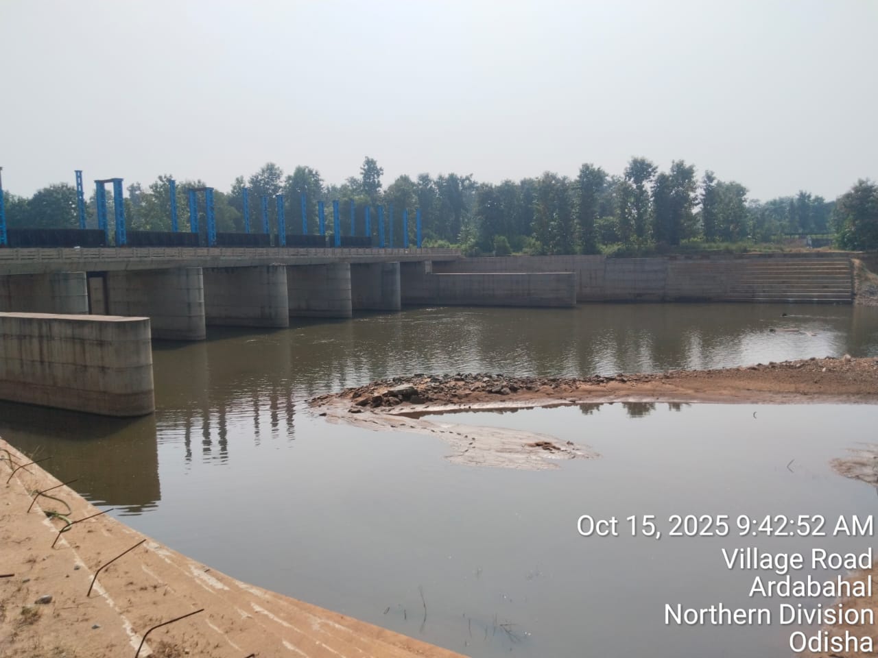 View showing flow of river from D/S of river . Flow direction is straight & flow can seen at RL-215.100 mtr against design crest level RL- 215.000 mtr .i.e 0.1 mtr flood lift .