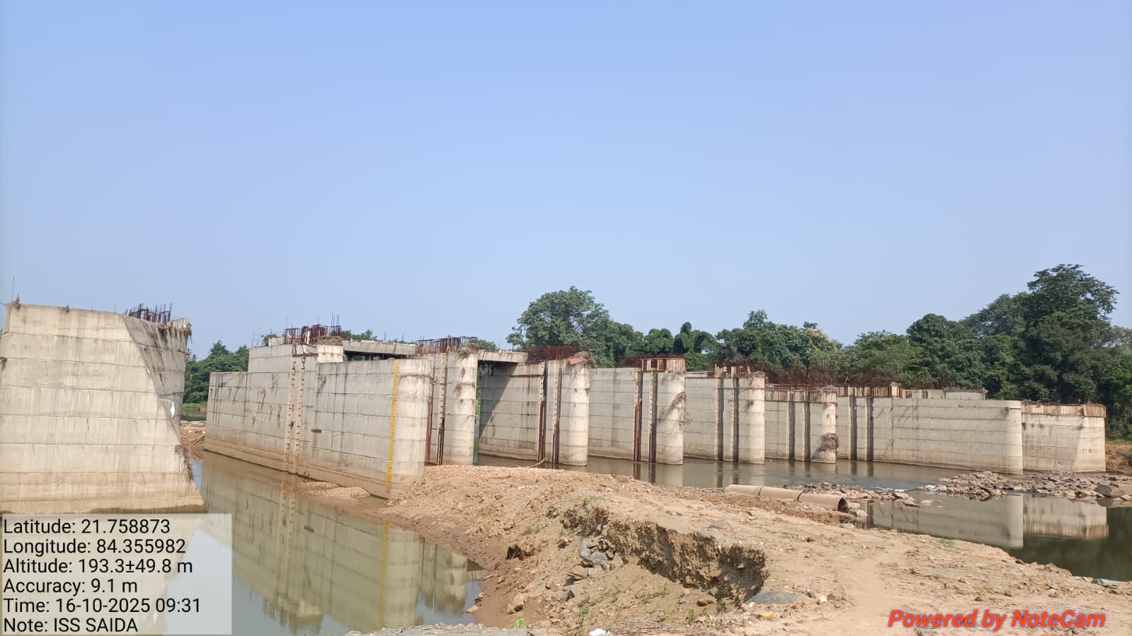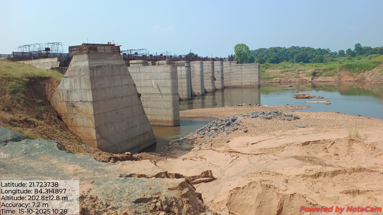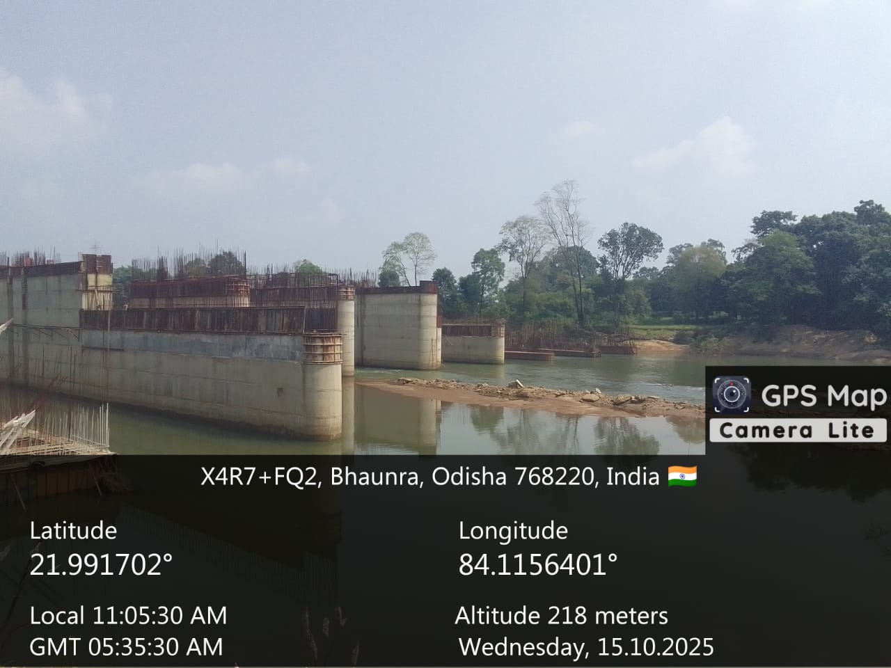 View showing flow of river from D/S of river . Flow direction is straight & flow can seen at RL-215.100 mtr against design crest level RL- 215.000 mtr .i.e 0.1 mtr flood lift .