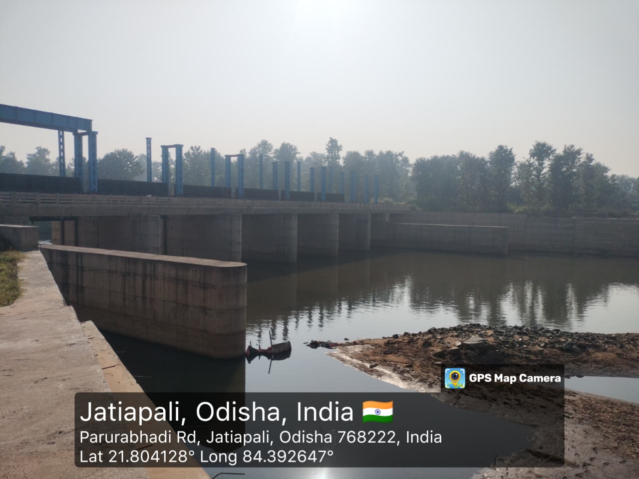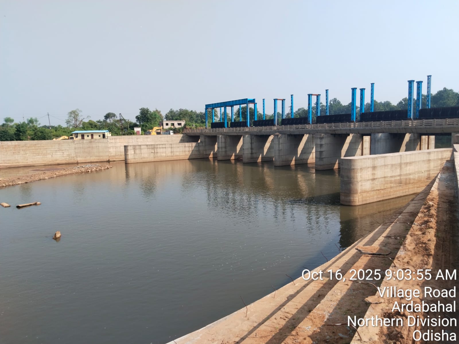 View showing flow of river from D/S side. Flow direction is straight. The direction of flow is seen in middle of the river. Now the flow level is 225.600mt against design crest level 225.500 i.e. flood lift 0.1mt.