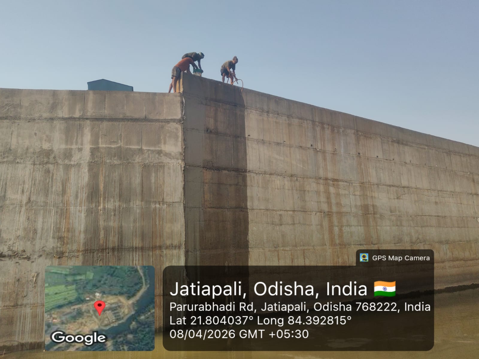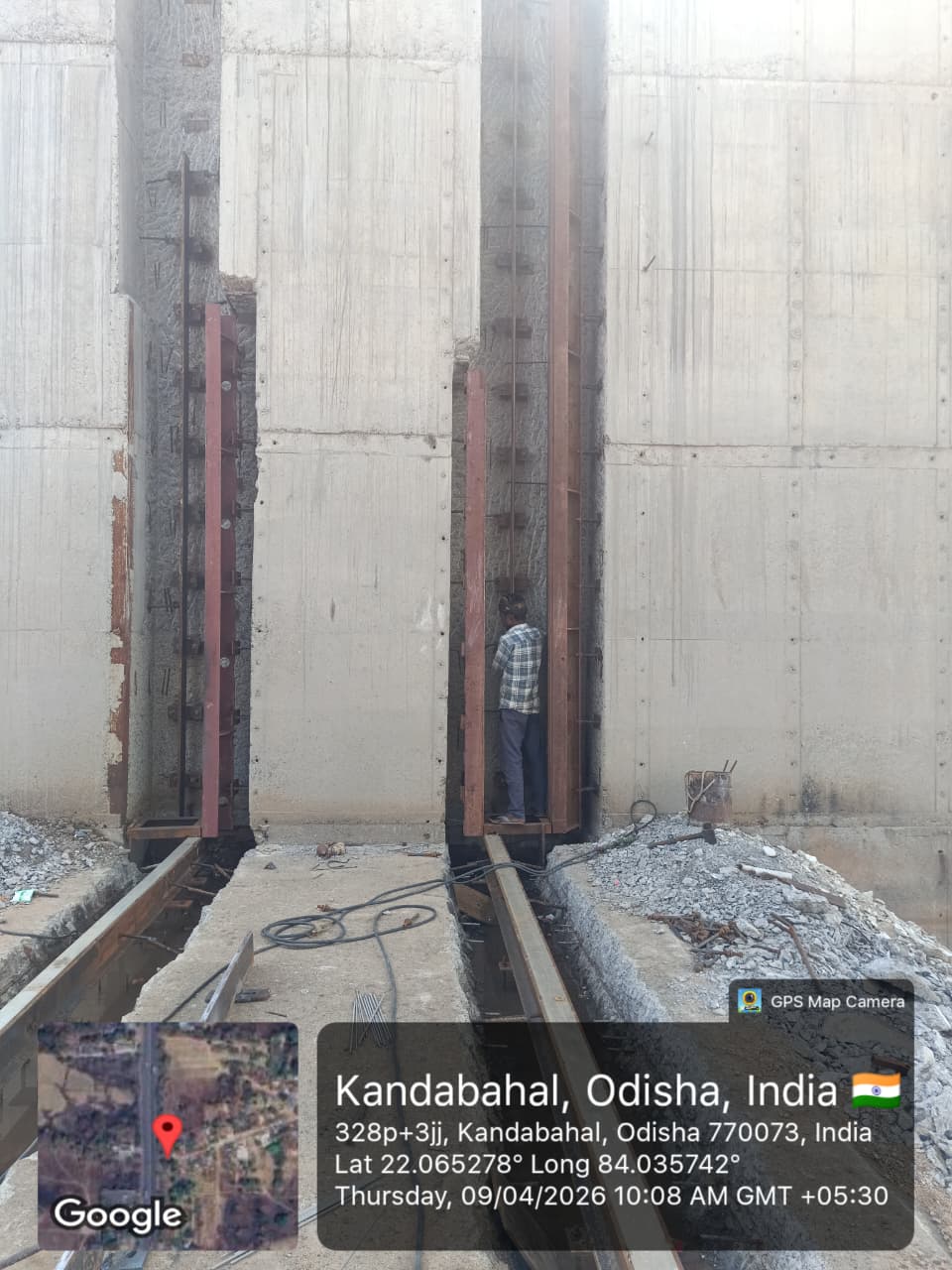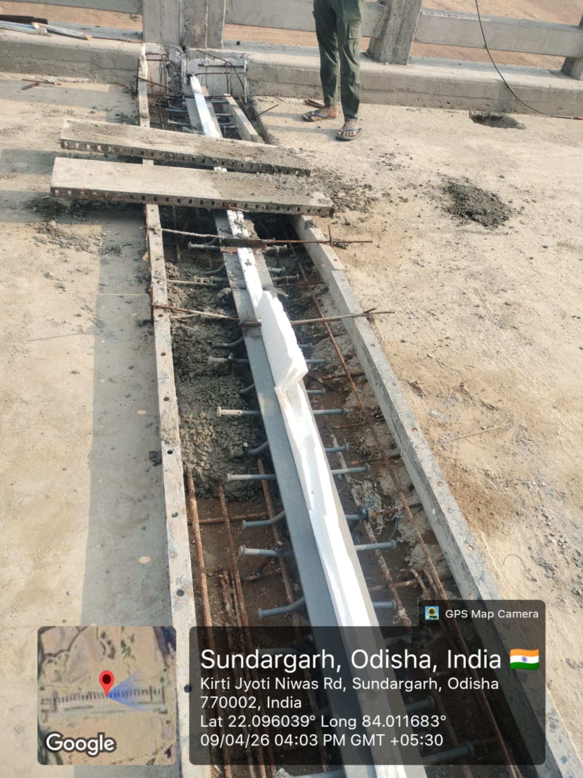 (iii).The area is cleaned properly through air water jet and passed by SE, KID, Bhawanipatna for placing with M35A20 grade on 08.04.2026