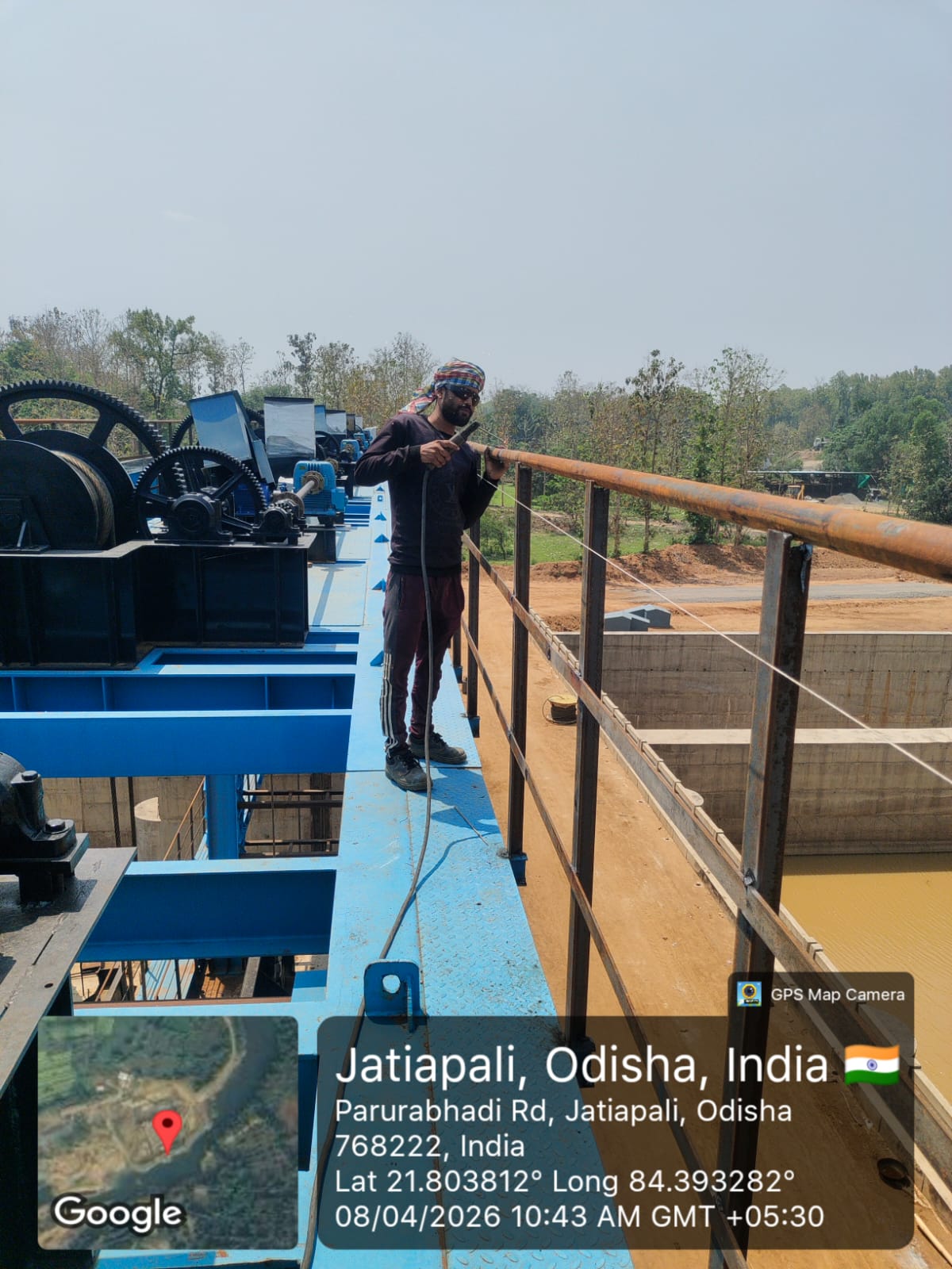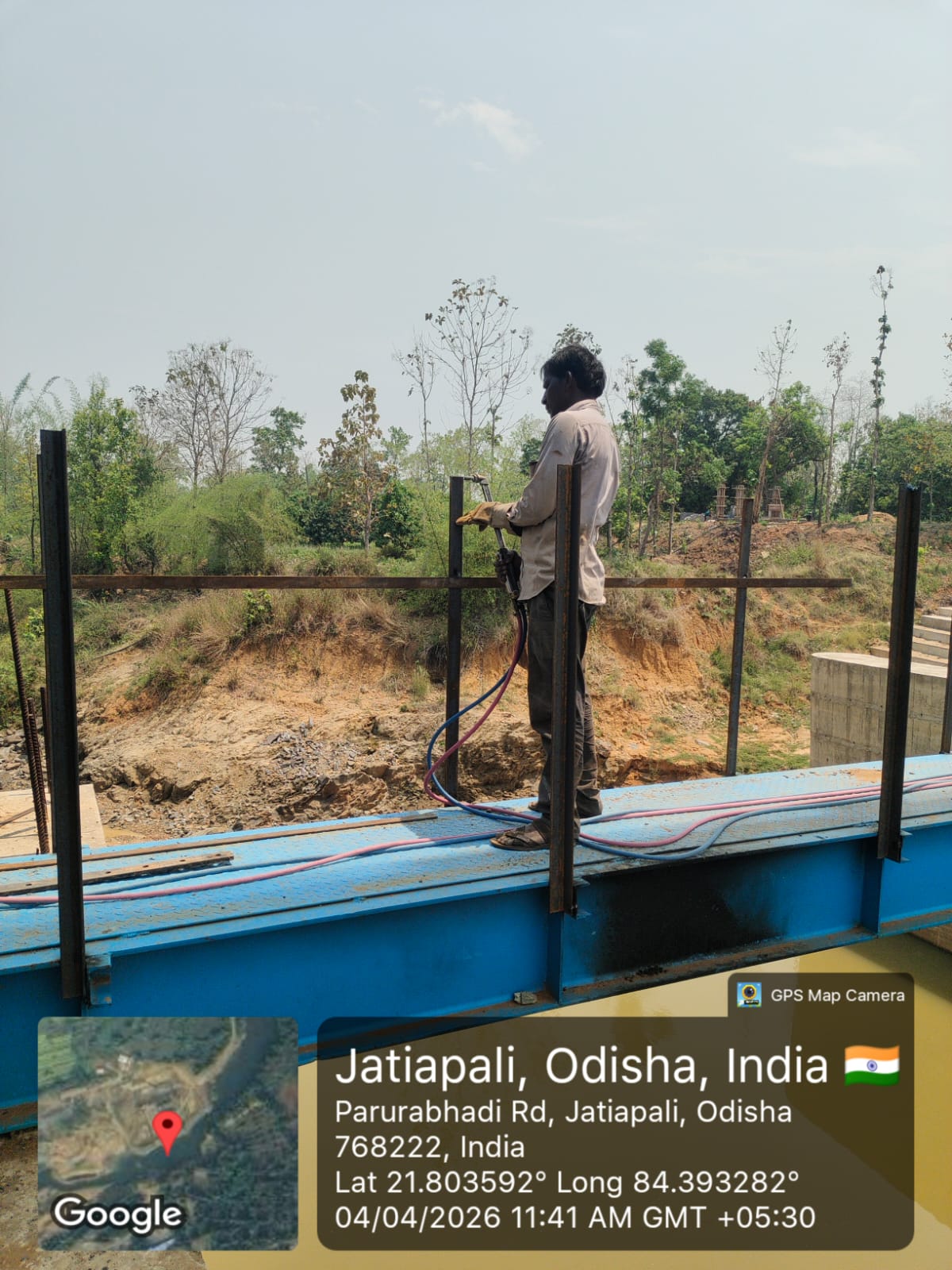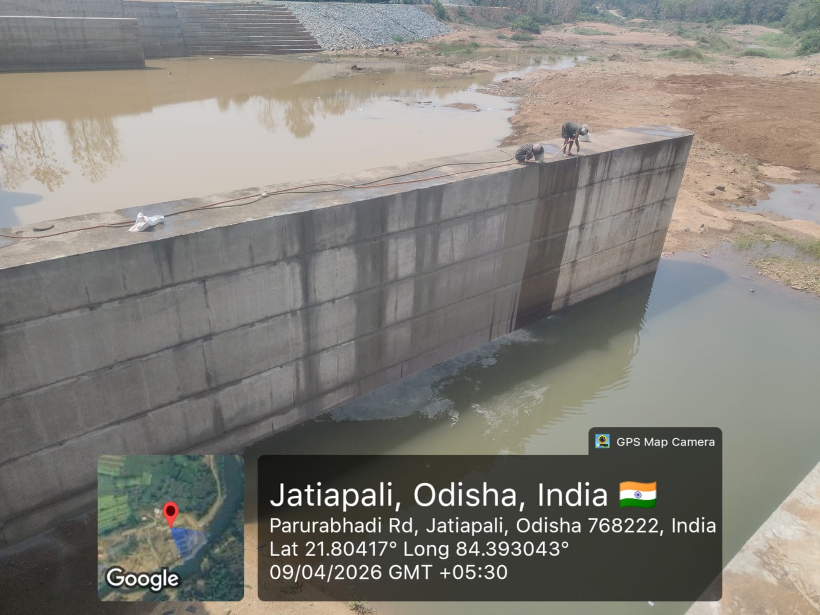 (iii).The area is cleaned properly through air water jet and passed by SE, KID, Bhawanipatna for placing with M35A20 grade on 08.04.2026