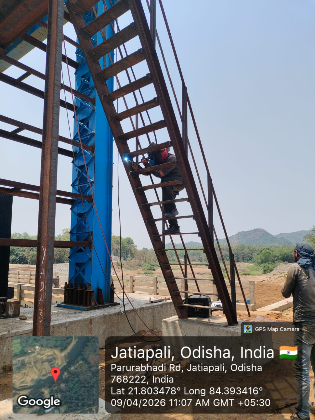Railing fixing work is in progress of Hoist bridge's Platform.