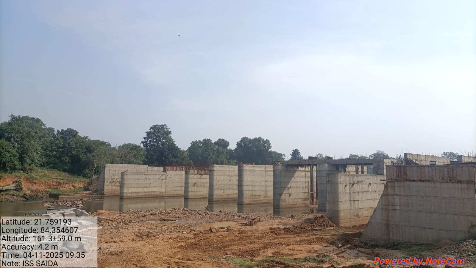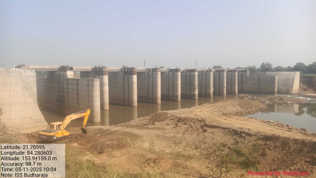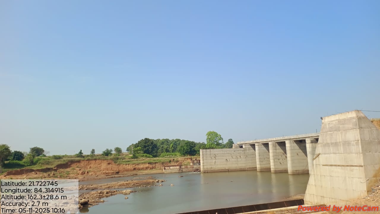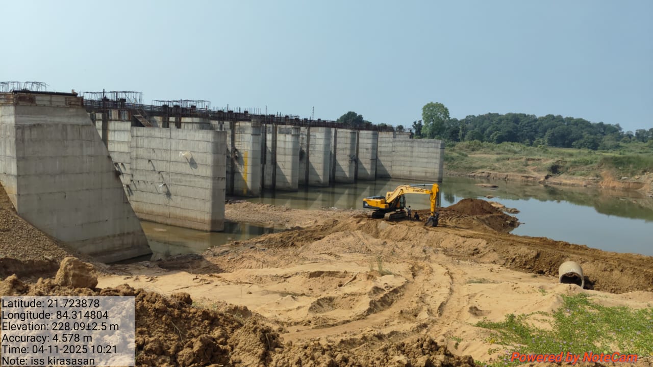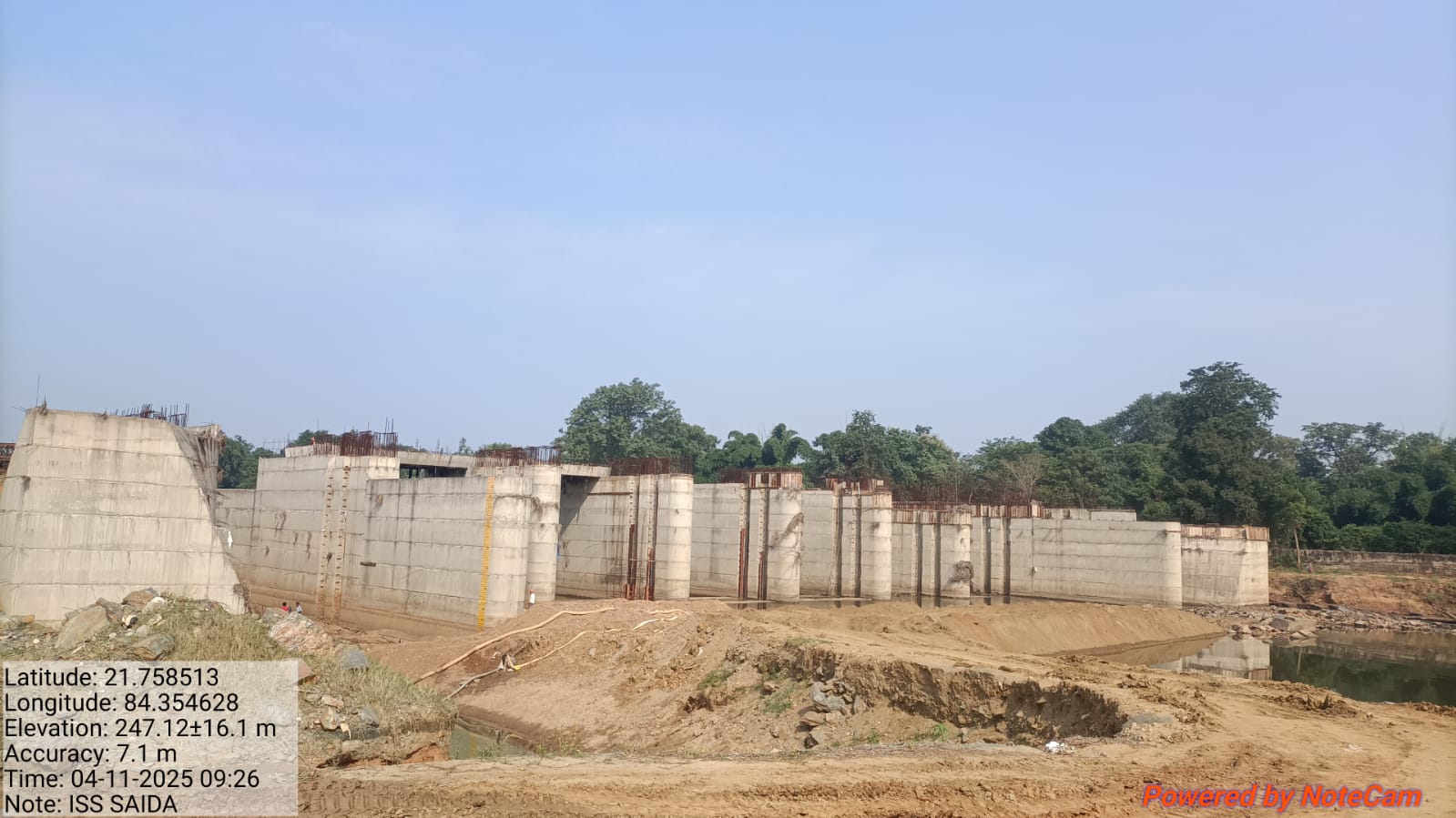 Concrete casting with PCC M15A20 grade at D/S left flared out wall from sec-1-1 to sec-2-2 for 5th lift from RL-236.40m to RL-237.00m is in progress through concrete pump in presence of JE,KID, DTL,Tel basin, Bhawanipatna,QAQC expert,Sr. site engineer,SHEE,HME of PMC, PM n Site Engineers of PMC & EPC agency. Slump achieved 85mm on 05.11.2025