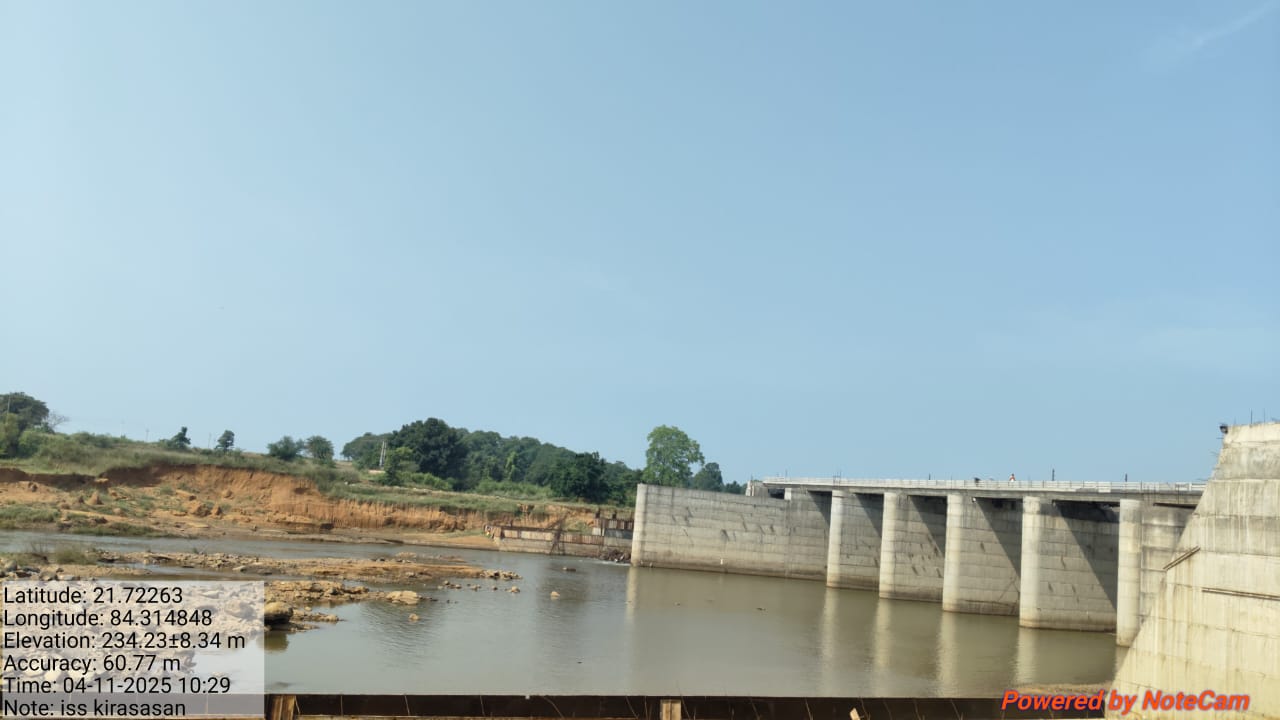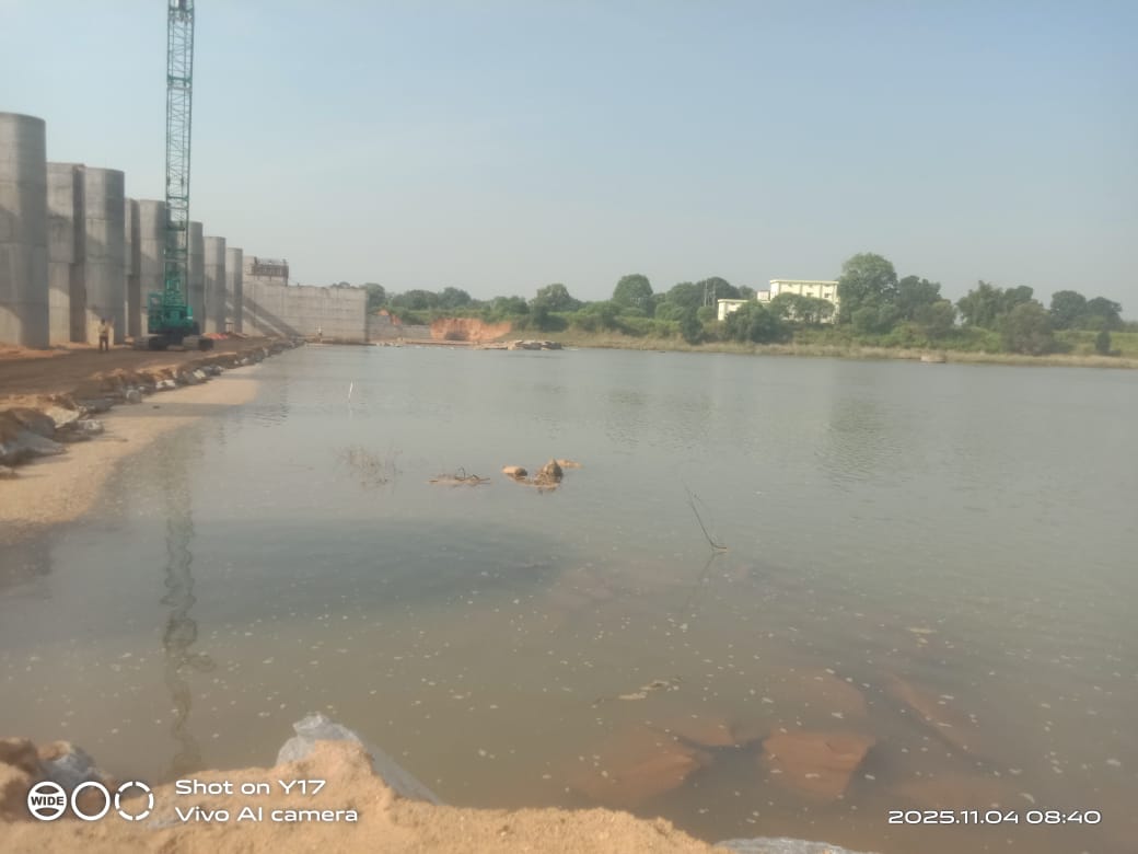 View showing flow of river from D/S of river . Flow direction is straight & flow can seen at RL-215.000 mtr against design crest level RL- 215.000 mtr .i.e 0.0 mtr flood lift .