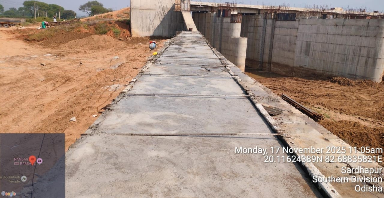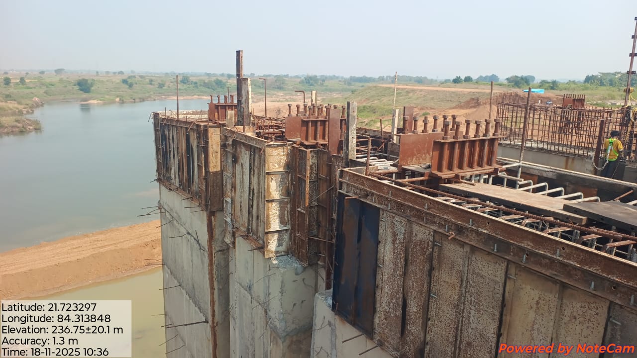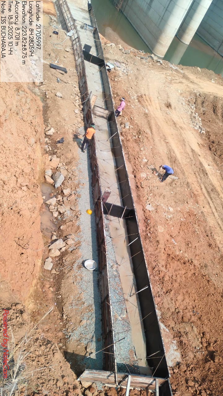Laying of CC M25A20 in left D/S flank Wall and Return wall (Sec A-A to B-B) form RL 16.65m to 17.95m in progress.