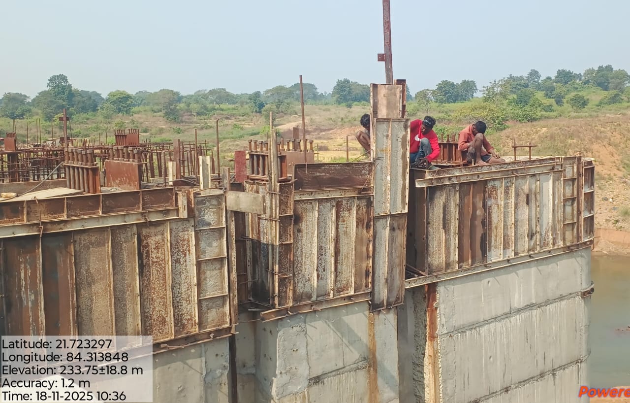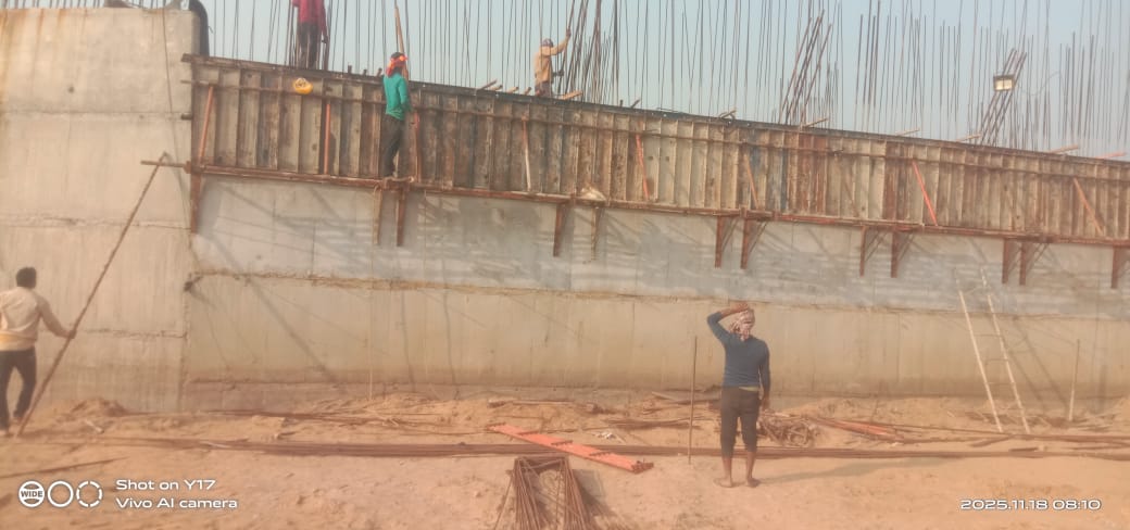 RHS d/s divide wall final lift shuttering work under progress.