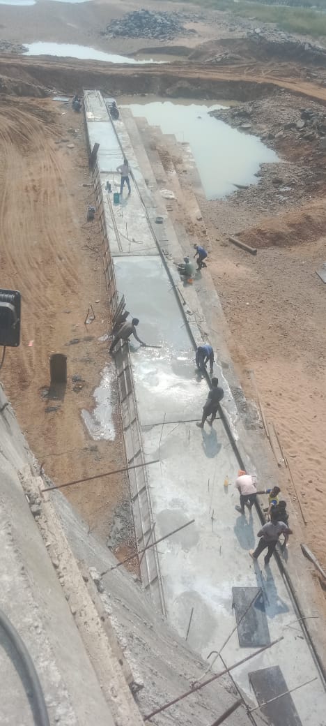 PCC concreting underway in D/S flaredout wall R/S at Guntat site.