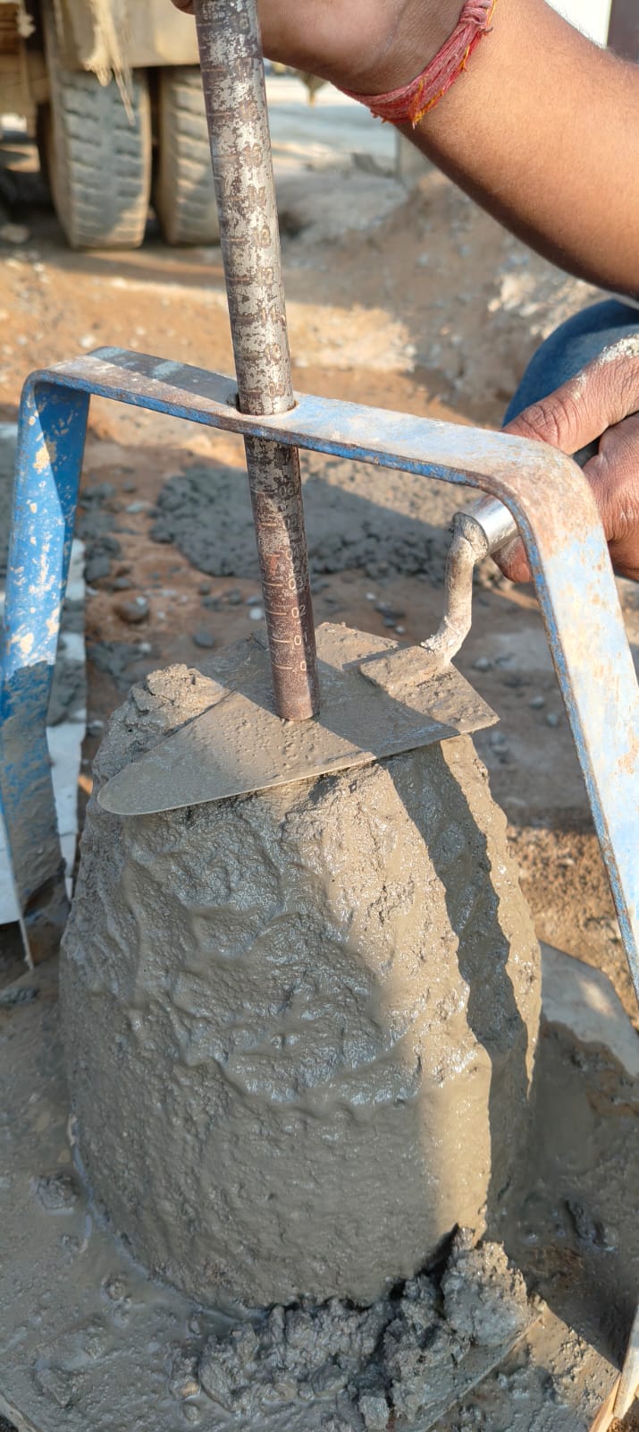 Slump testing M25A20 (Value 85 mm) of Pier No-29, 10th lift at Block No-4 done in presence of Client & PSS Team.