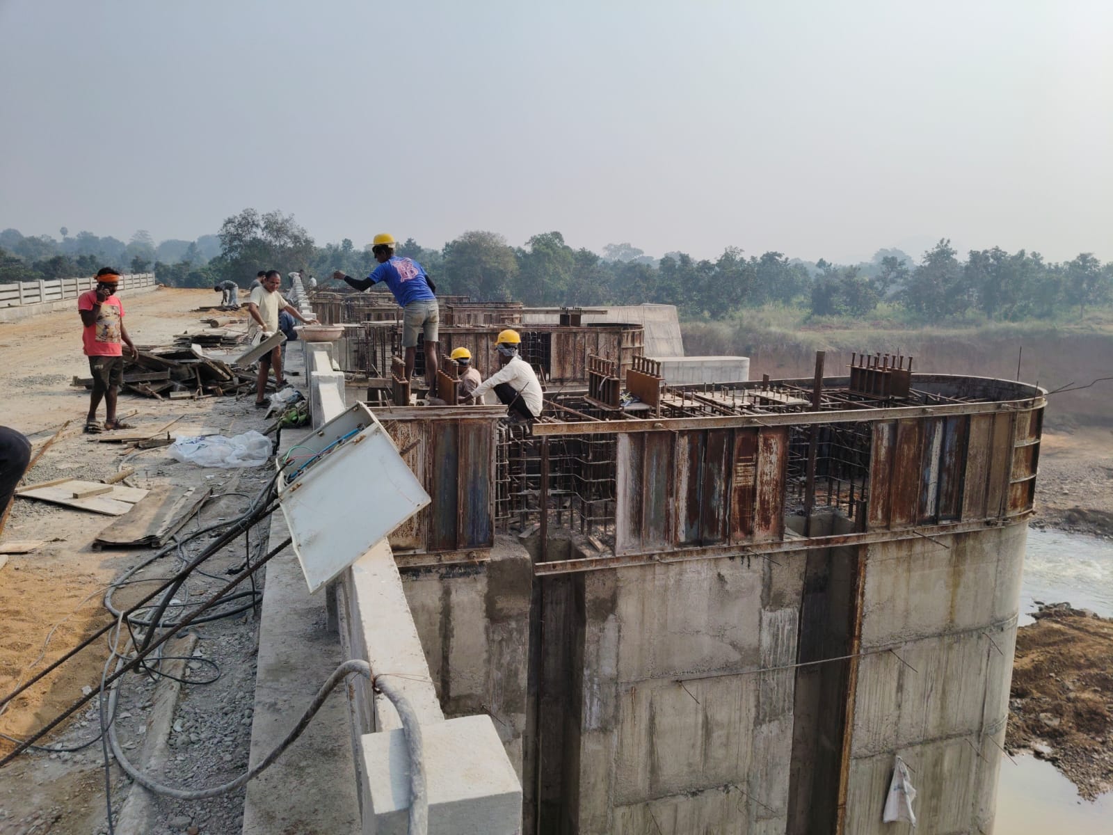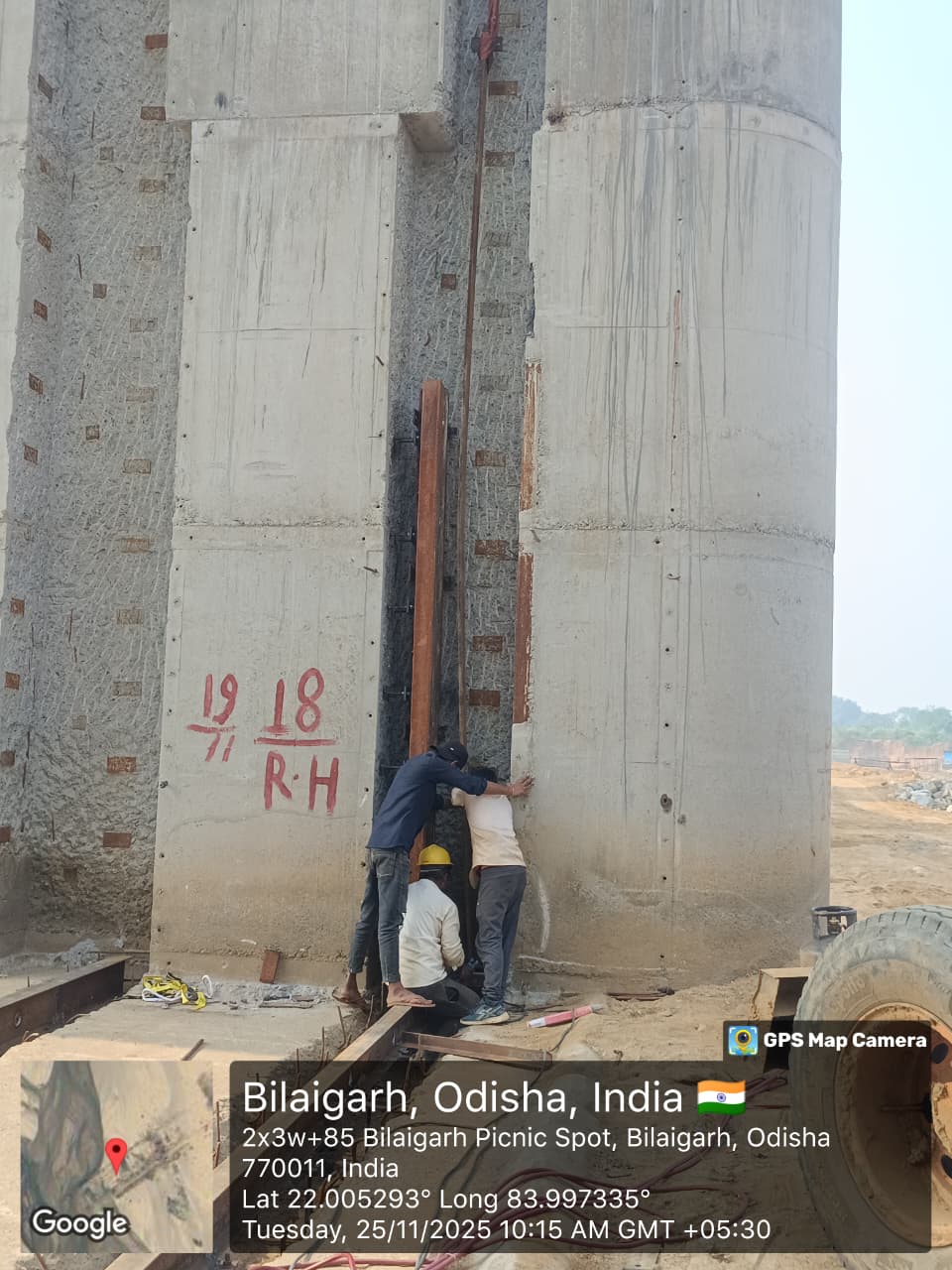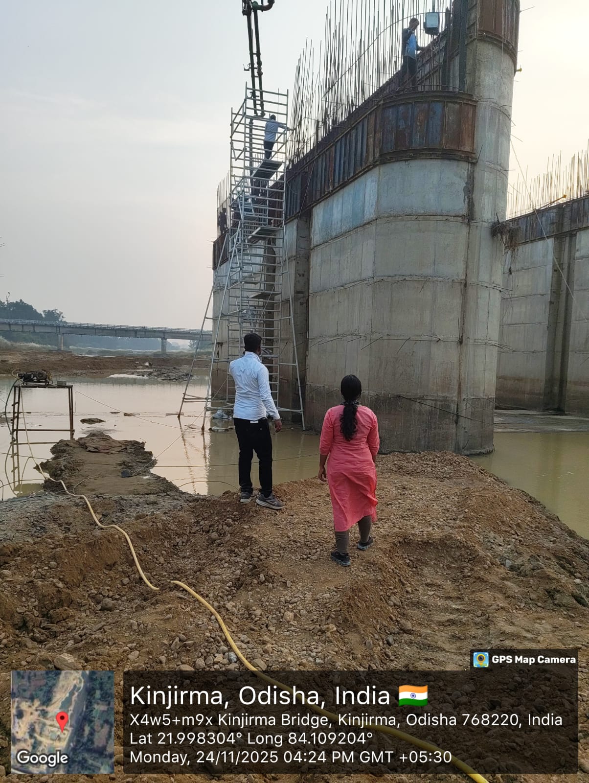 Irrigation expert, PSS with Manager OCCL checking the reinforcement, shuttering work in pier no.8 before casting.