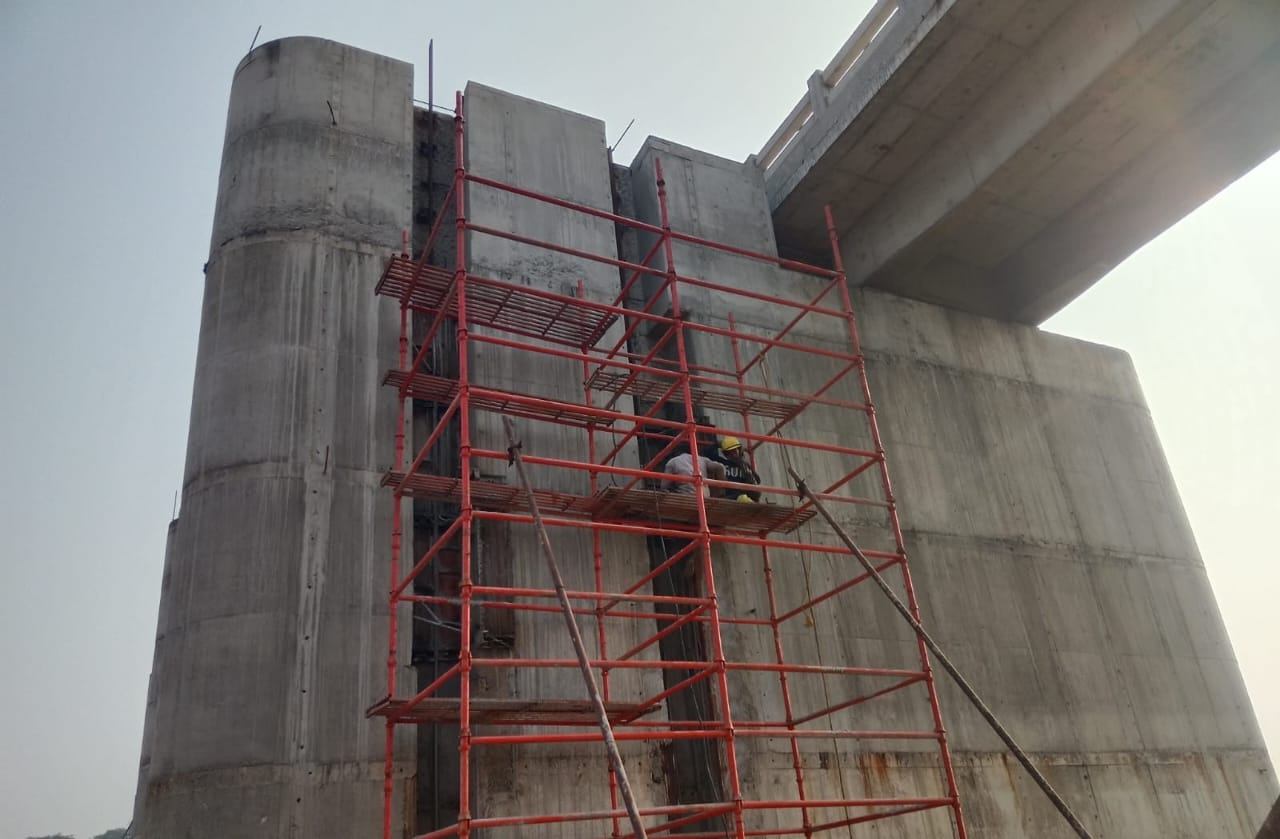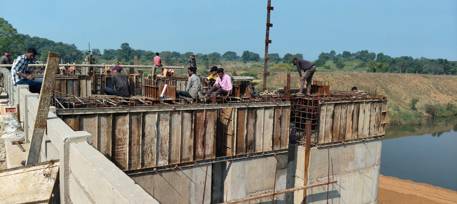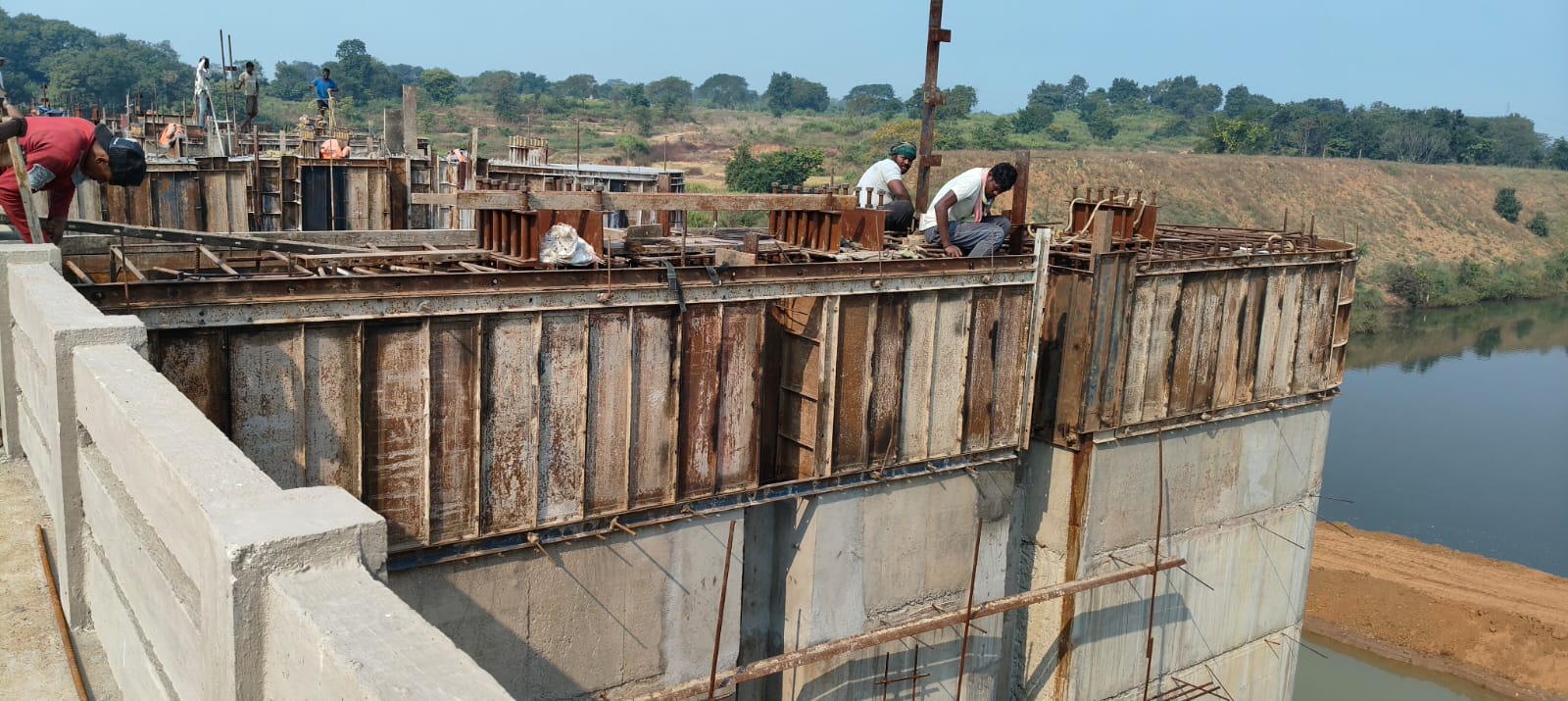 Irrigation expert, PSS with Manager OCCL checking the reinforcement, shuttering work in pier no.8 before casting.