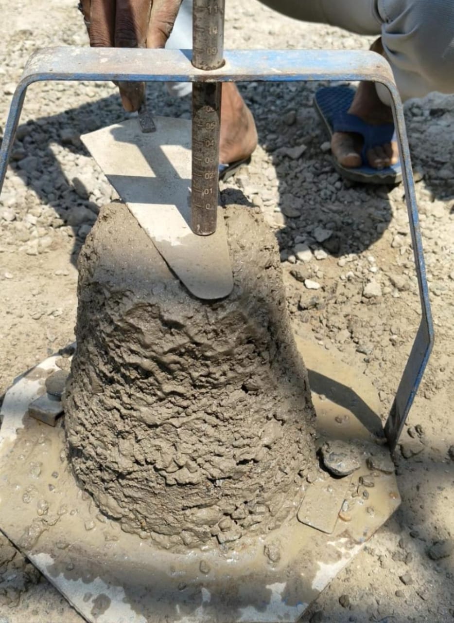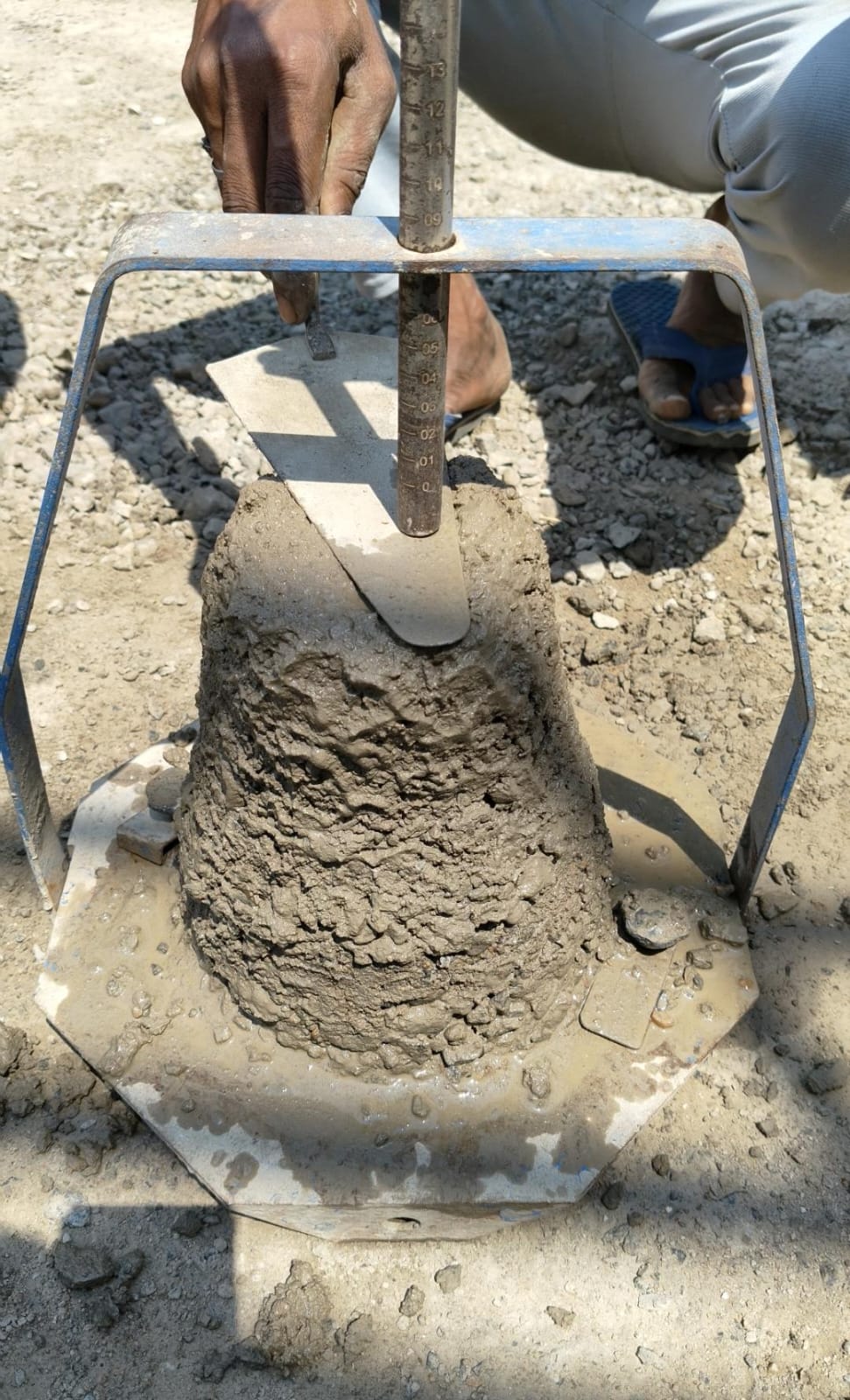 Slump testing M25A20 (Value 85 mm) of Pier No-17, 7th lift at Block No-3 done in presence of Client & PSS Team.