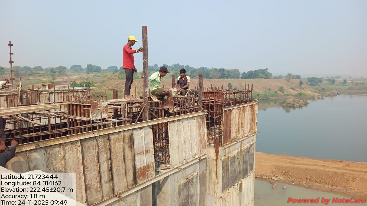 Barrage bay-2 span no- 19 p-19 & p-18 for stoplog & service gate groove 2nd stage 2th lift M30A20 casting work in progress