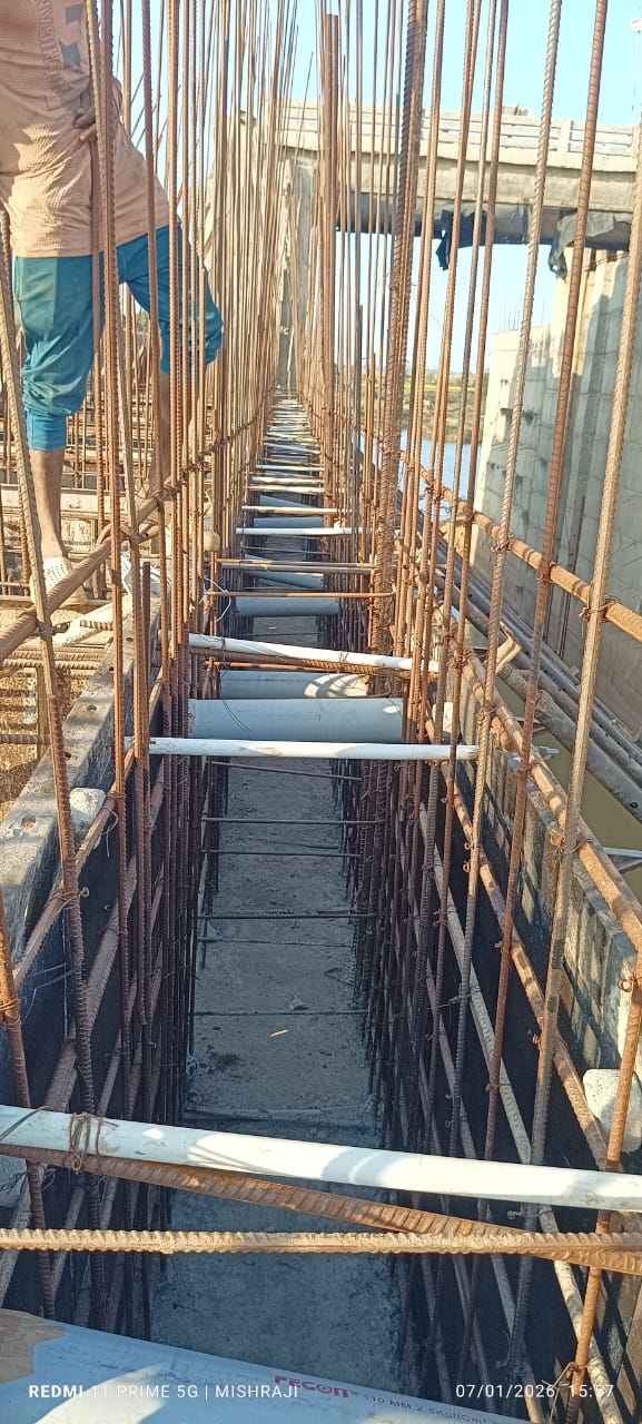 Reinforcement work at right side abutment A2 wall for 5th lift RCC is under progress on 07.01.2026