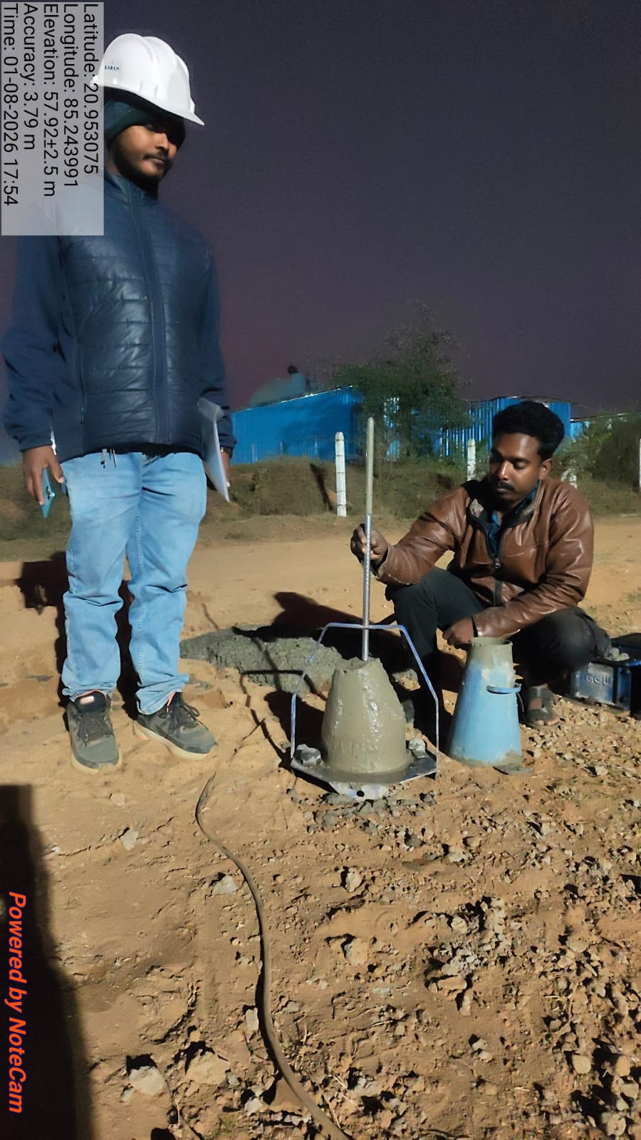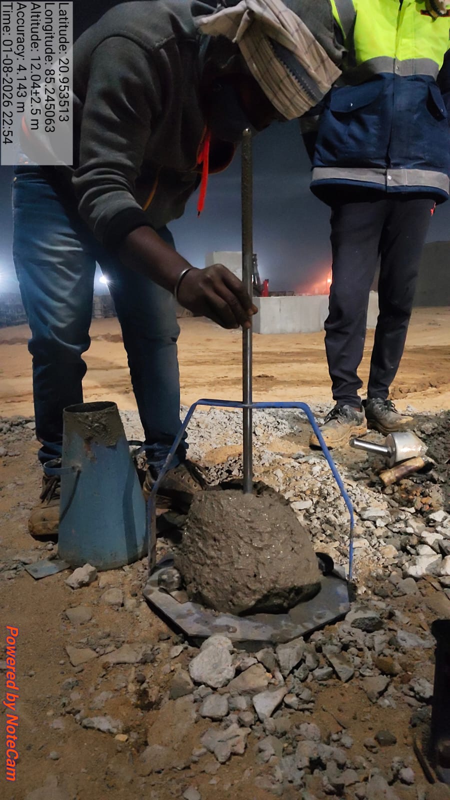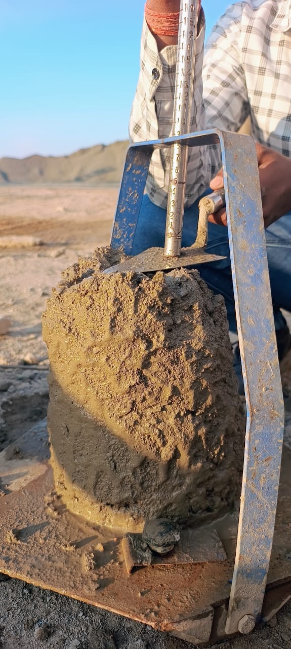 Slump testing M25A20 (Value 160 mm) of Barrage bay flank wall Cross Cut-off Panel No-10A done in presence of Client & PSS Team.