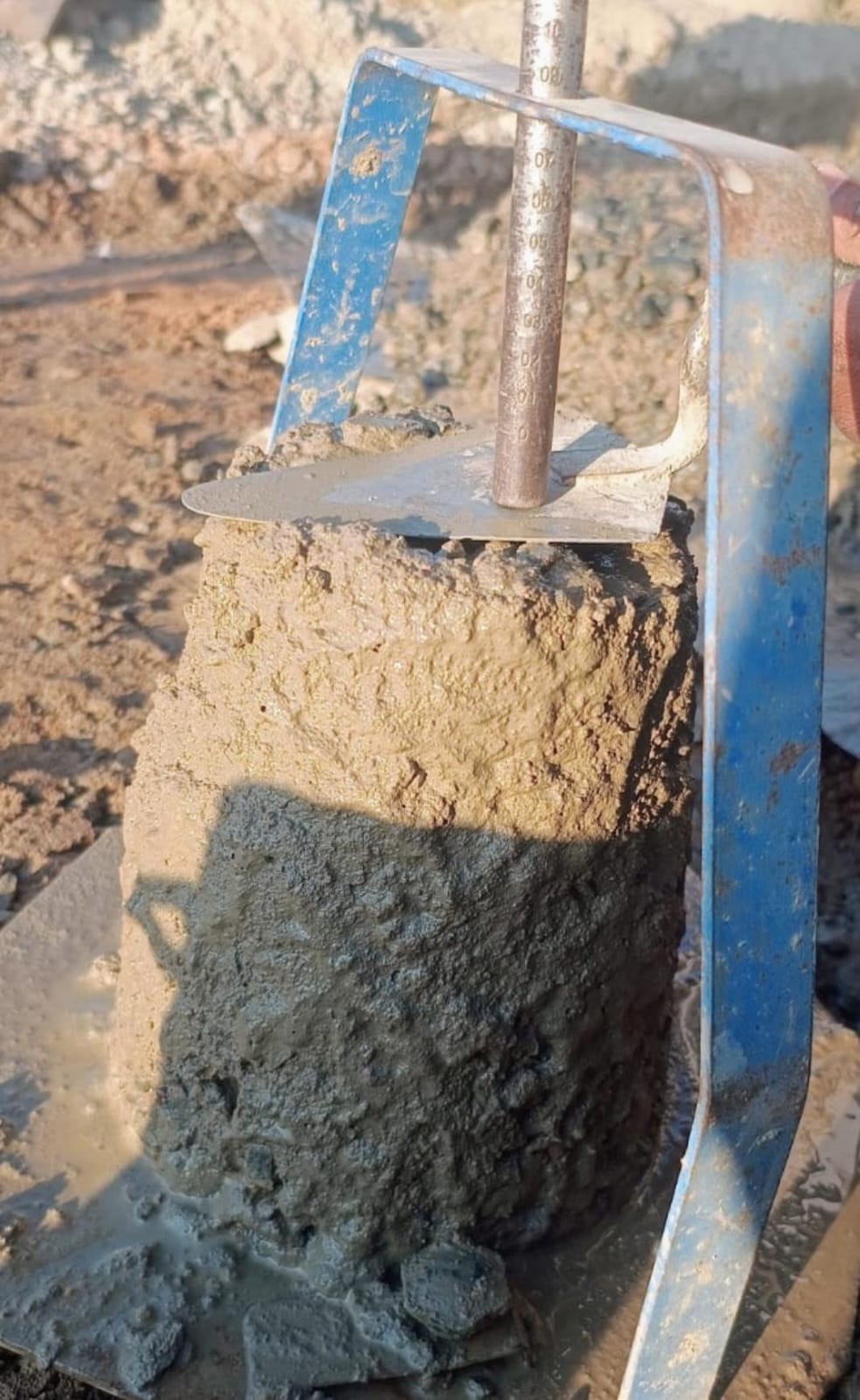 Slump testing M15A40 (Value 45 mm) of Abutment (A2), RHS Core wall, 3rd lift at Block No-5 done in presence of Client & PSS Team.