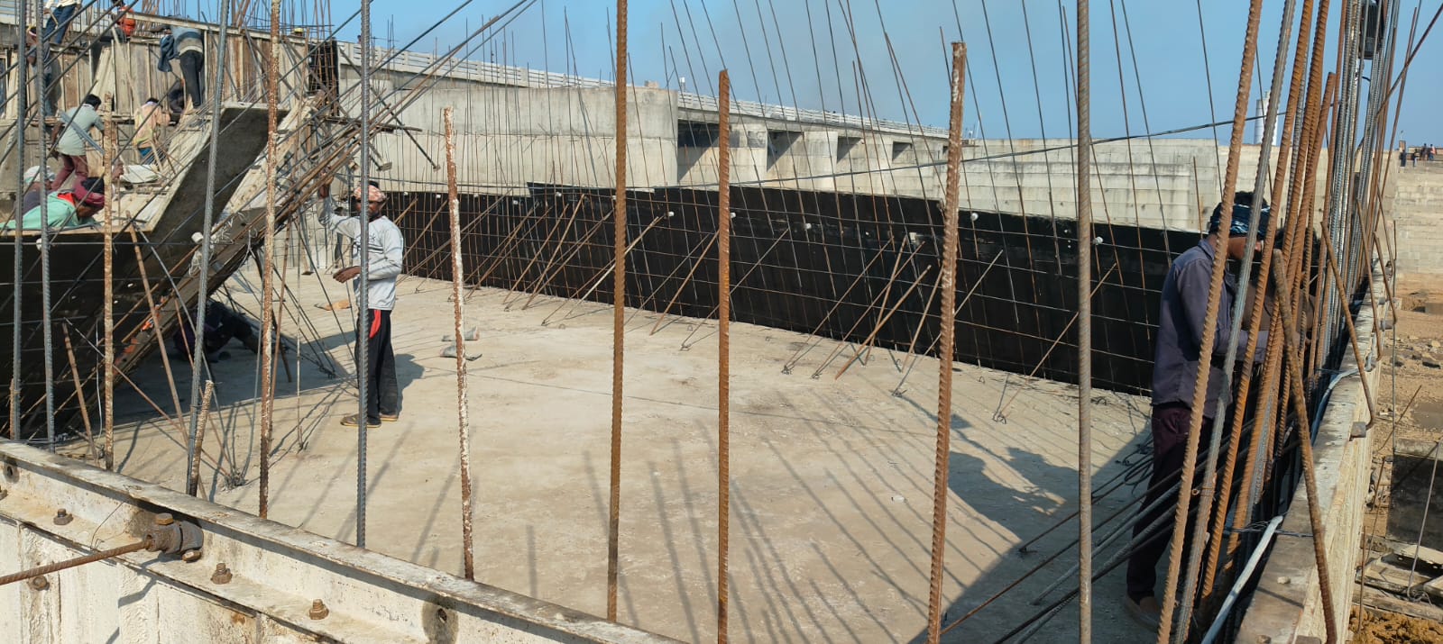 RHS D/S FLANK WALL 8TH LIFT SHUTTERING WORK IS UNDER PROGRESS