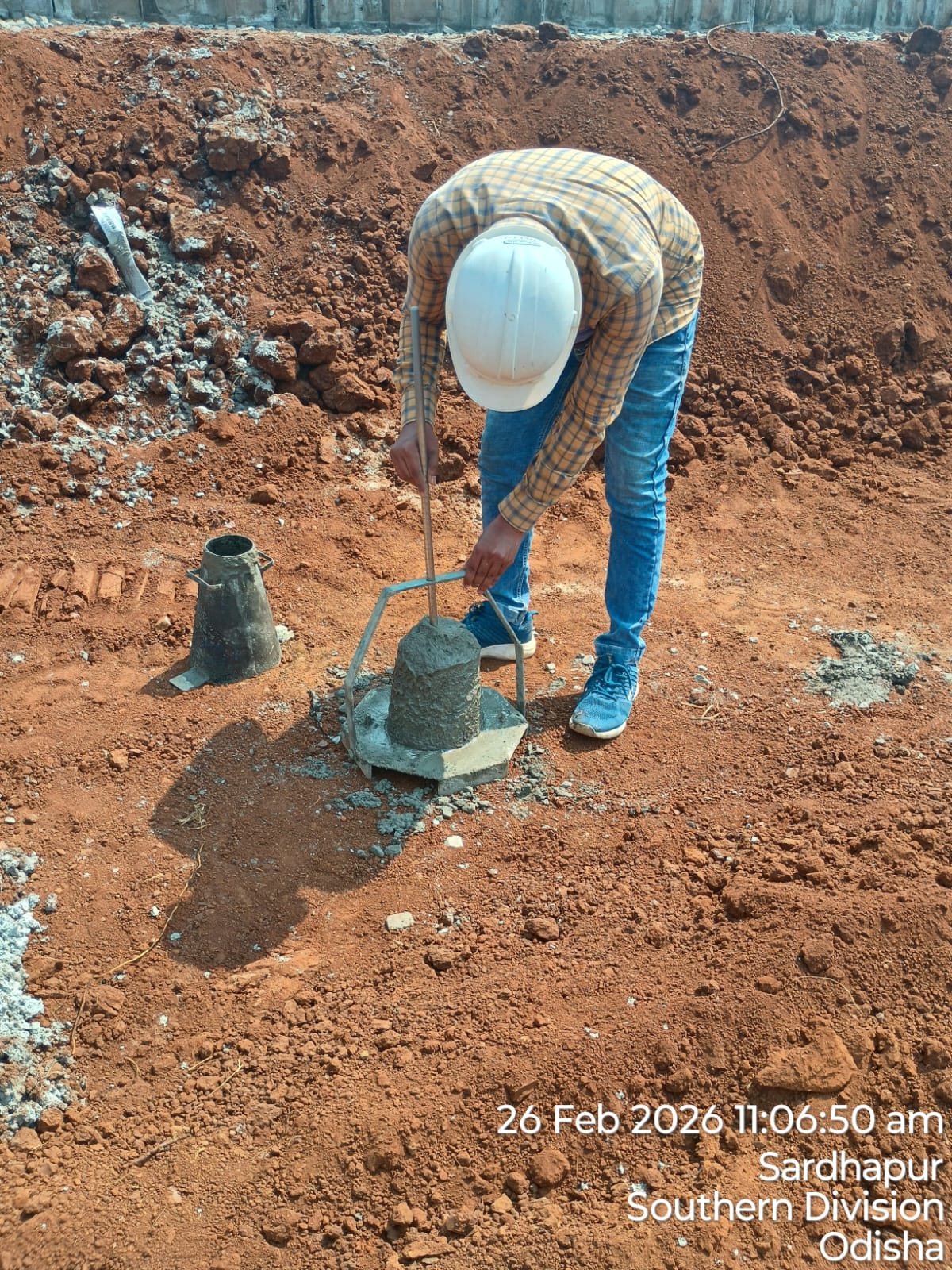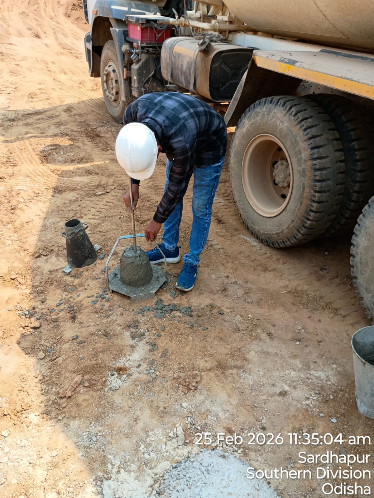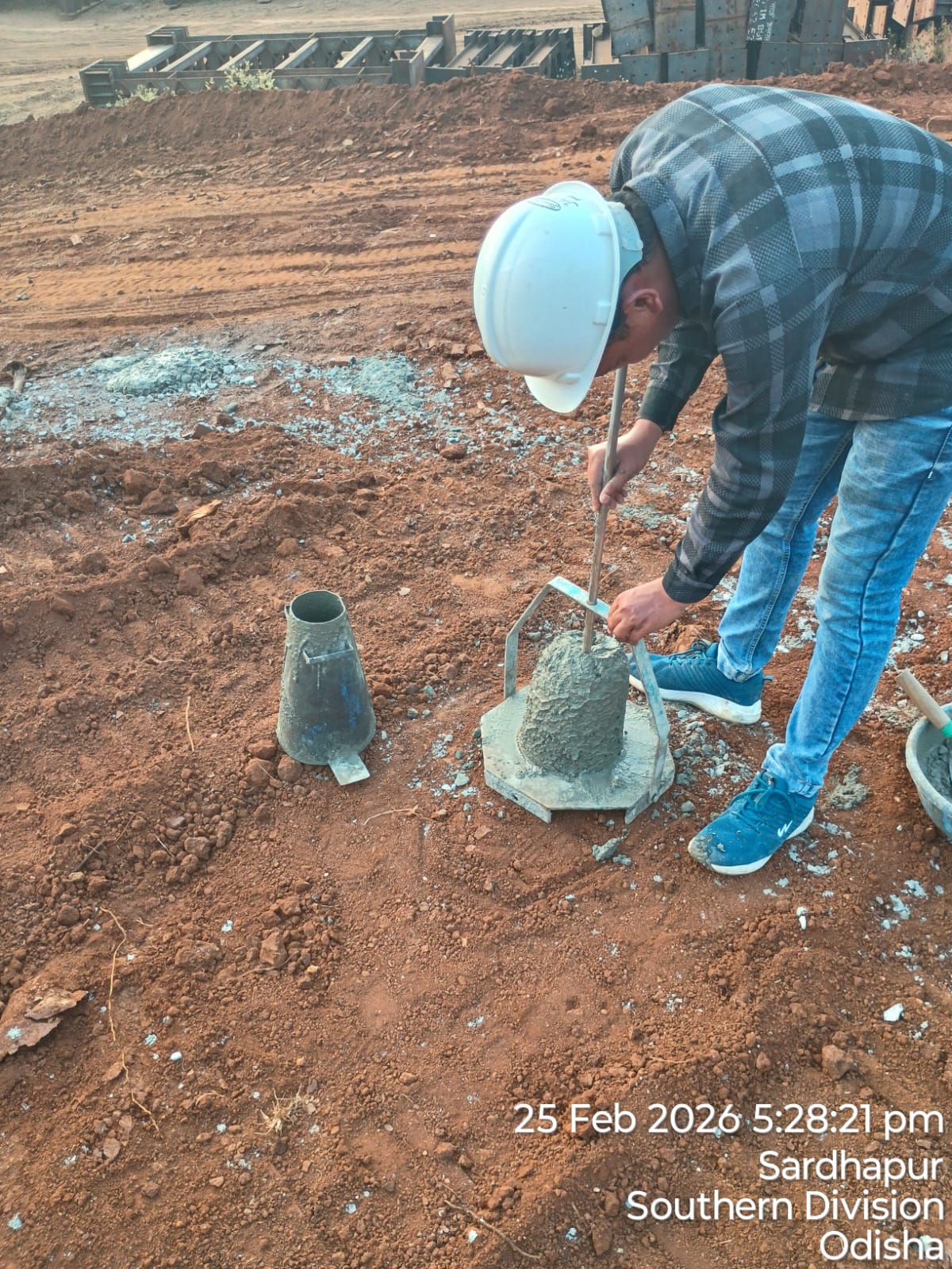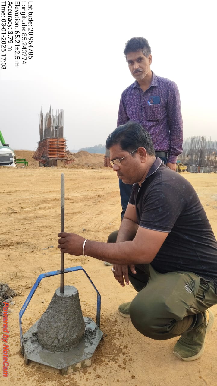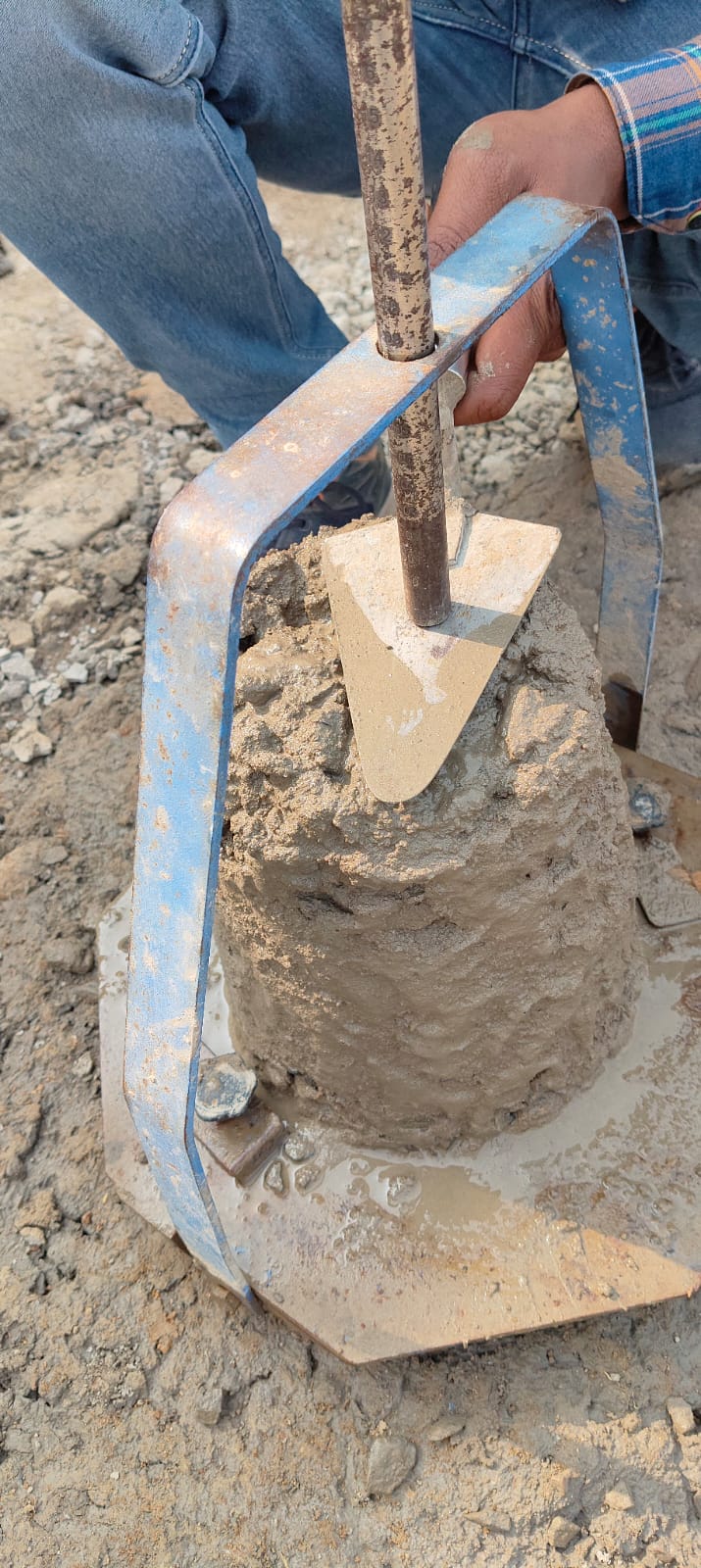 Slump cone test conducted at site.