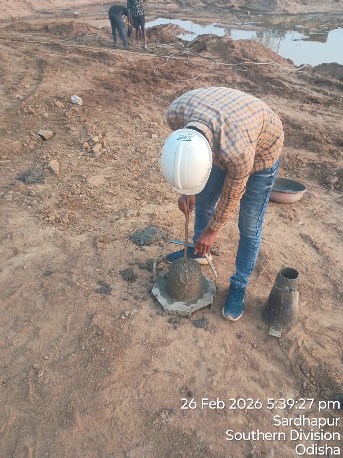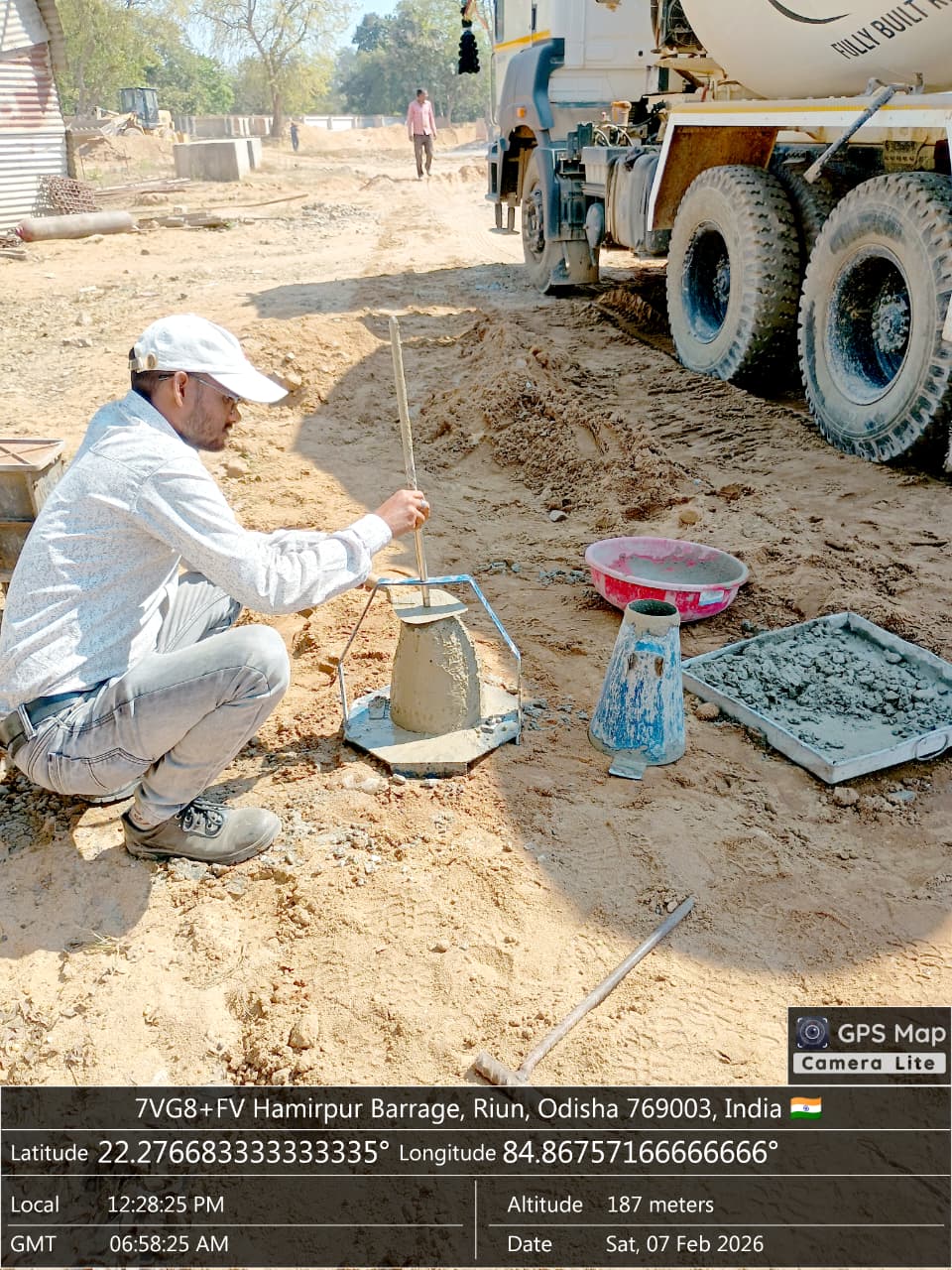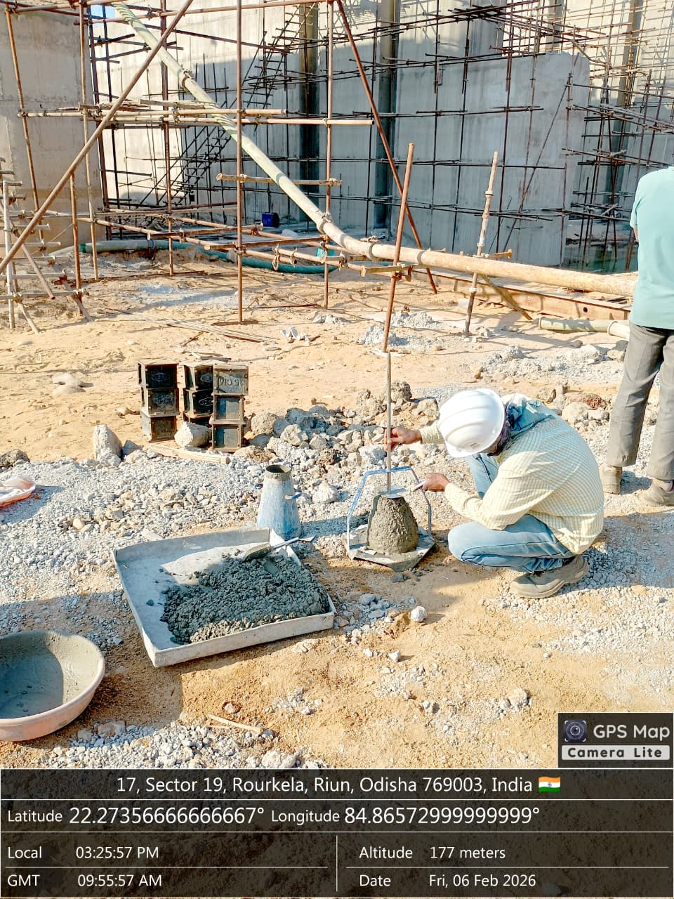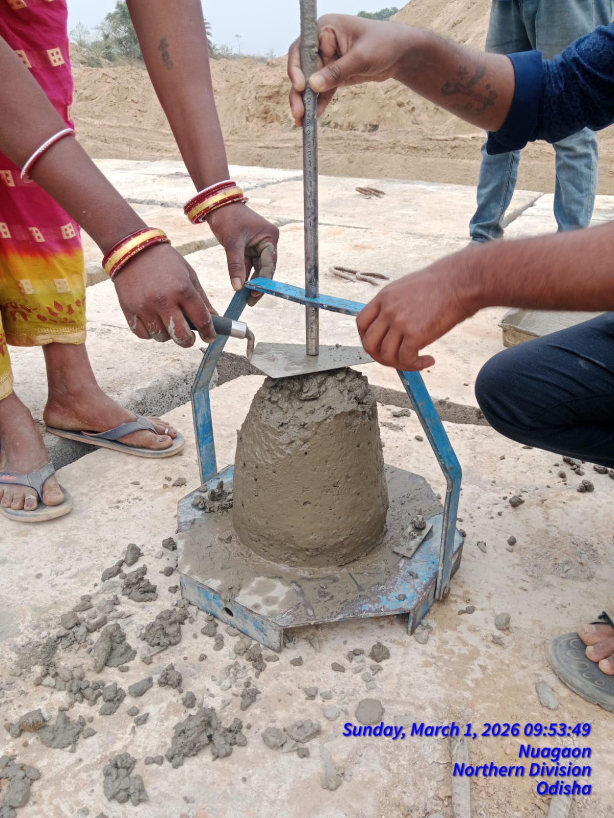 Slump cone test conducted at site.