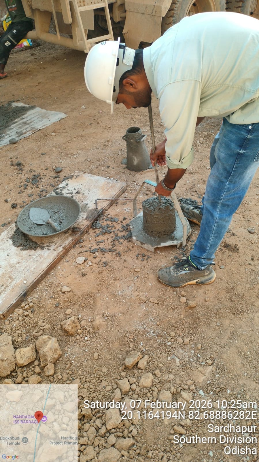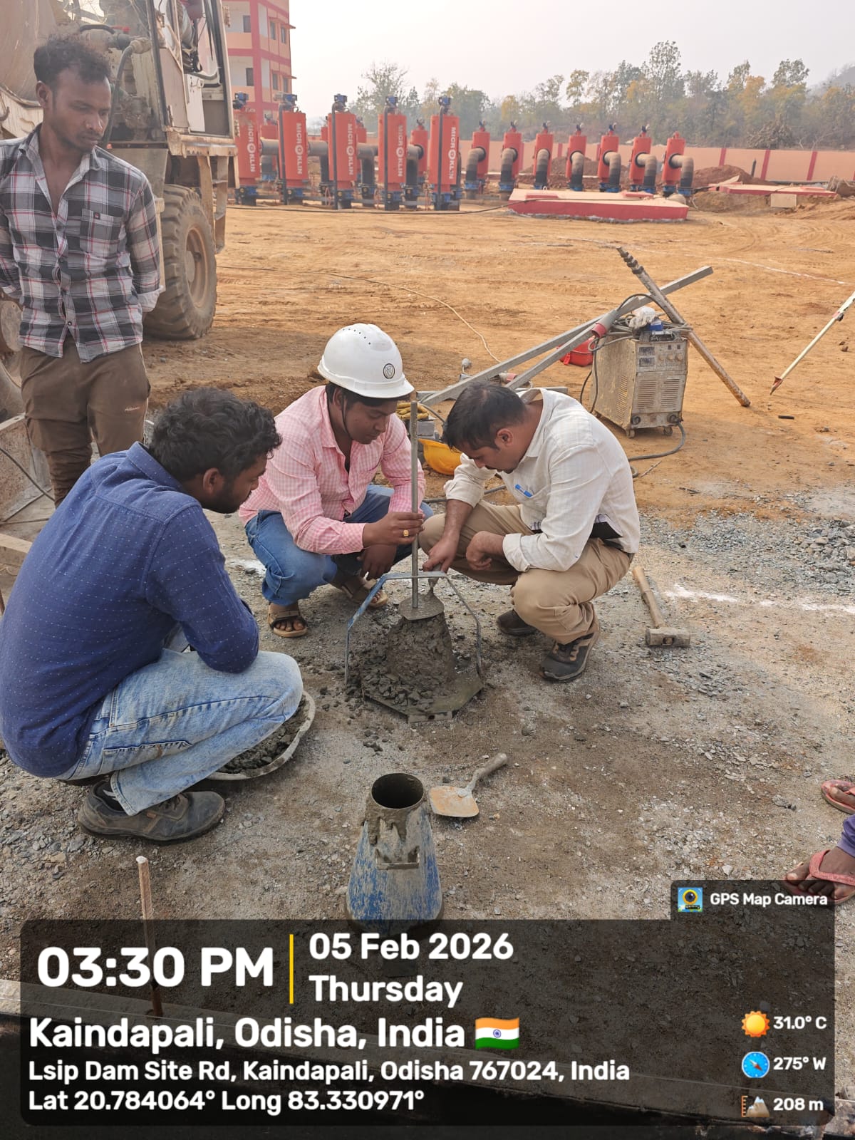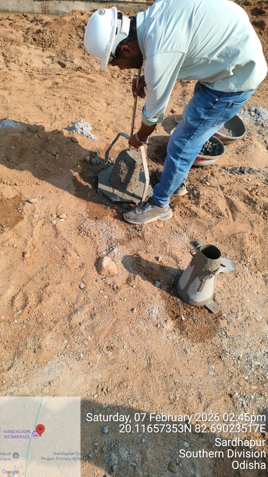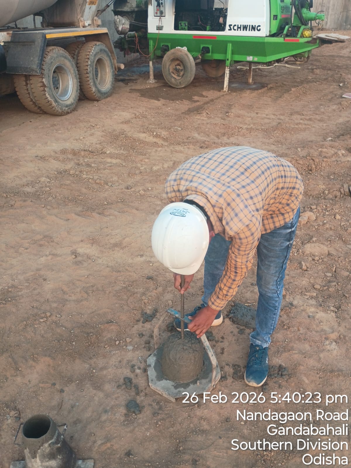 Slump cone test conducted at site.