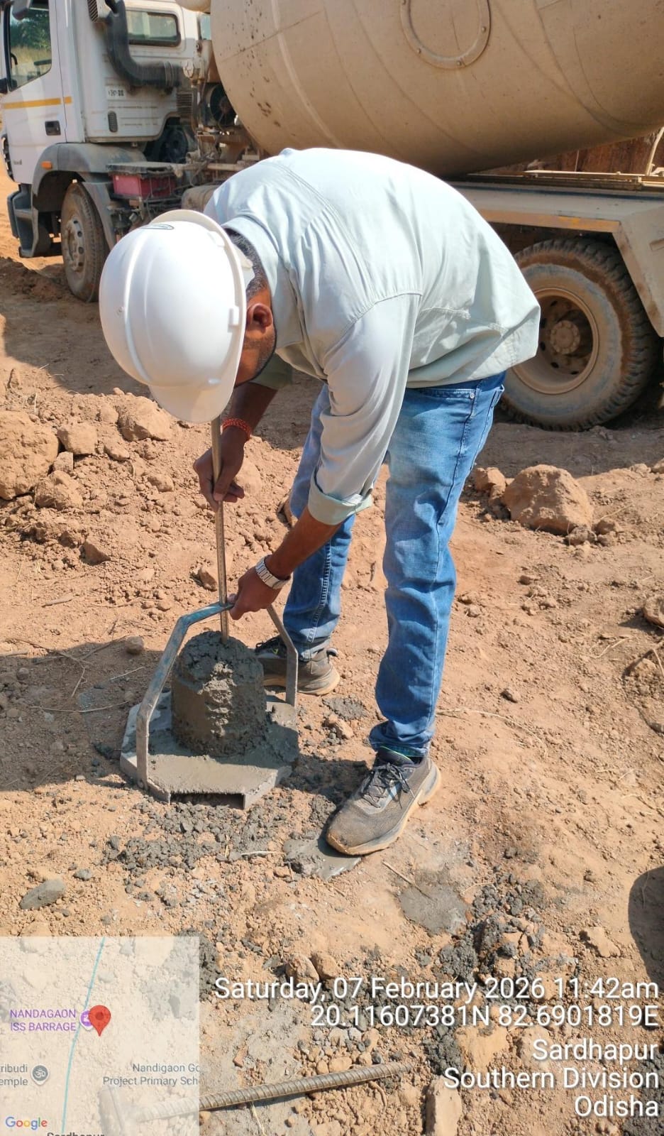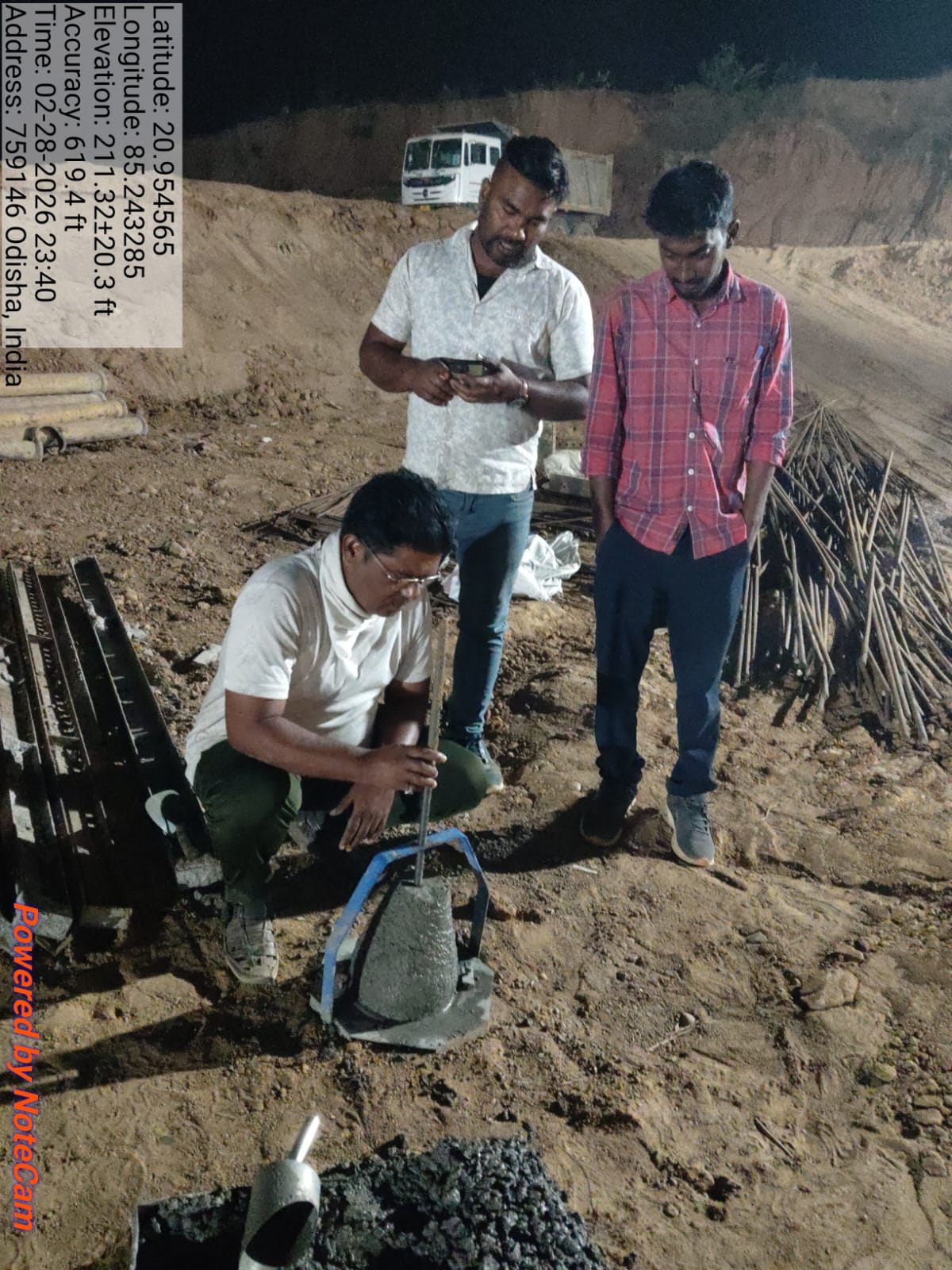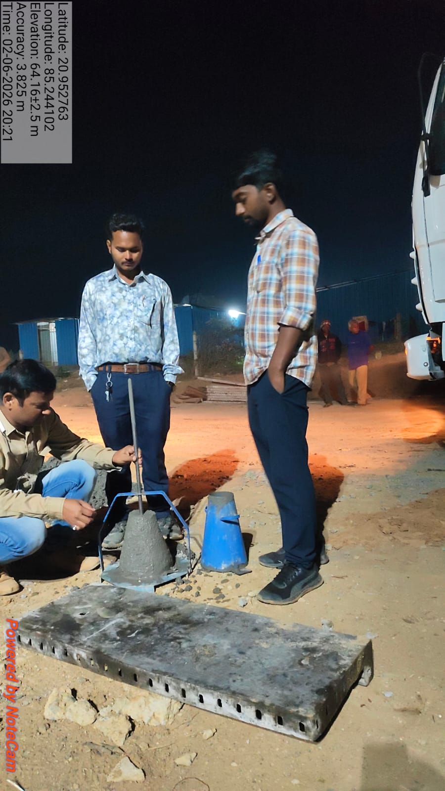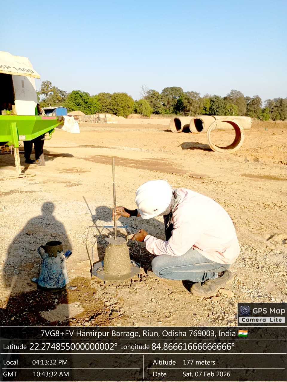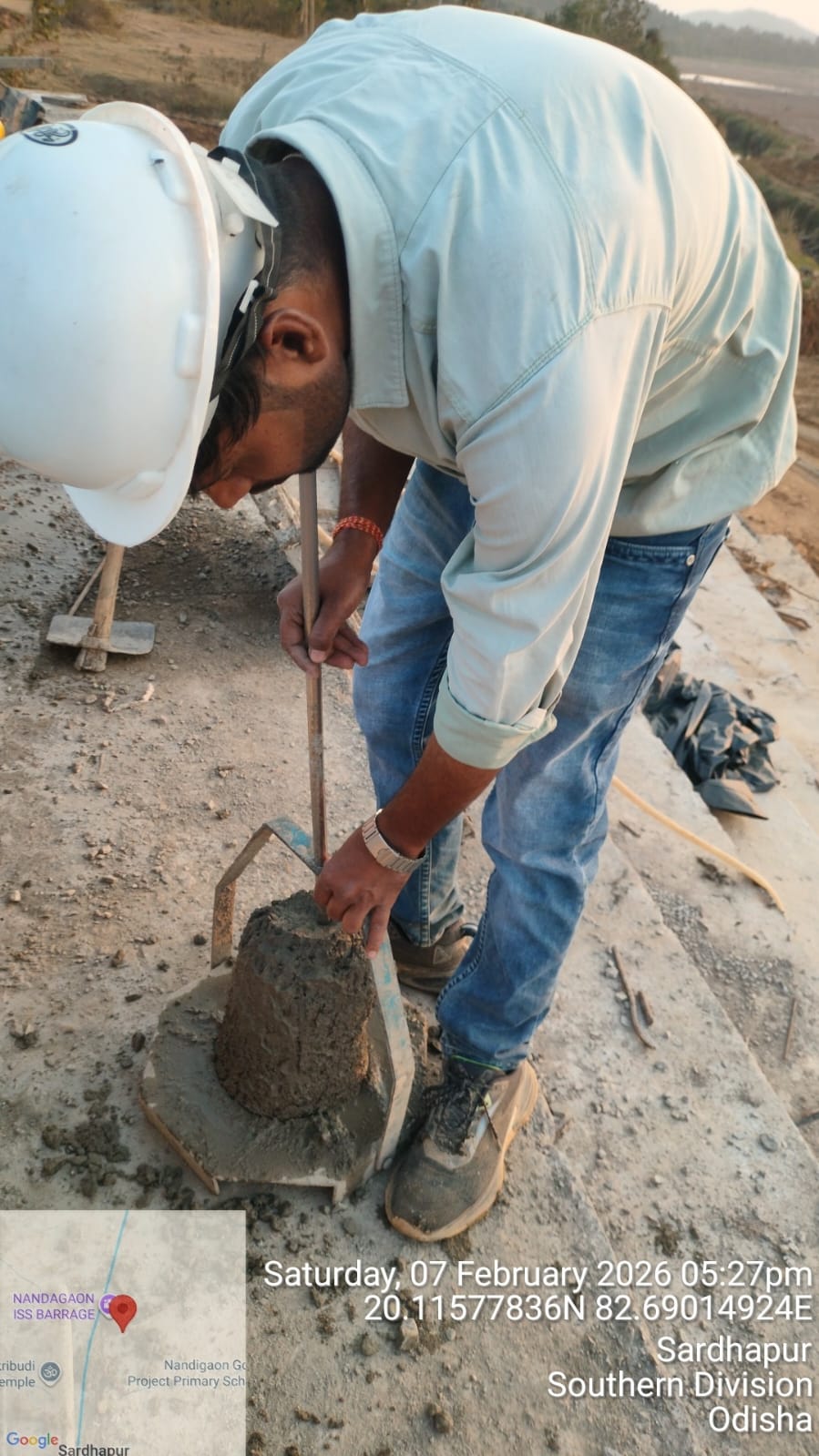 Slump cone test conducted at site.