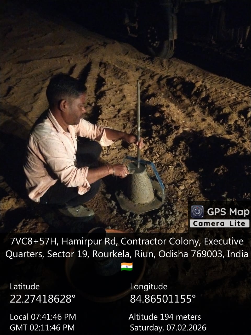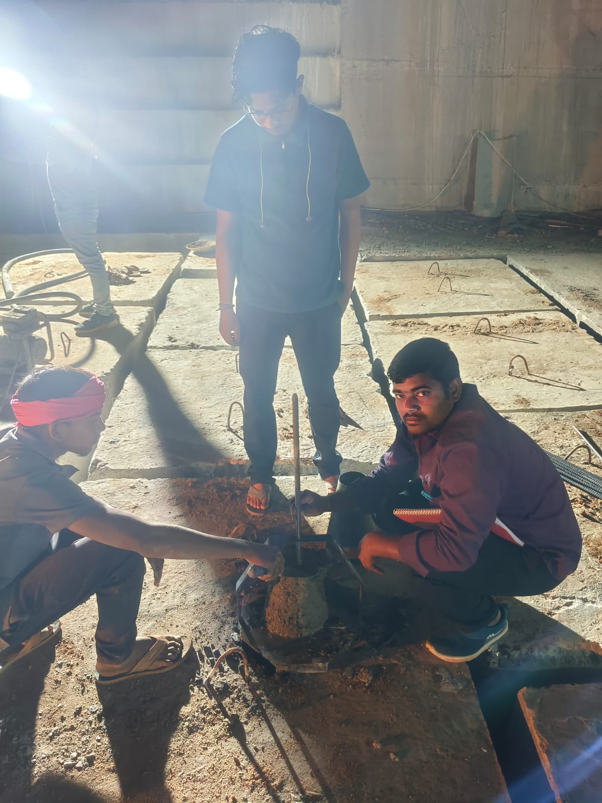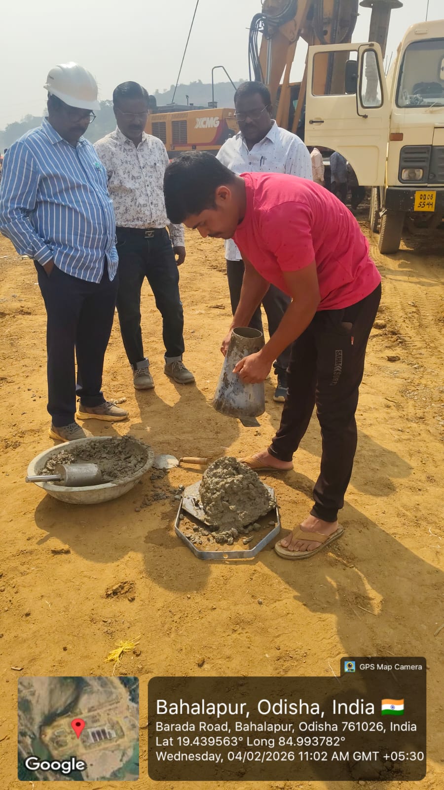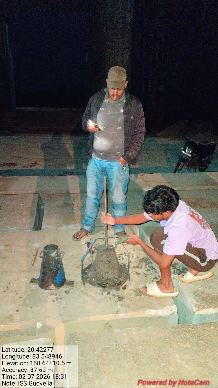 Slump cone test conducted at site.