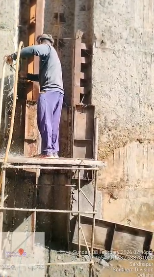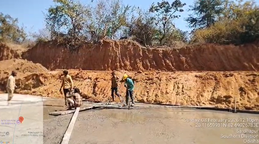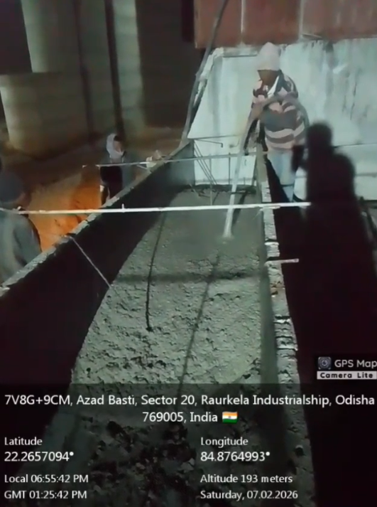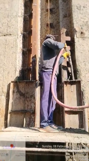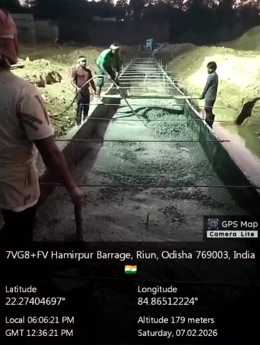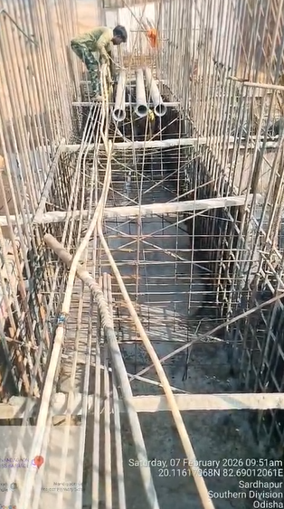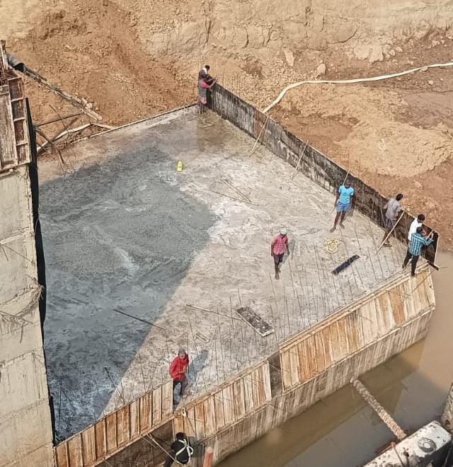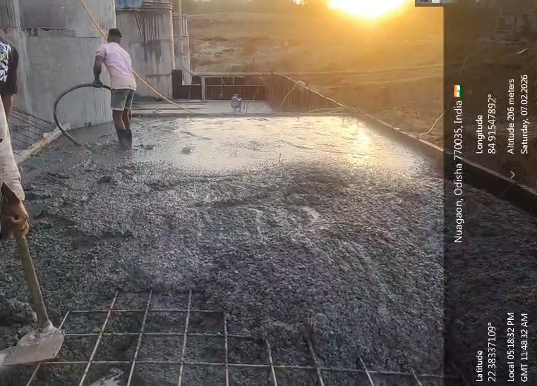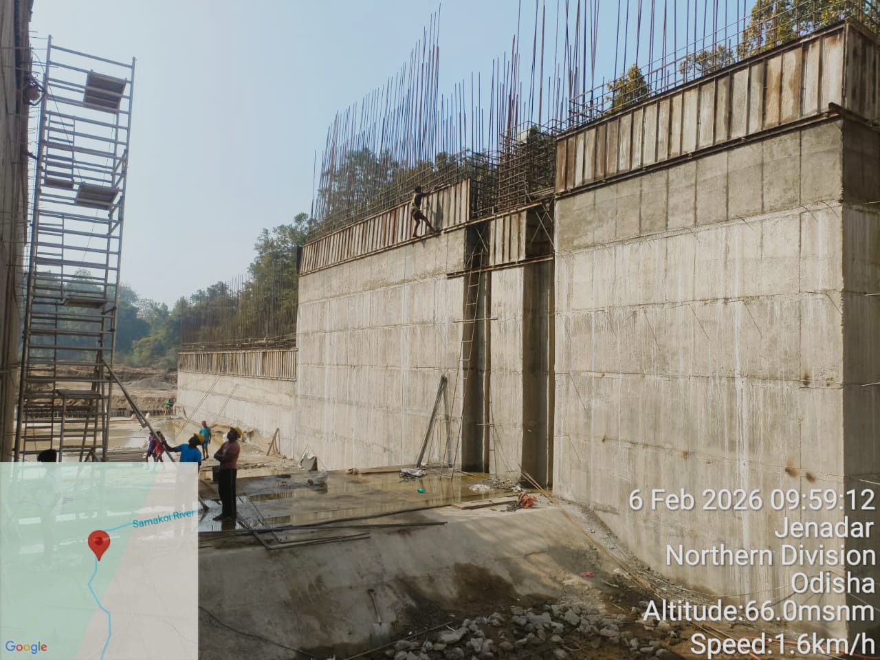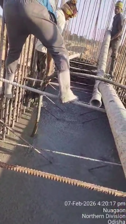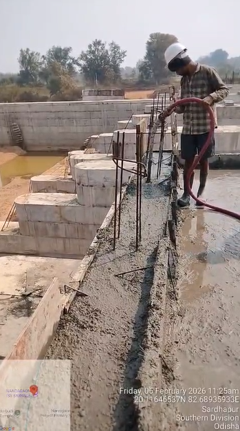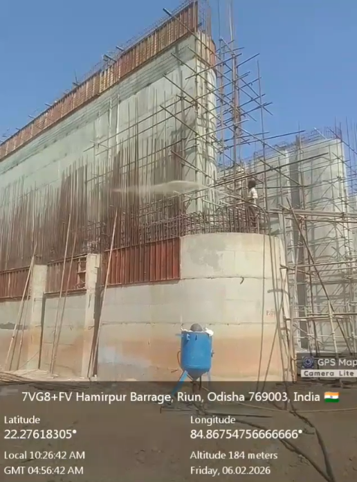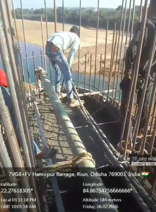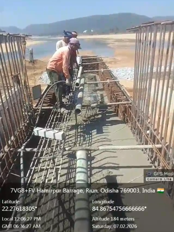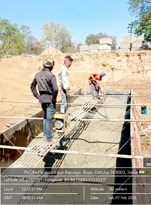 (iv) Area is cleaned using air water jet and passed by SE, KID, Bhawanipatna and ready to place concrete with RCC M35A20 grade upto RL-247.30m on 06.02.2026