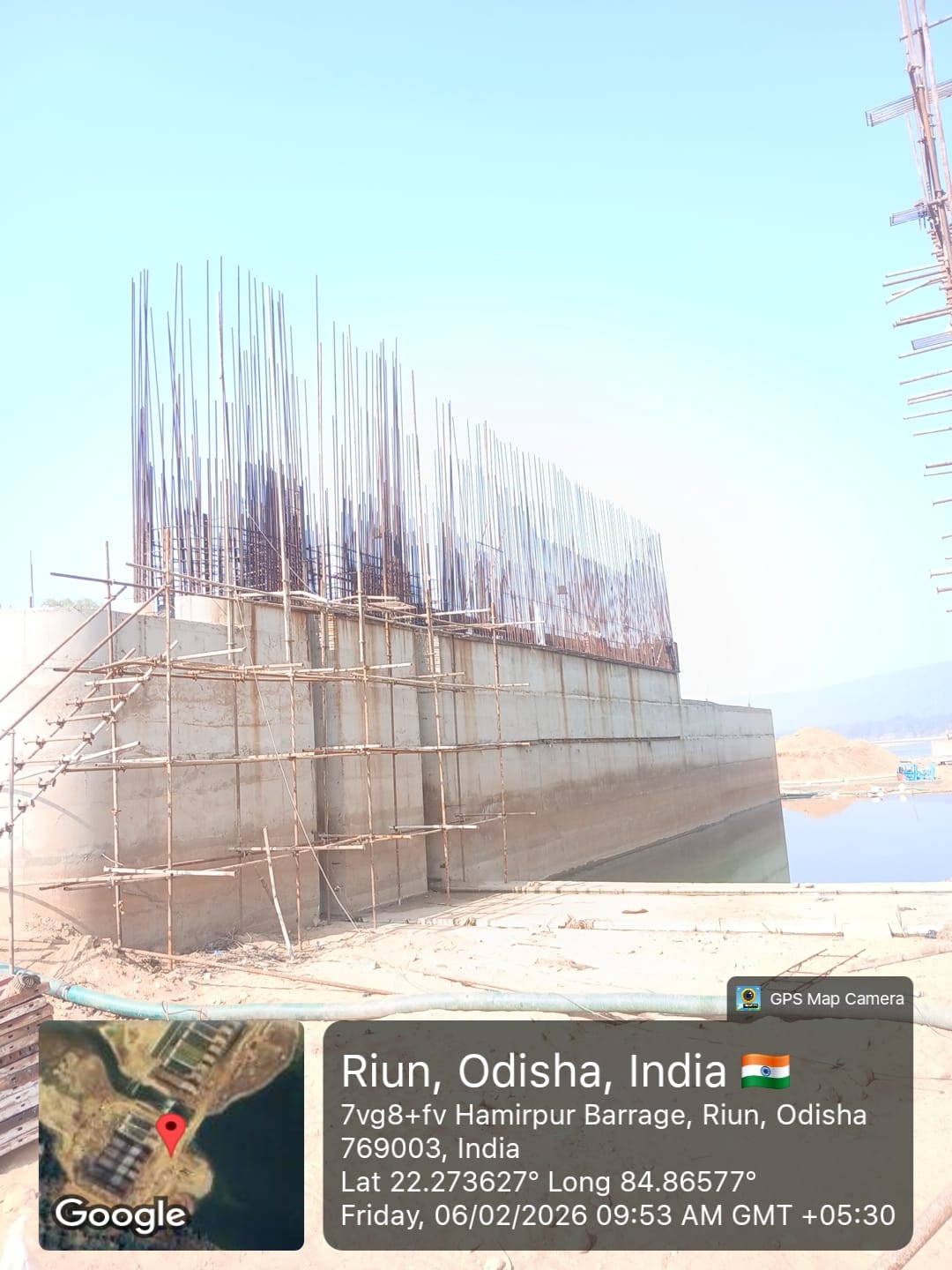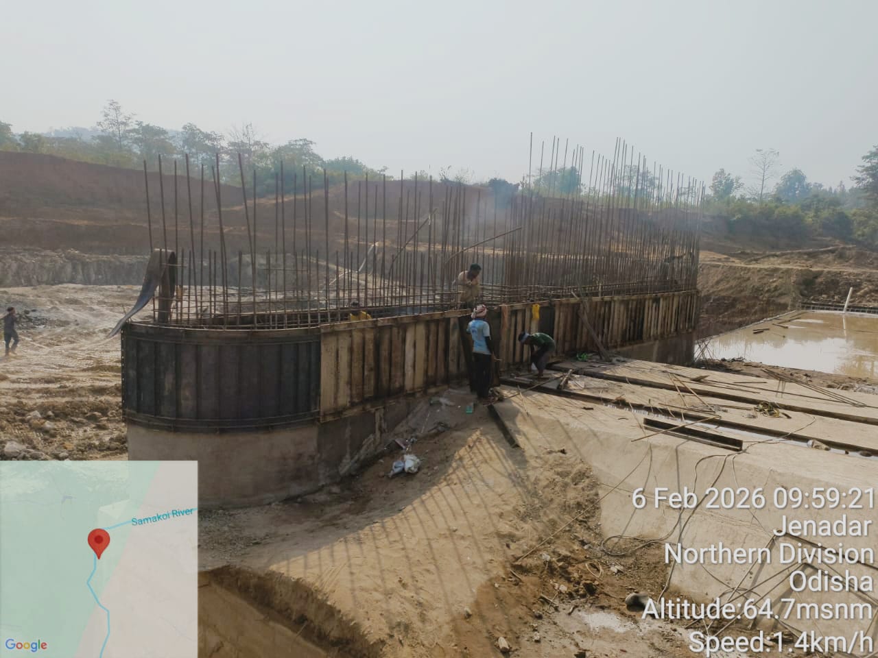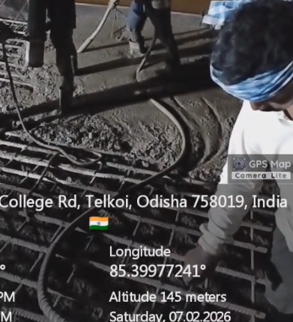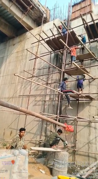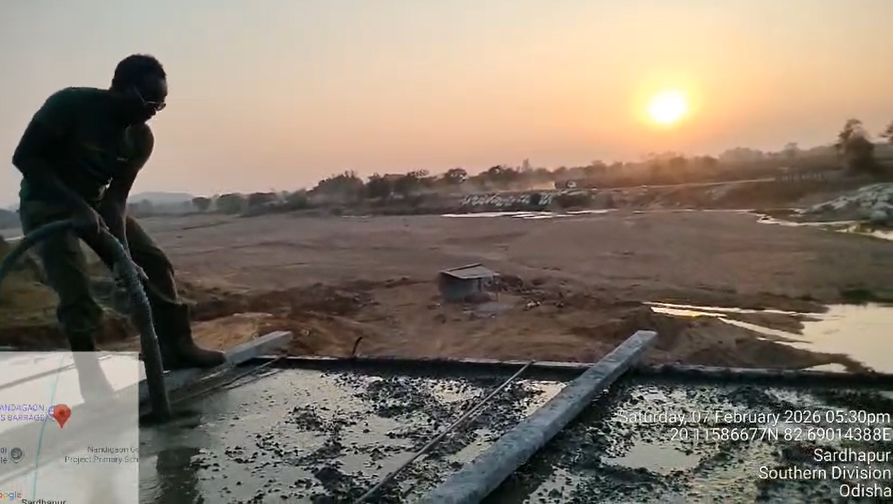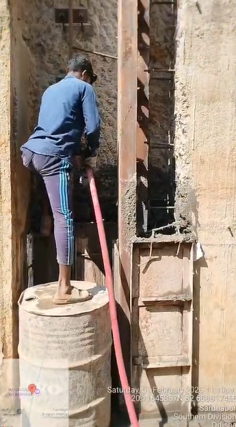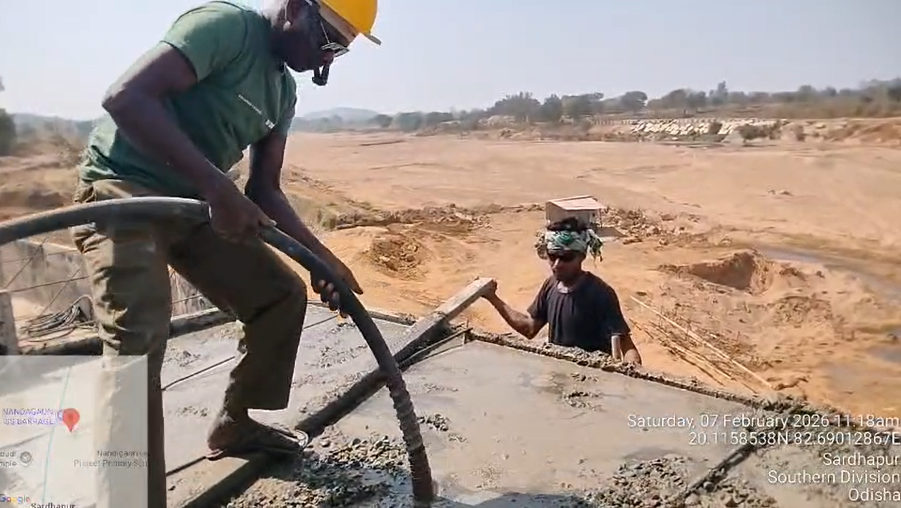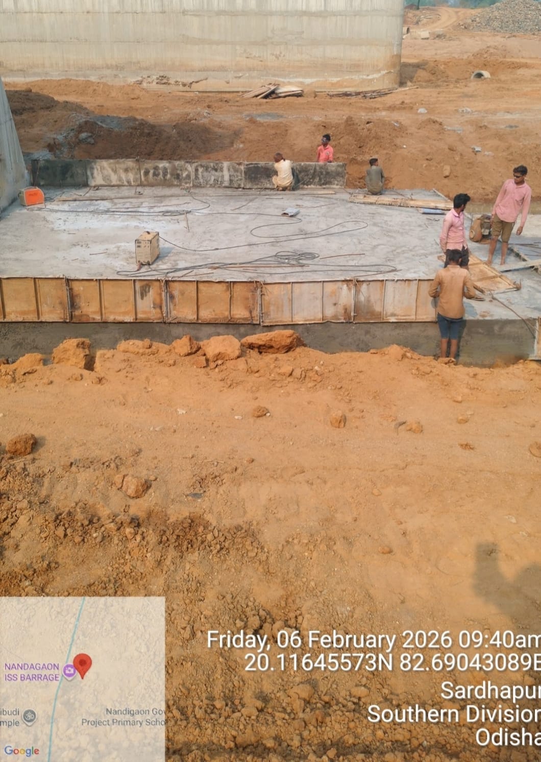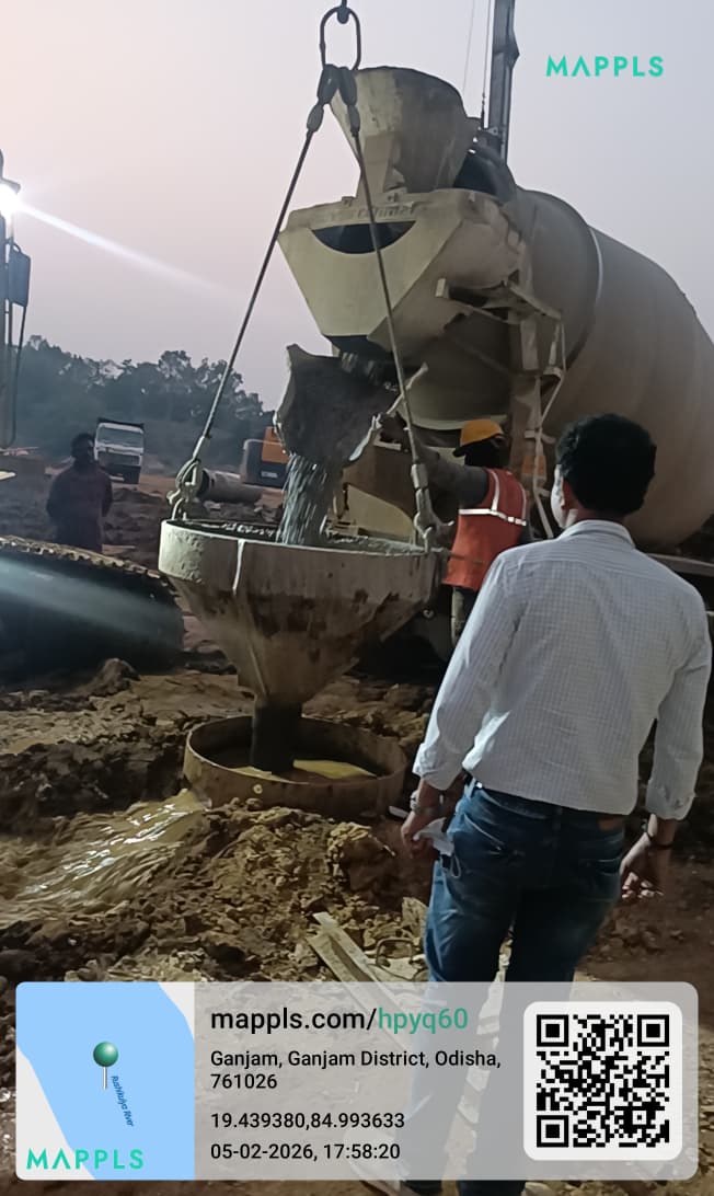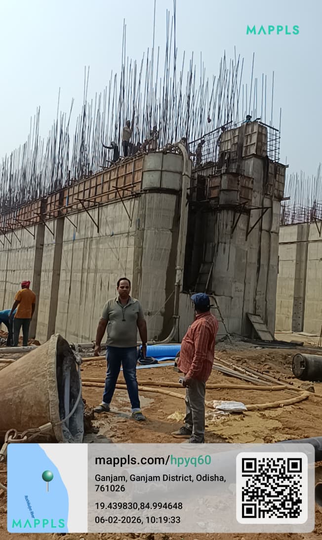 (iv) Area is cleaned using air water jet and passed by SE, KID, Bhawanipatna and ready to place concrete with RCC M35A20 grade upto RL-247.30m on 06.02.2026