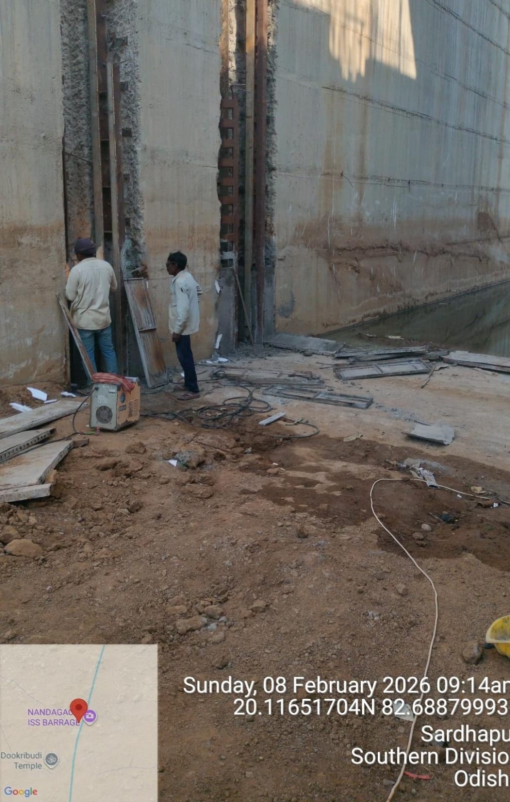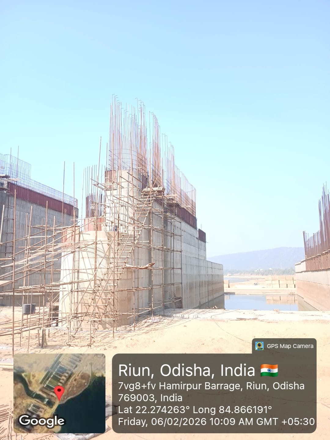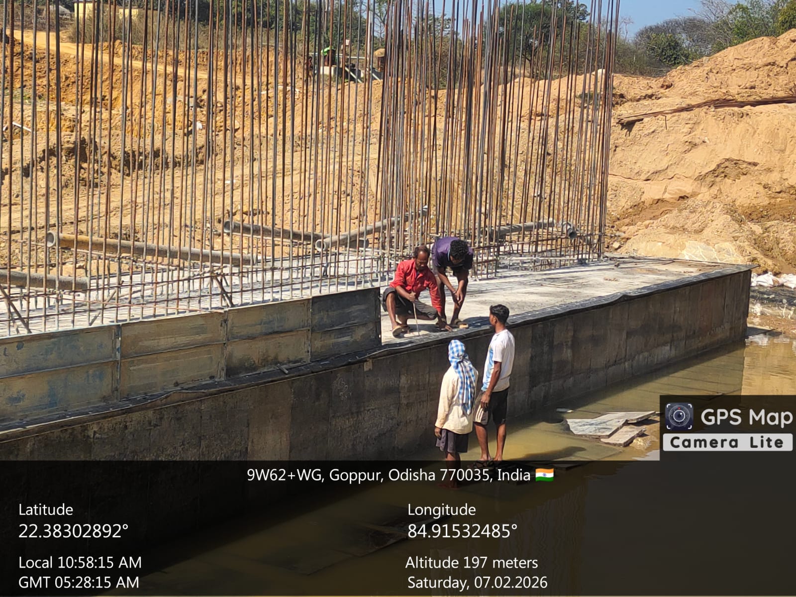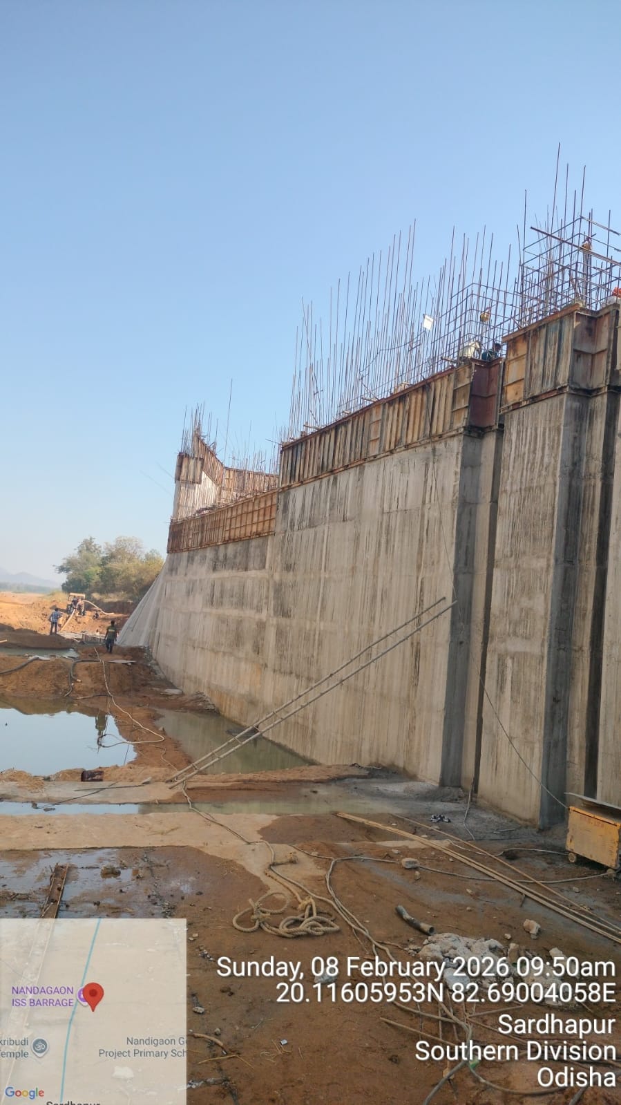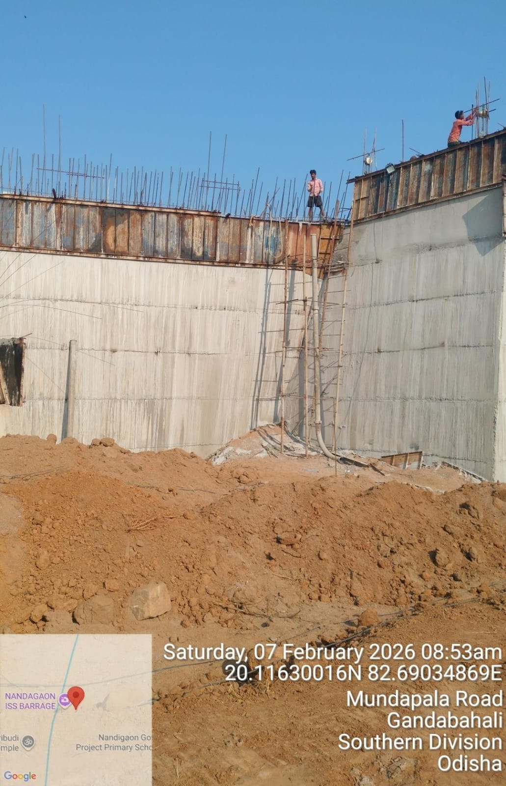 (iv) Area is cleaned using air water jet and passed by SE, KID, Bhawanipatna and ready to place concrete with RCC M35A20 grade upto RL-247.30m on 06.02.2026