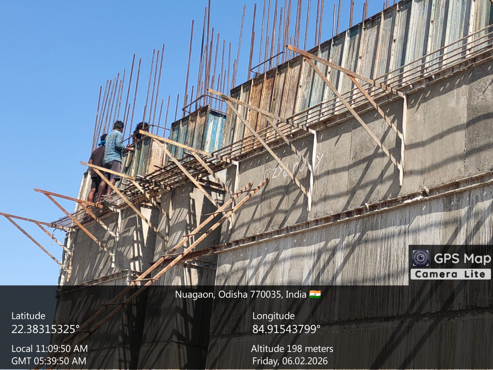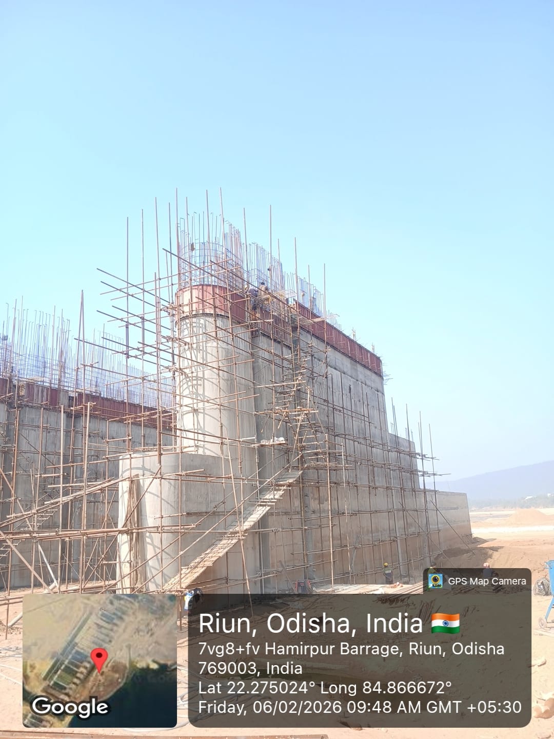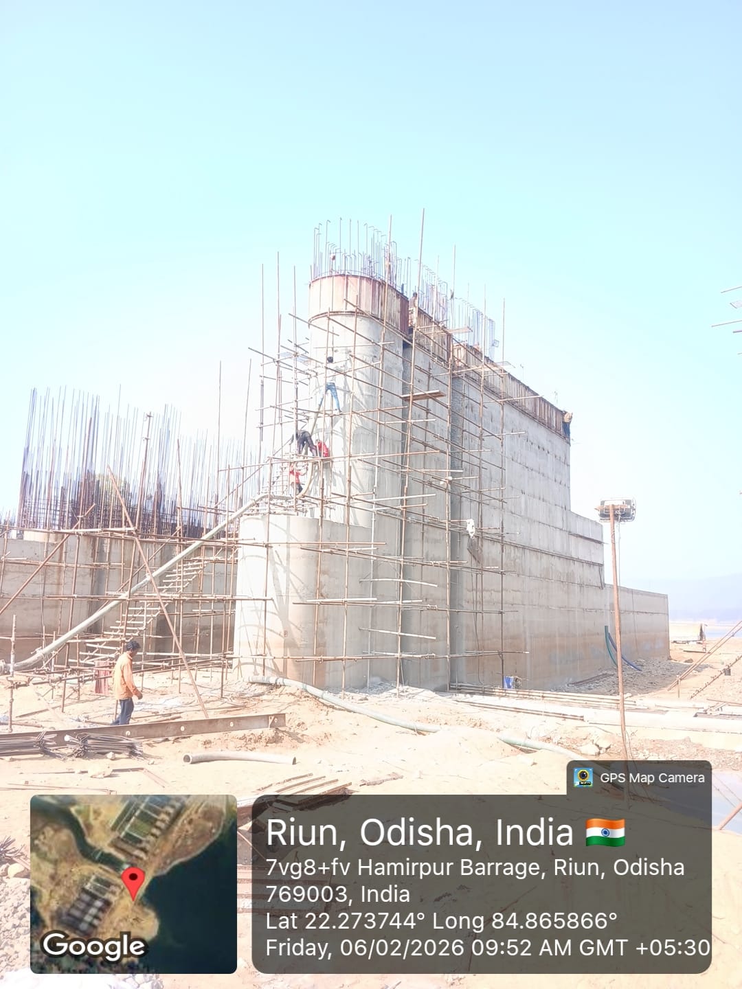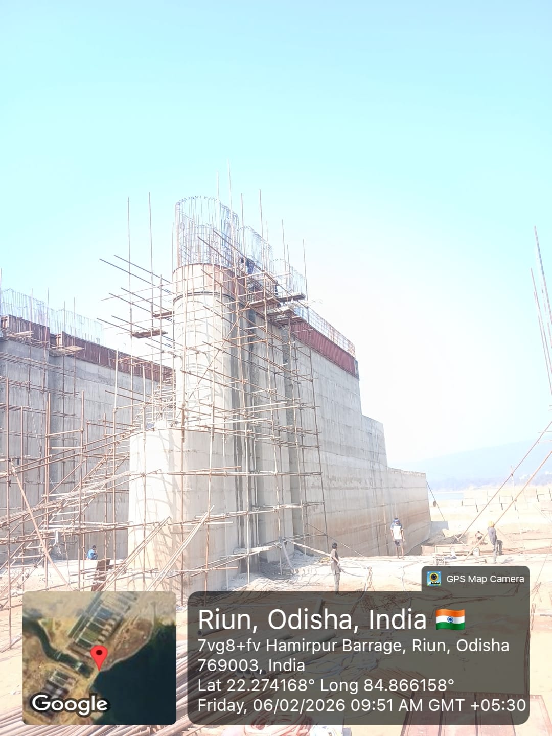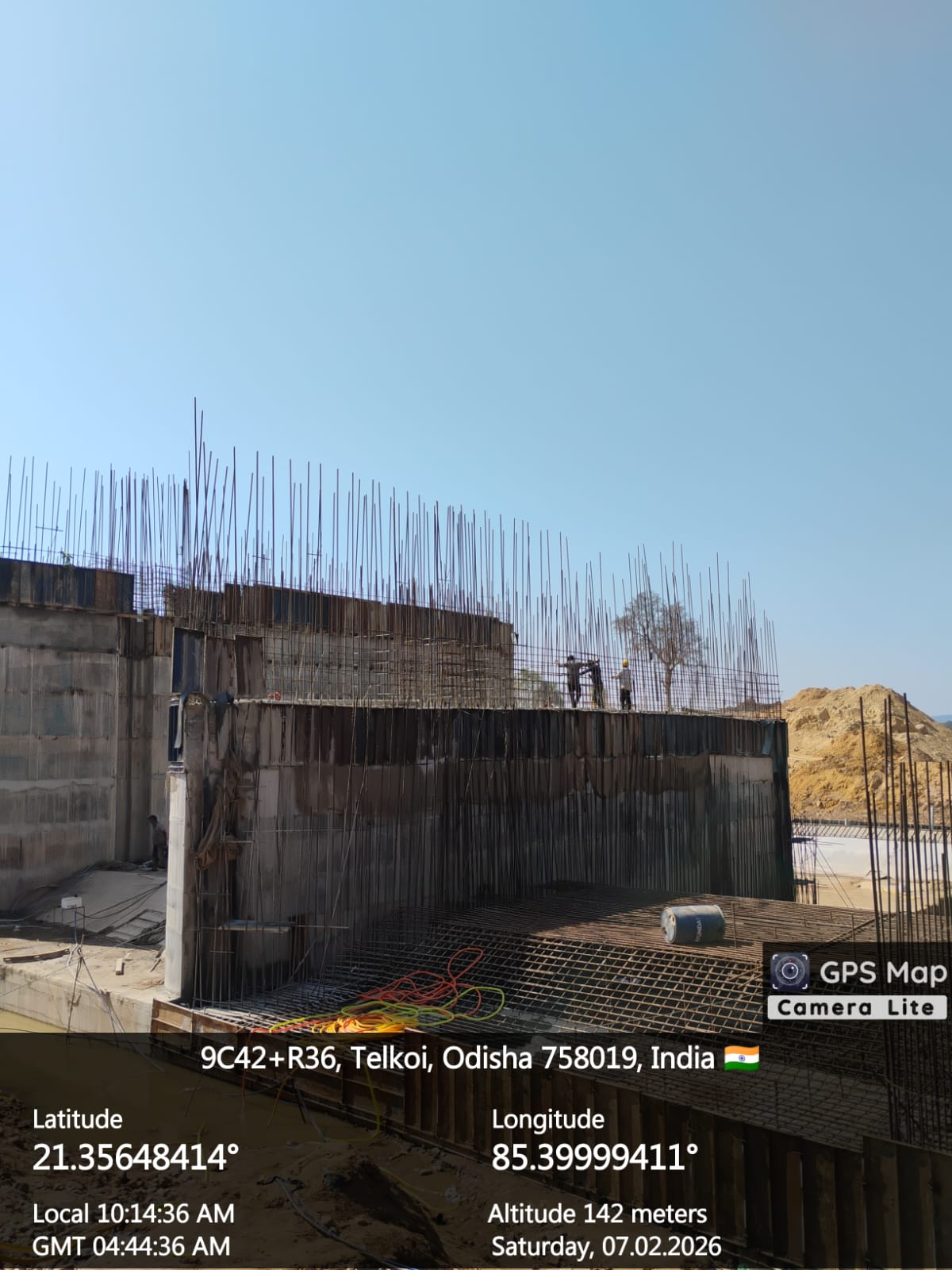 (iv) Area is cleaned using air water jet and passed by SE, KID, Bhawanipatna and ready to place concrete with RCC M35A20 grade upto RL-247.30m on 06.02.2026