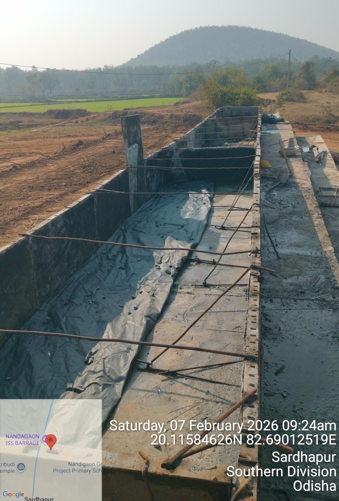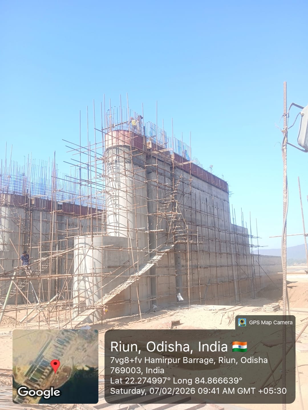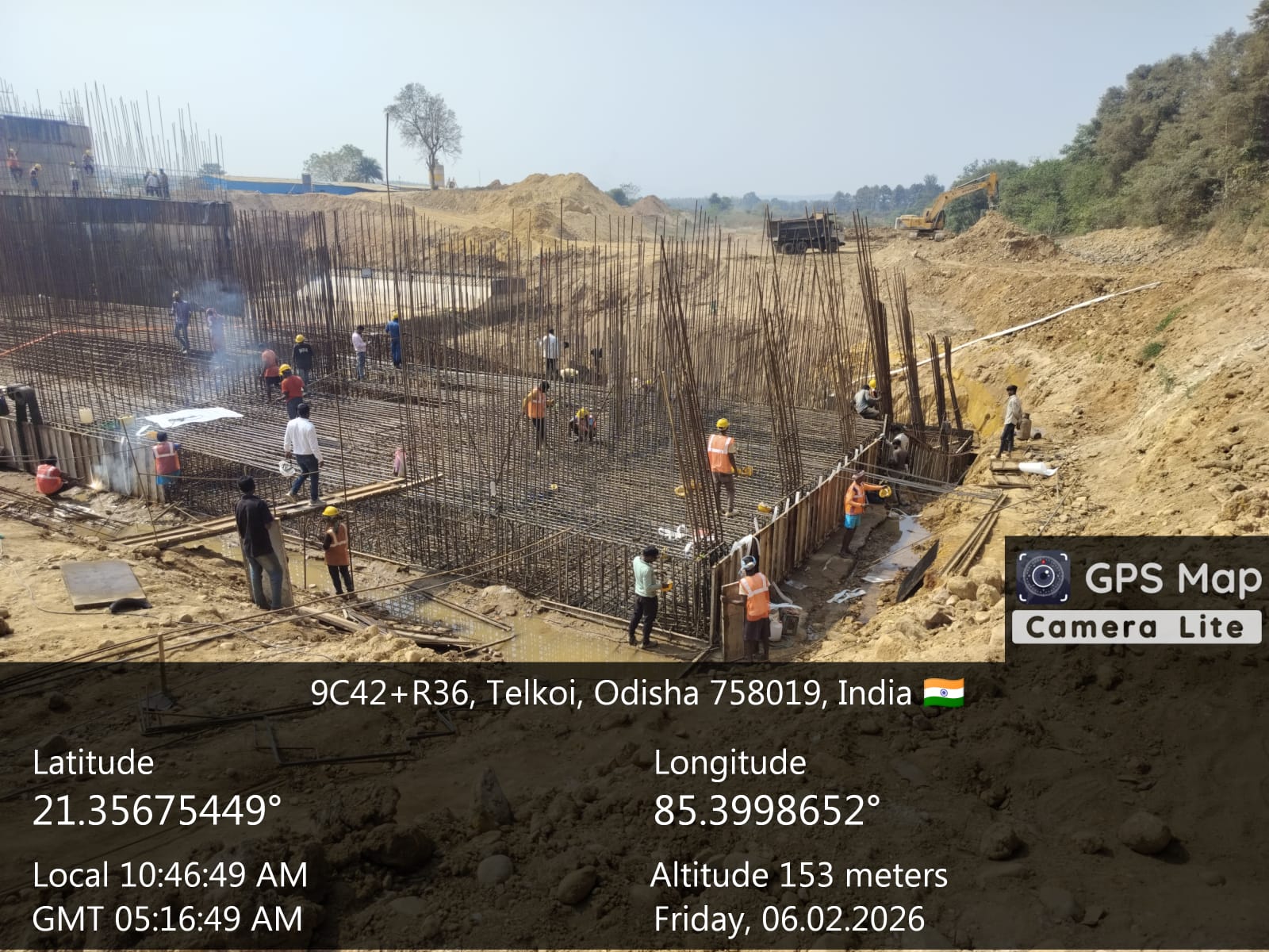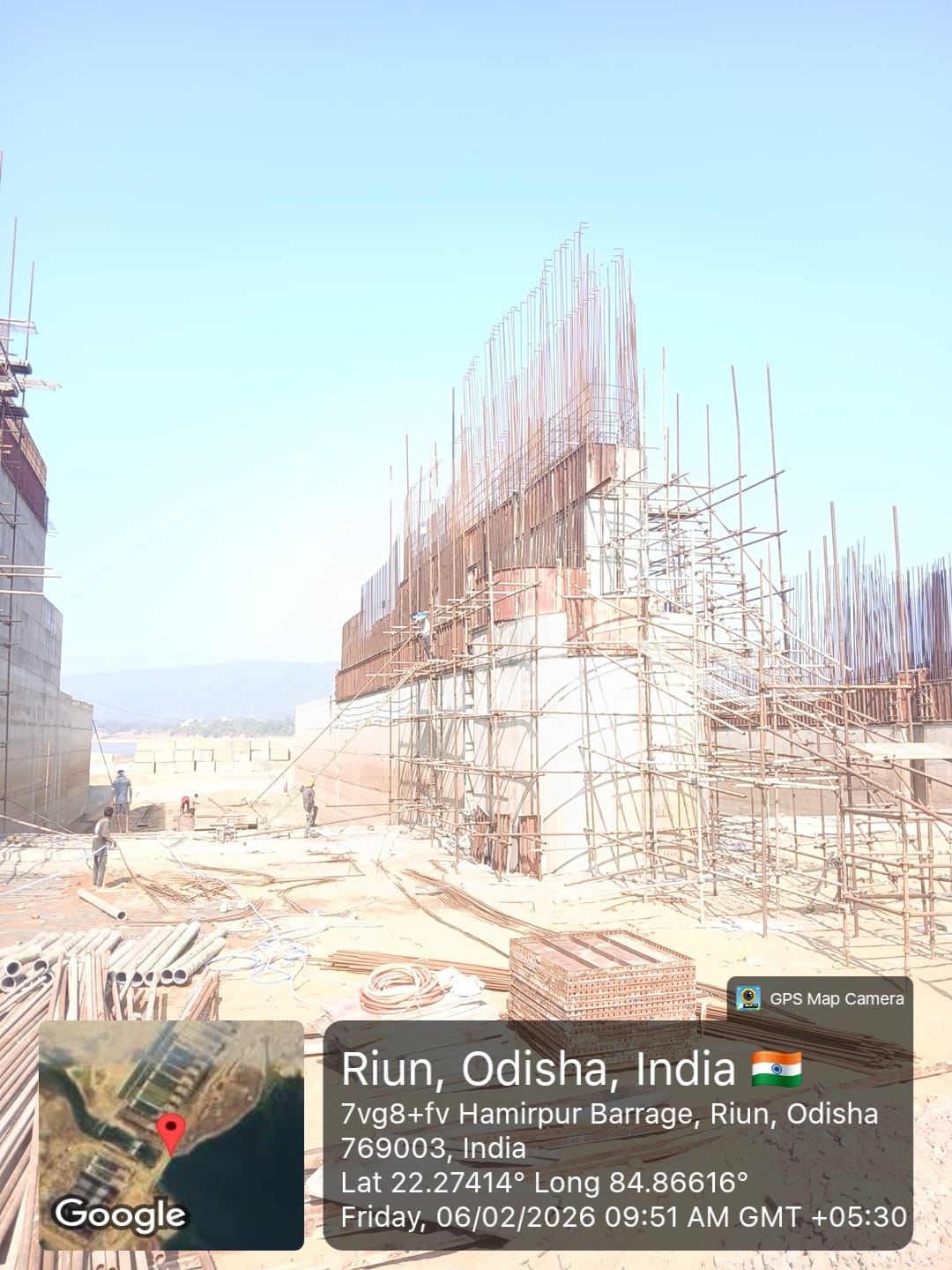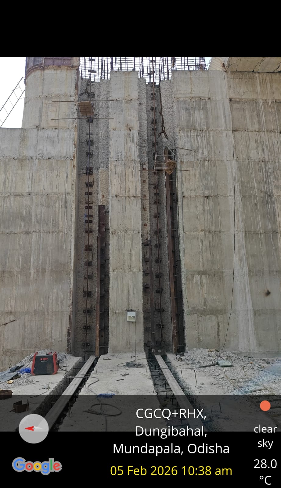 (iv) Area is cleaned using air water jet and passed by SE, KID, Bhawanipatna and ready to place concrete with RCC M35A20 grade upto RL-247.30m on 06.02.2026