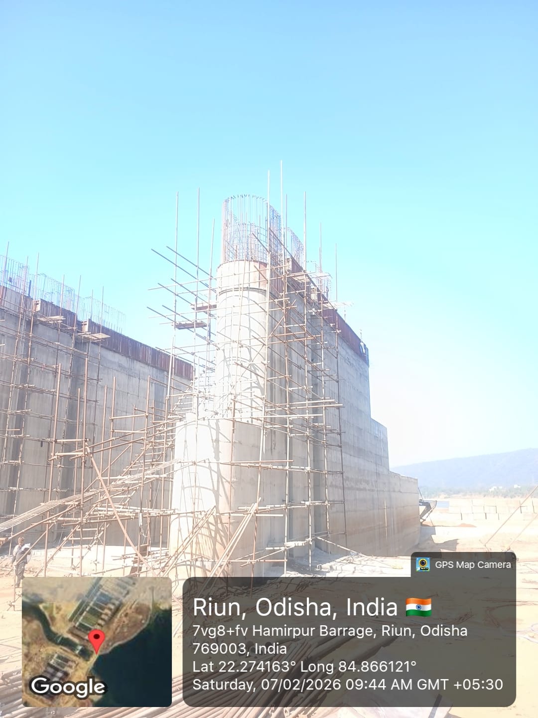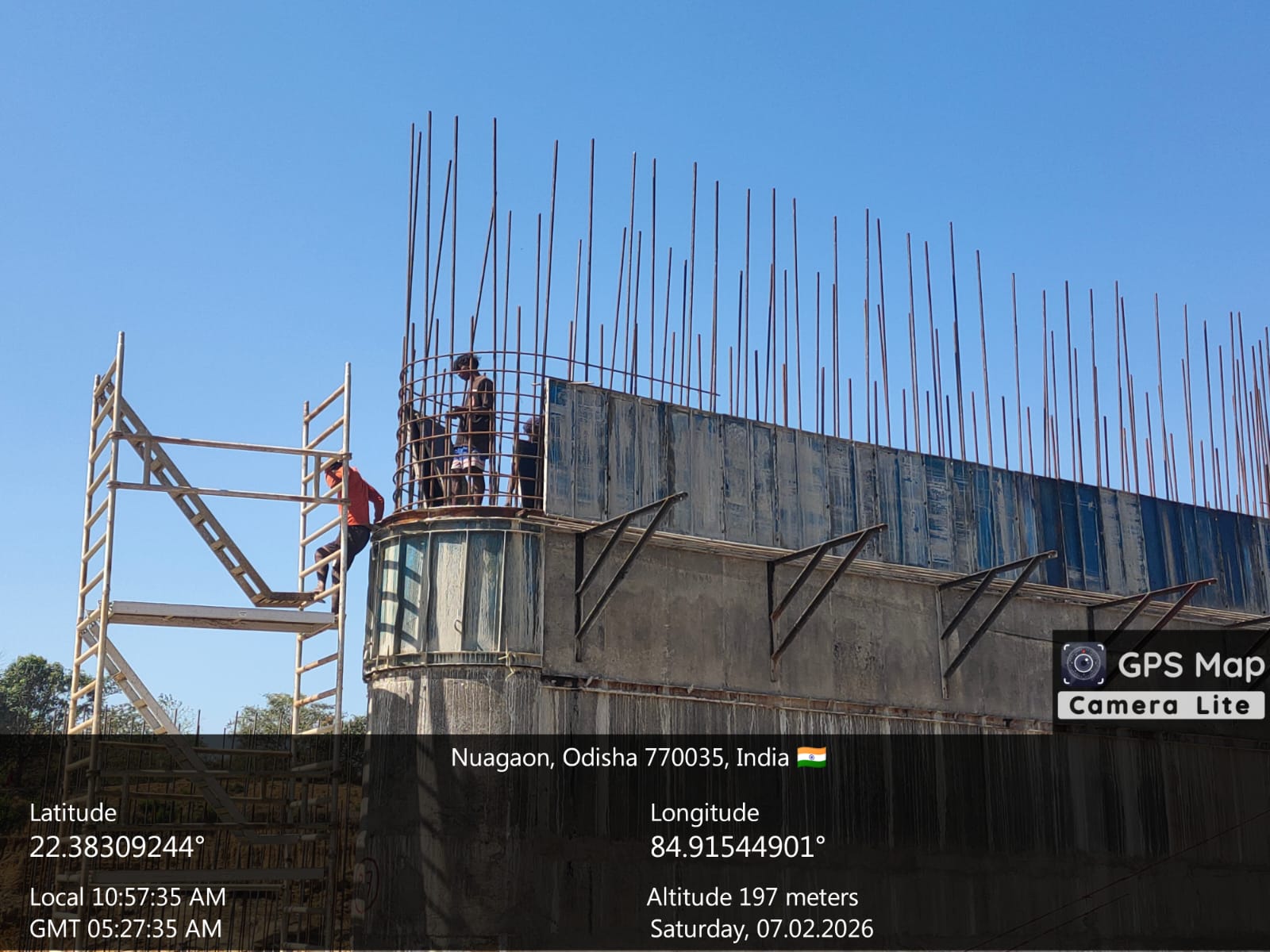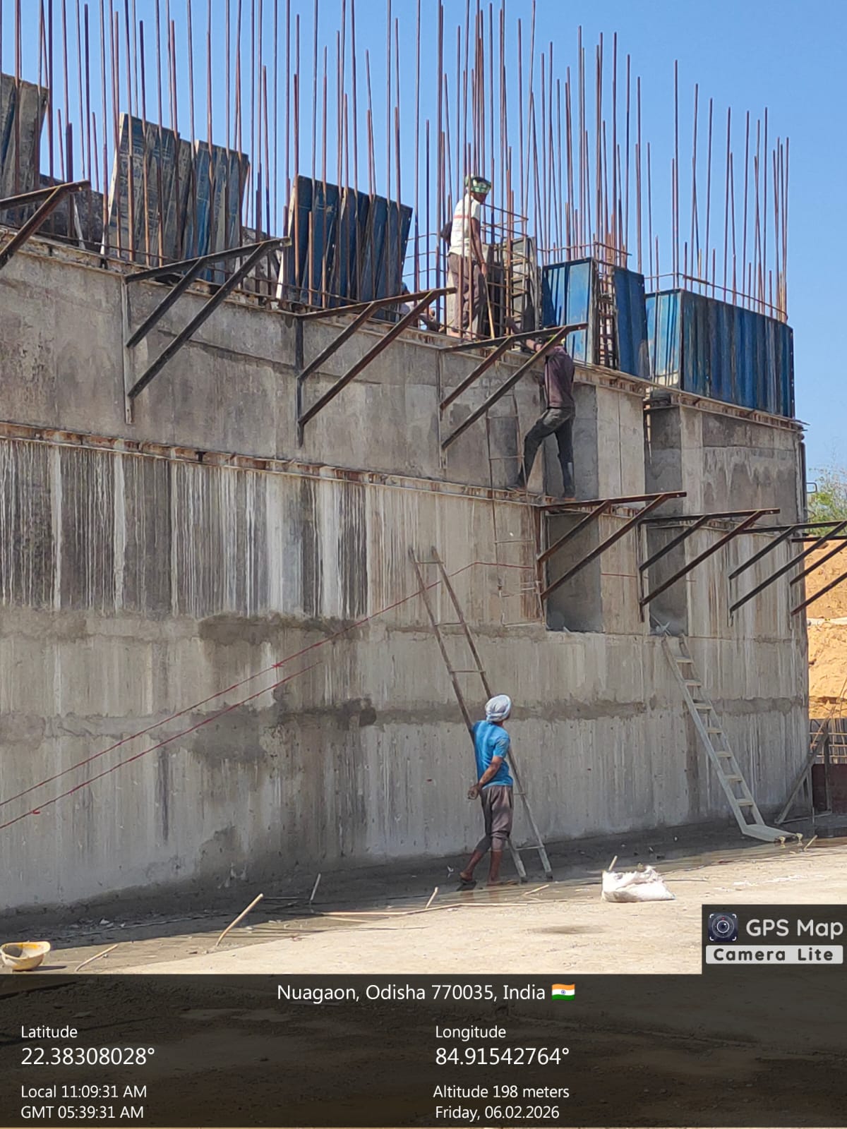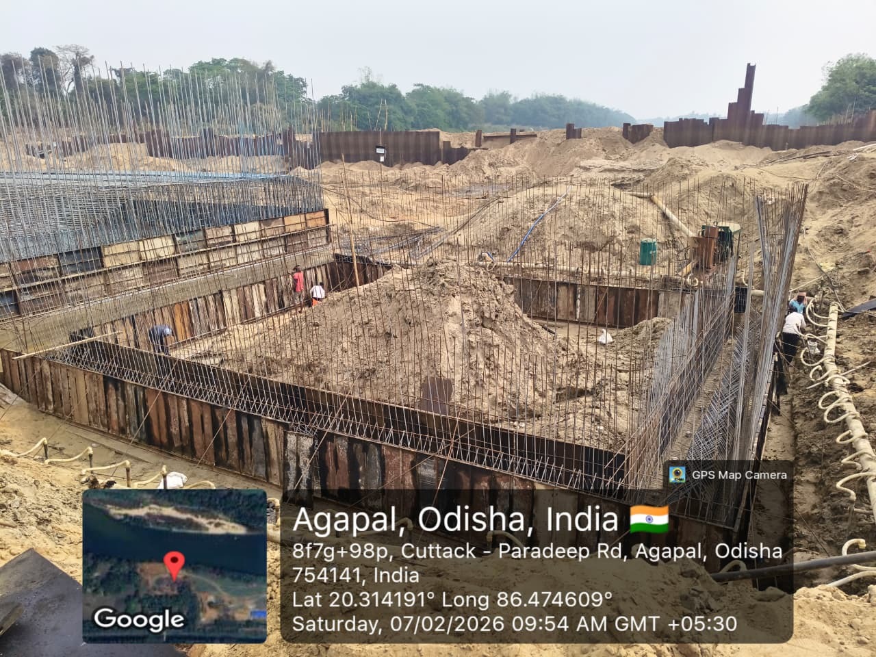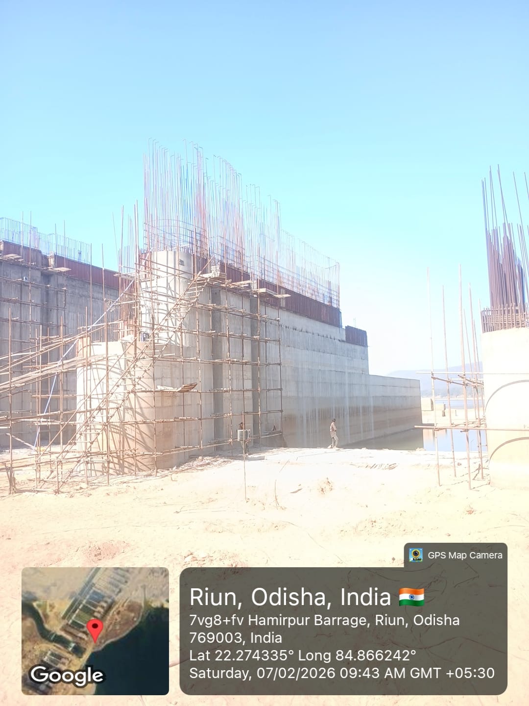 (iv) Area is cleaned using air water jet and passed by SE, KID, Bhawanipatna and ready to place concrete with RCC M35A20 grade upto RL-247.30m on 06.02.2026