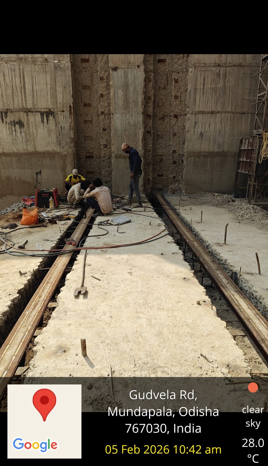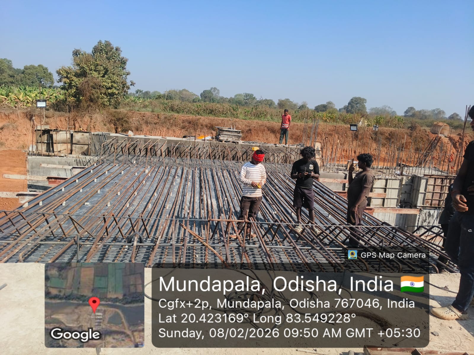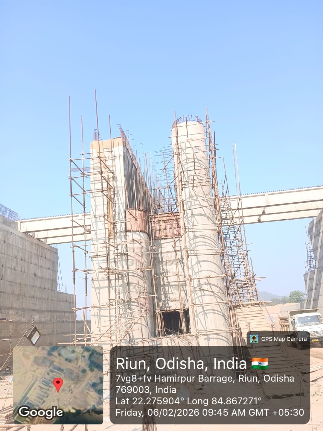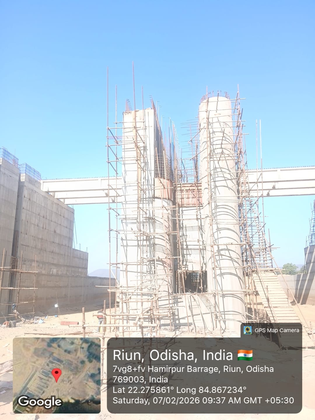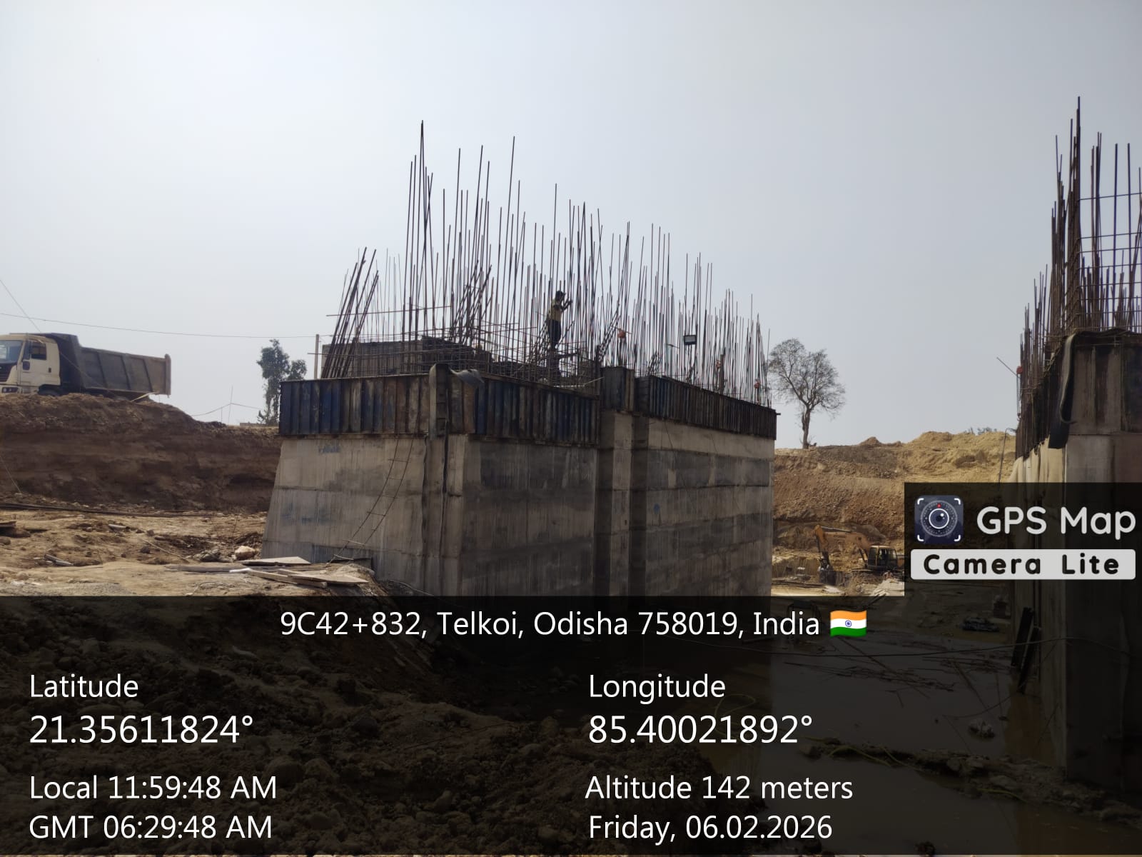 (iv) Area is cleaned using air water jet and passed by SE, KID, Bhawanipatna and ready to place concrete with RCC M35A20 grade upto RL-247.30m on 06.02.2026