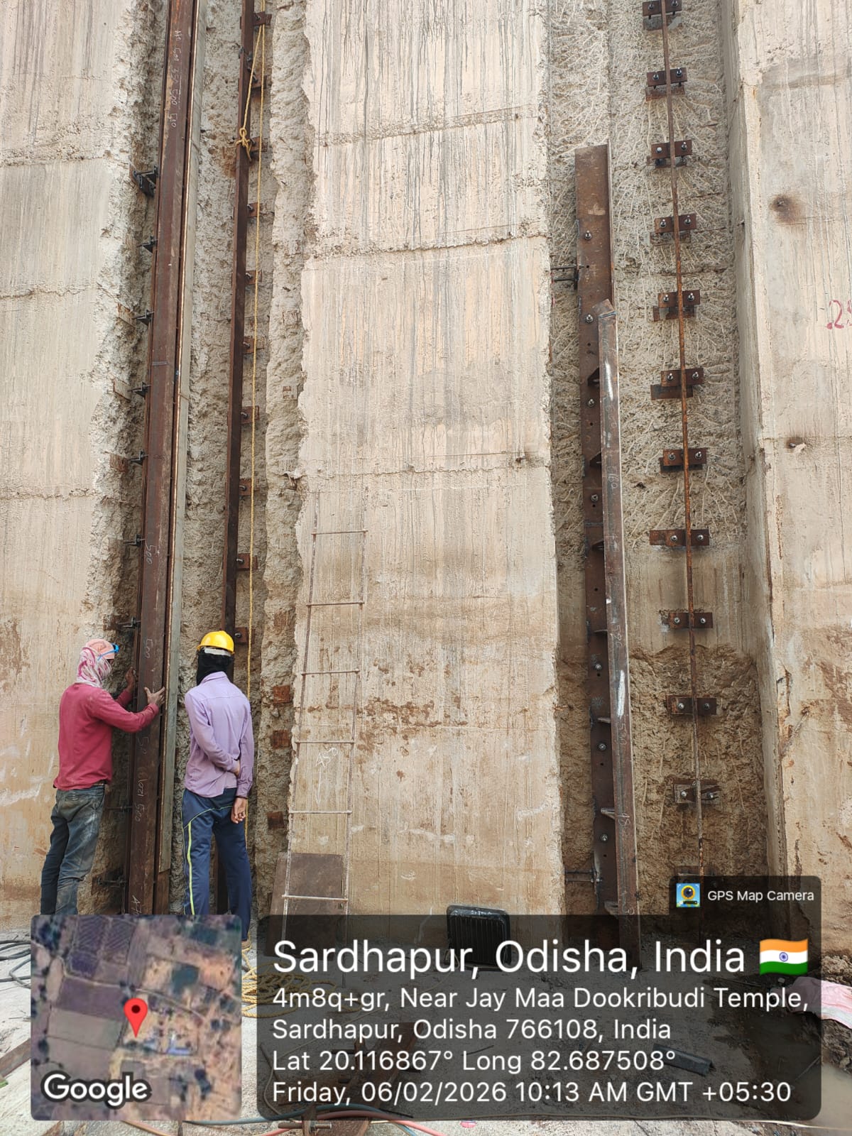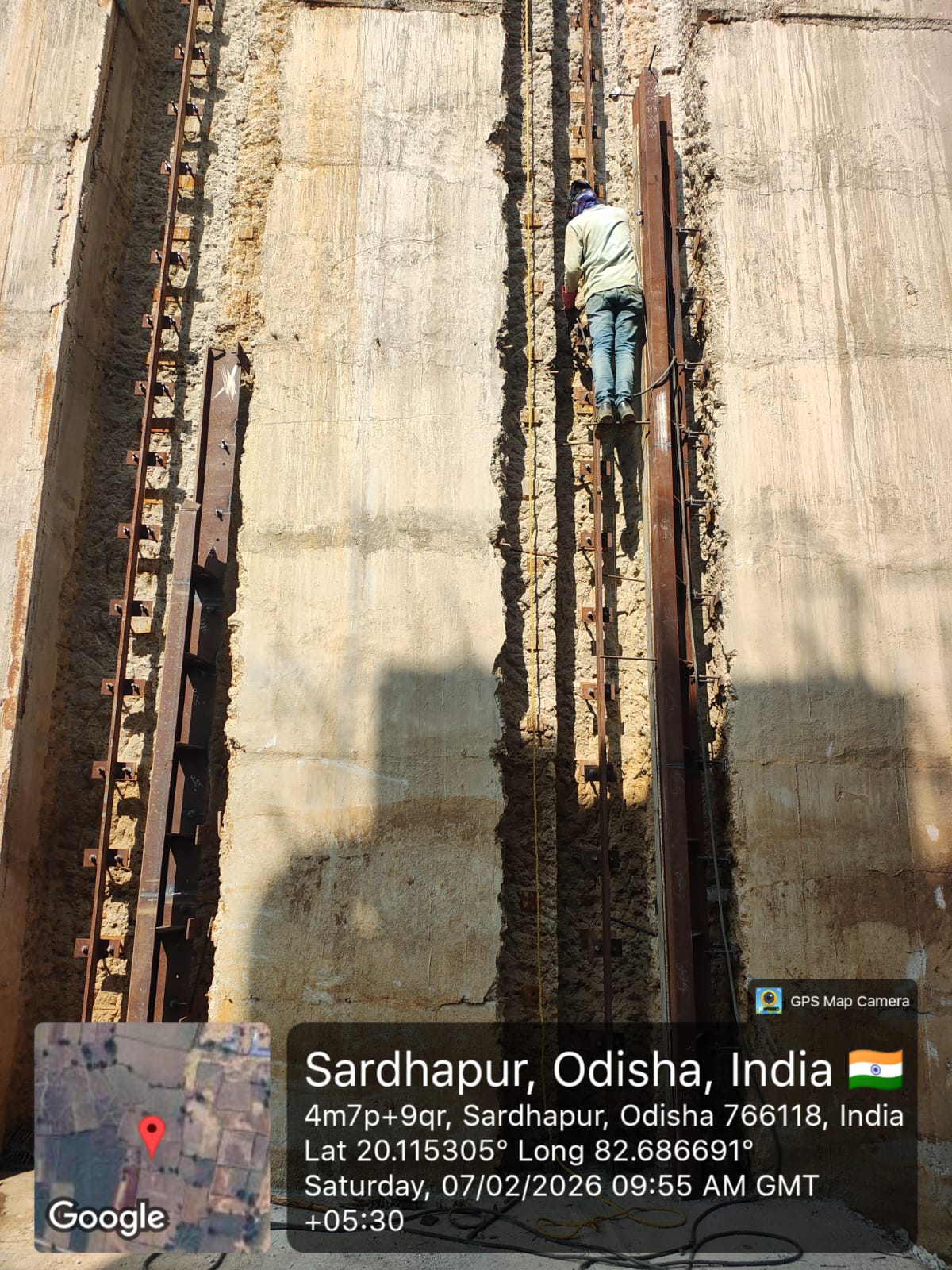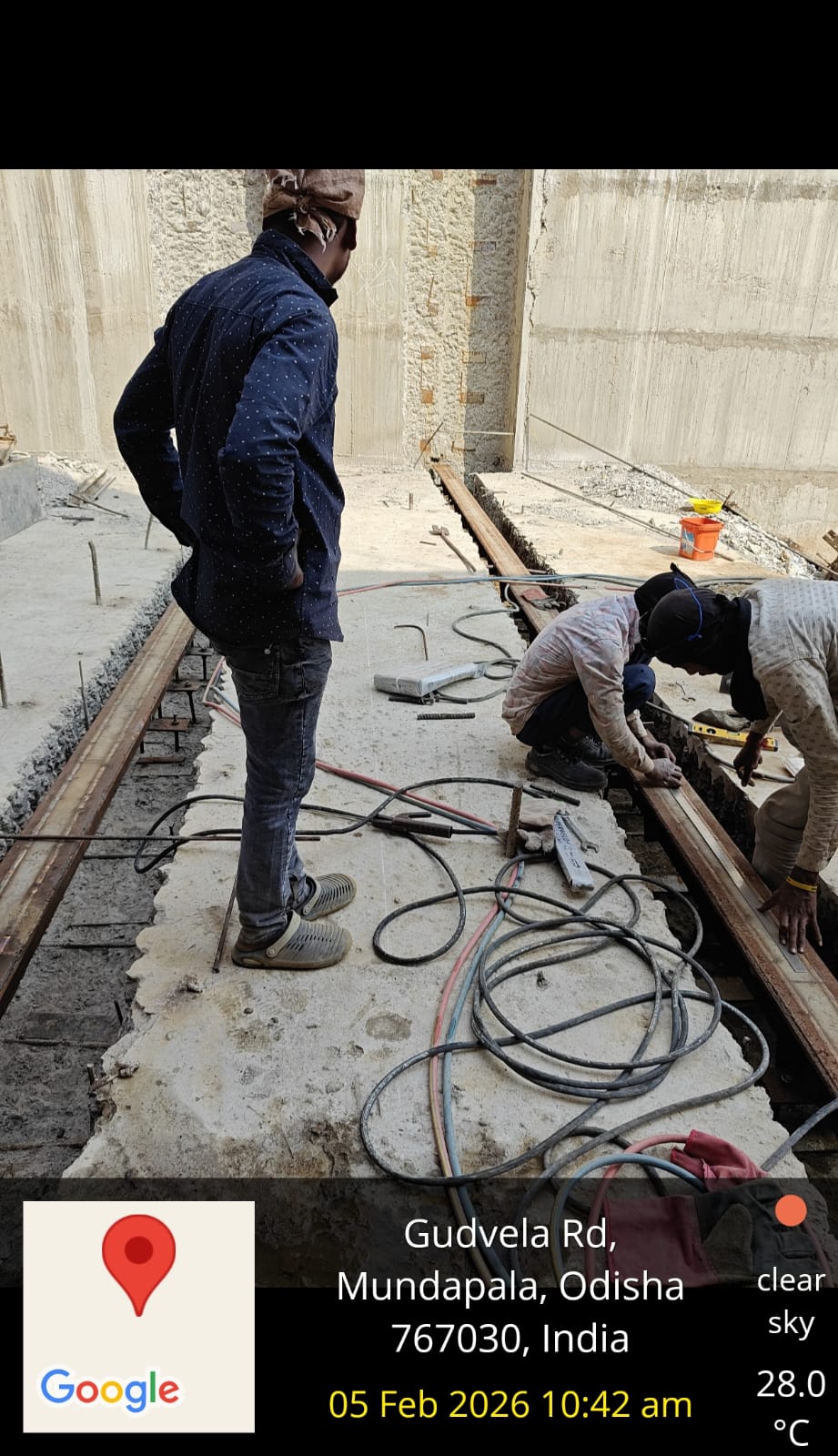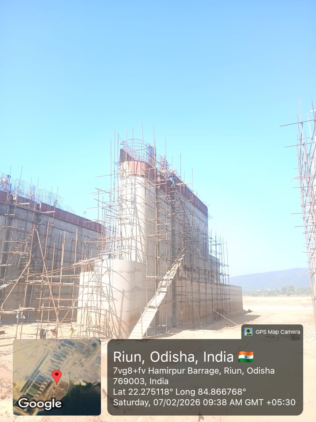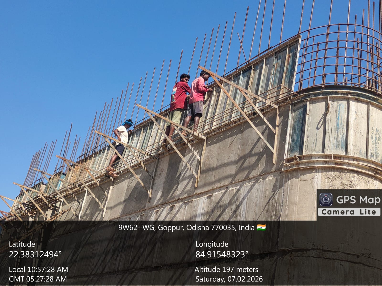 (iv) Area is cleaned using air water jet and passed by SE, KID, Bhawanipatna and ready to place concrete with RCC M35A20 grade upto RL-247.30m on 06.02.2026
