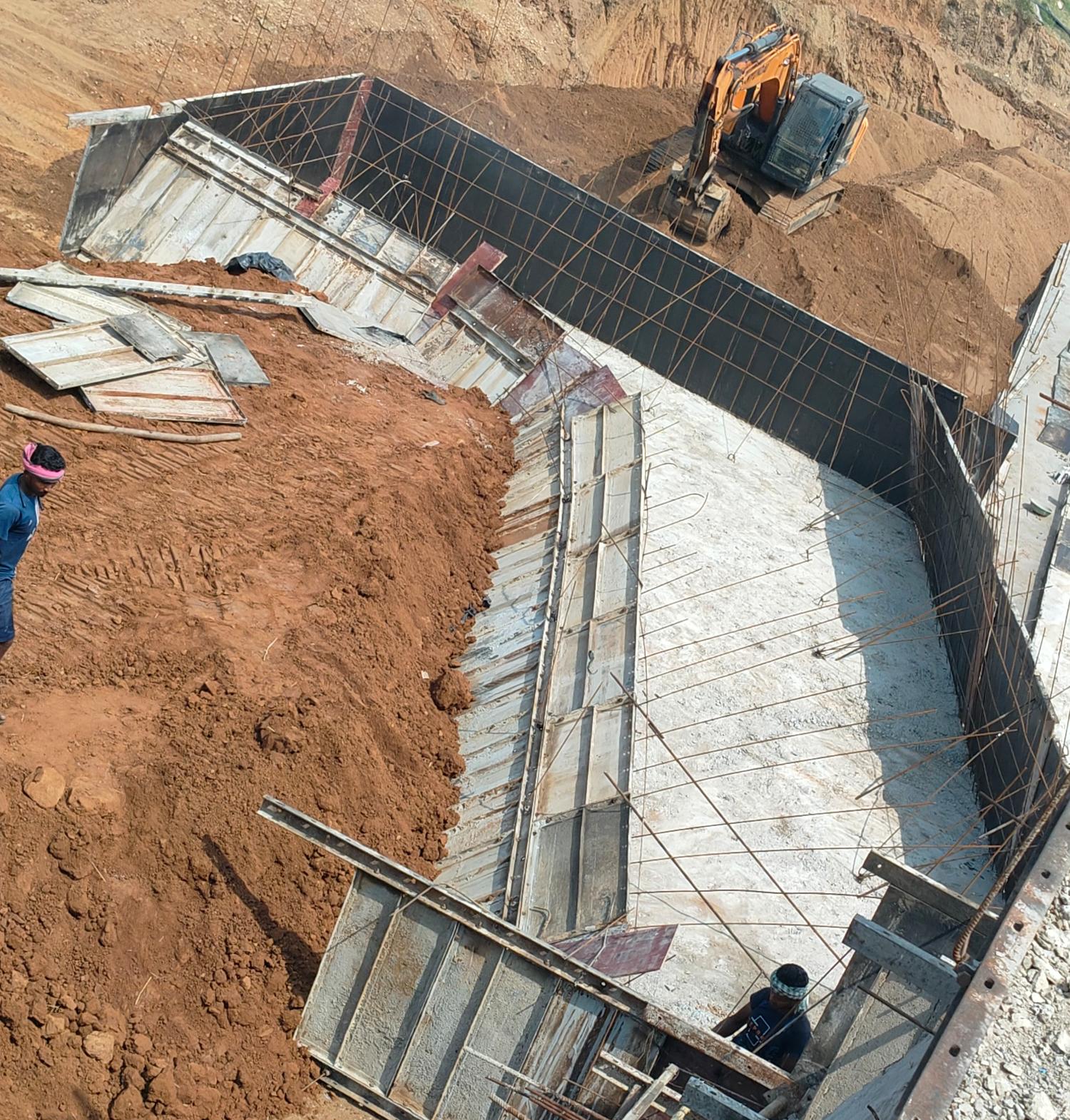 RHS U/S Flared out wall step -10th shuttering work is in progress .