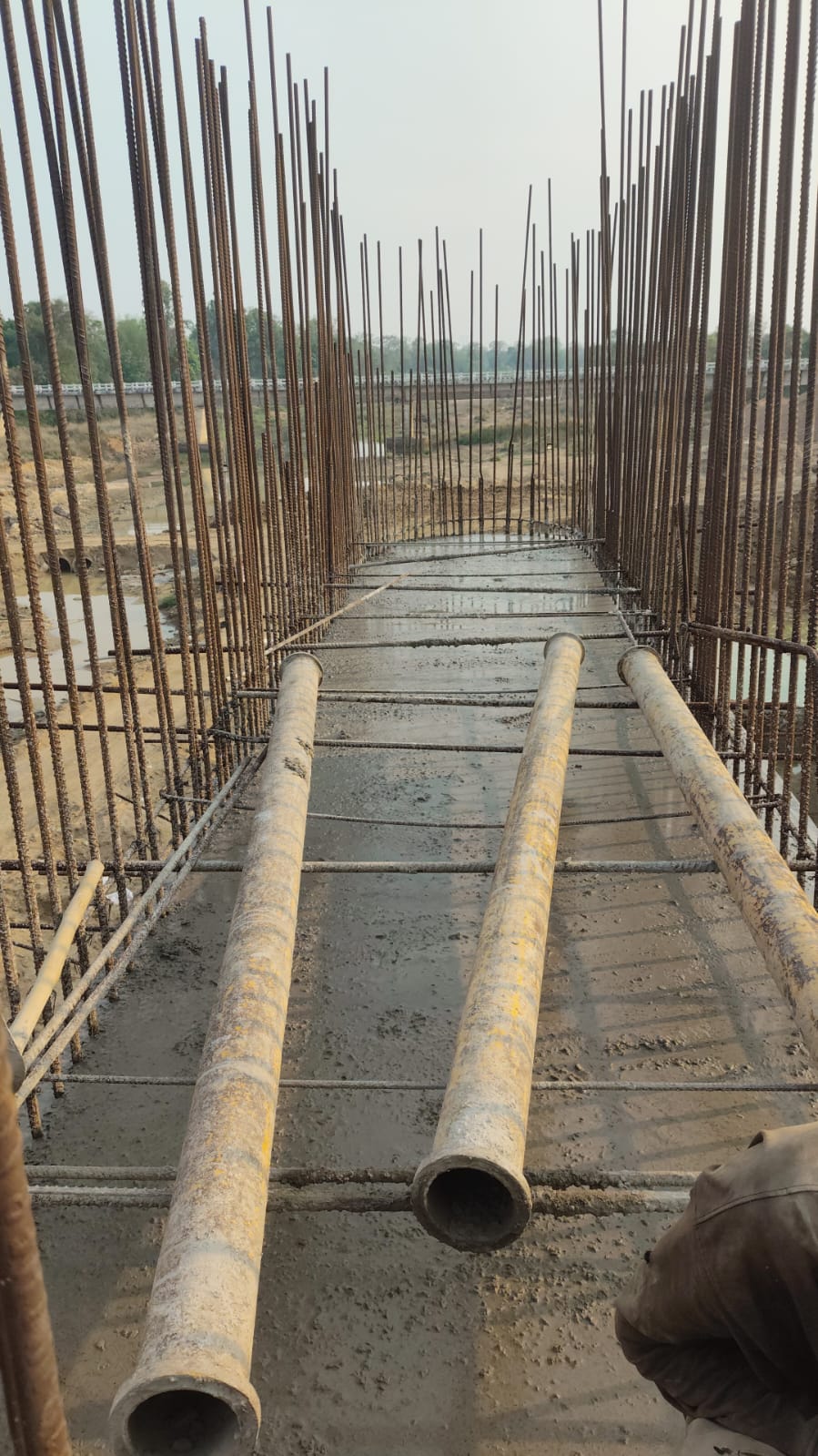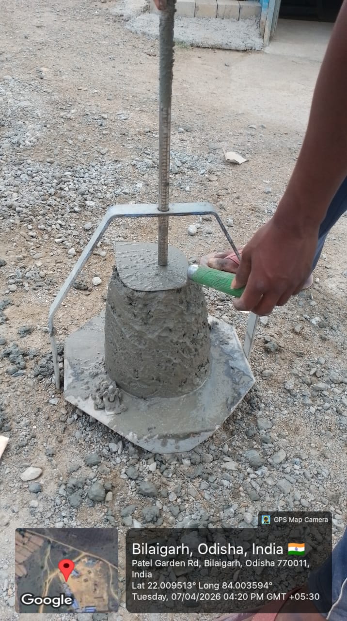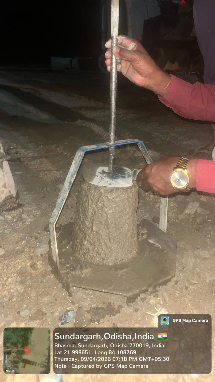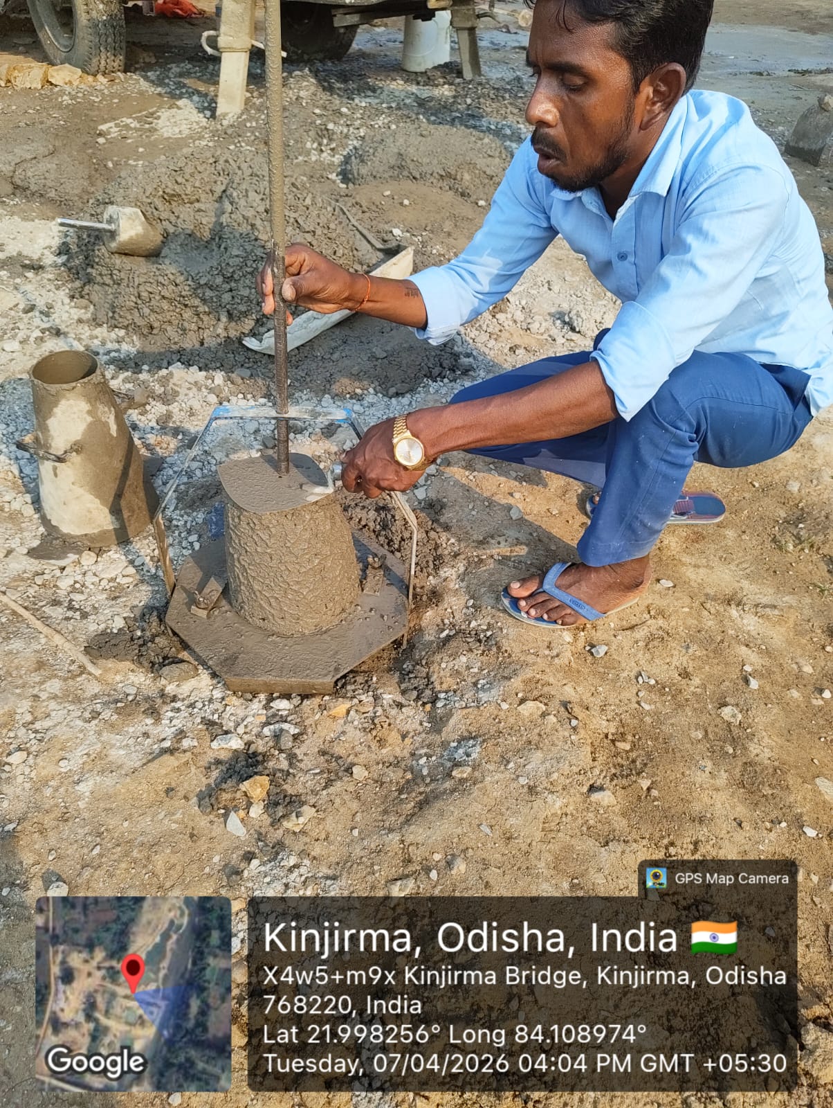 Concrete casting with M35A20 grade of Blockout portion at pier no. 1 is in progress in presence of PM EPC agency,Site Engineers of PMC & EPC agency. The slump test value is 86mm on 08.04.2026