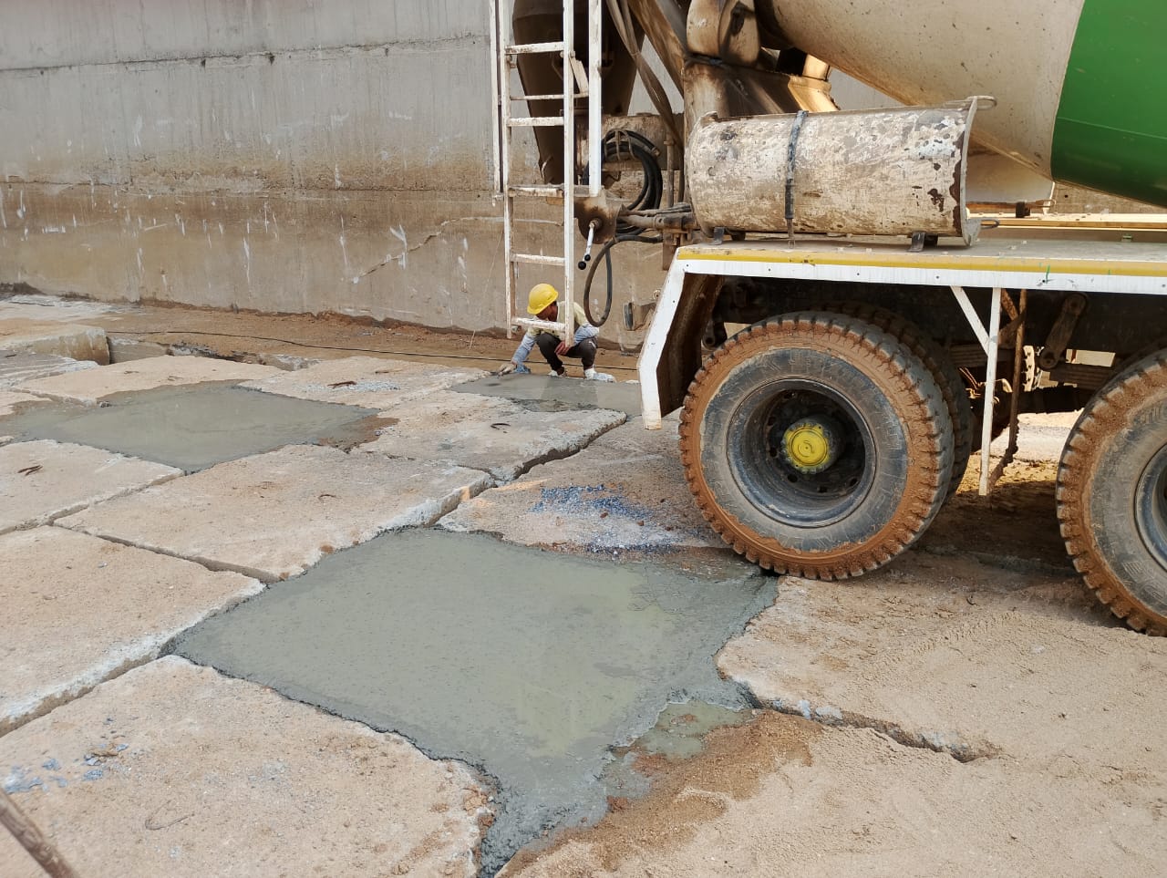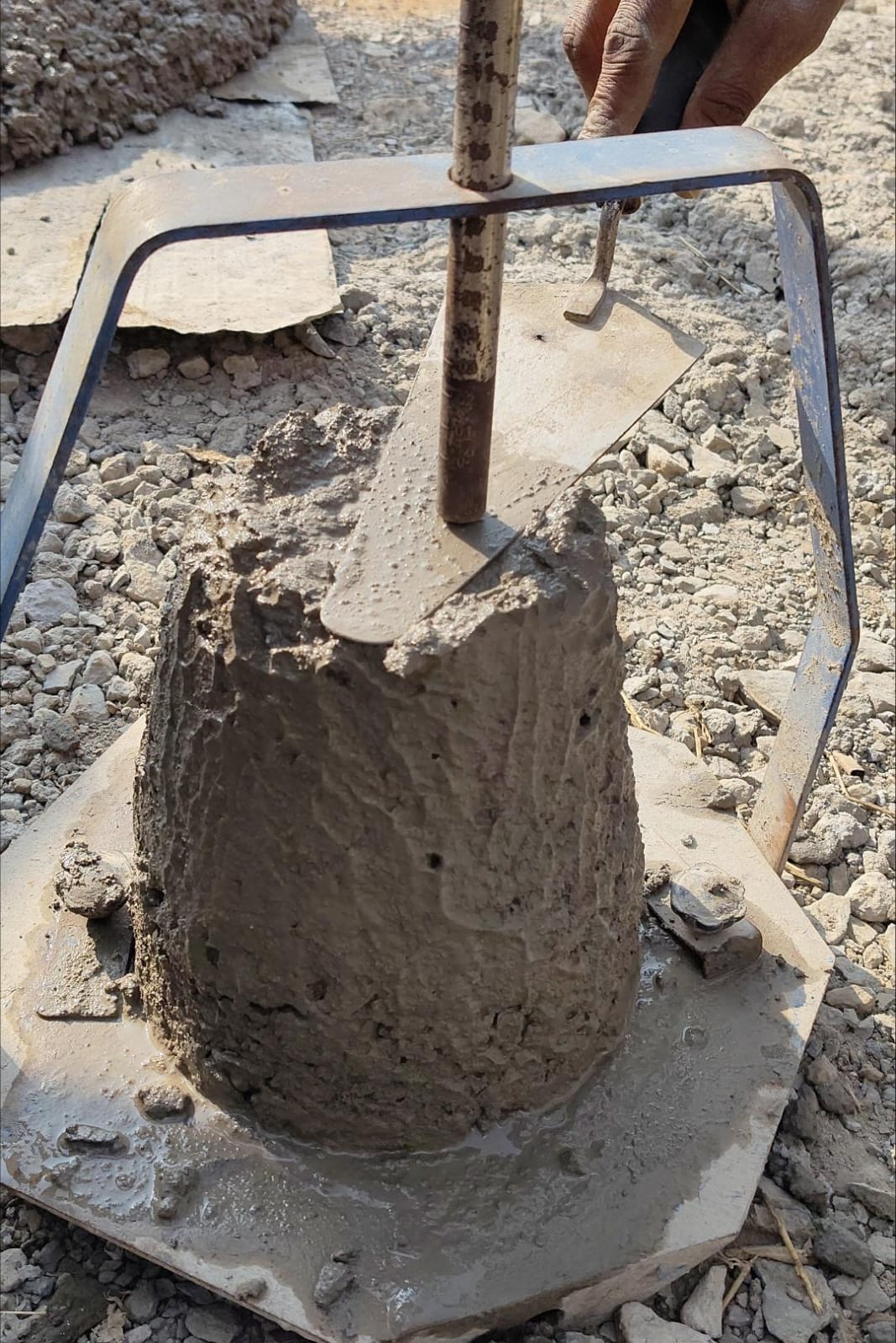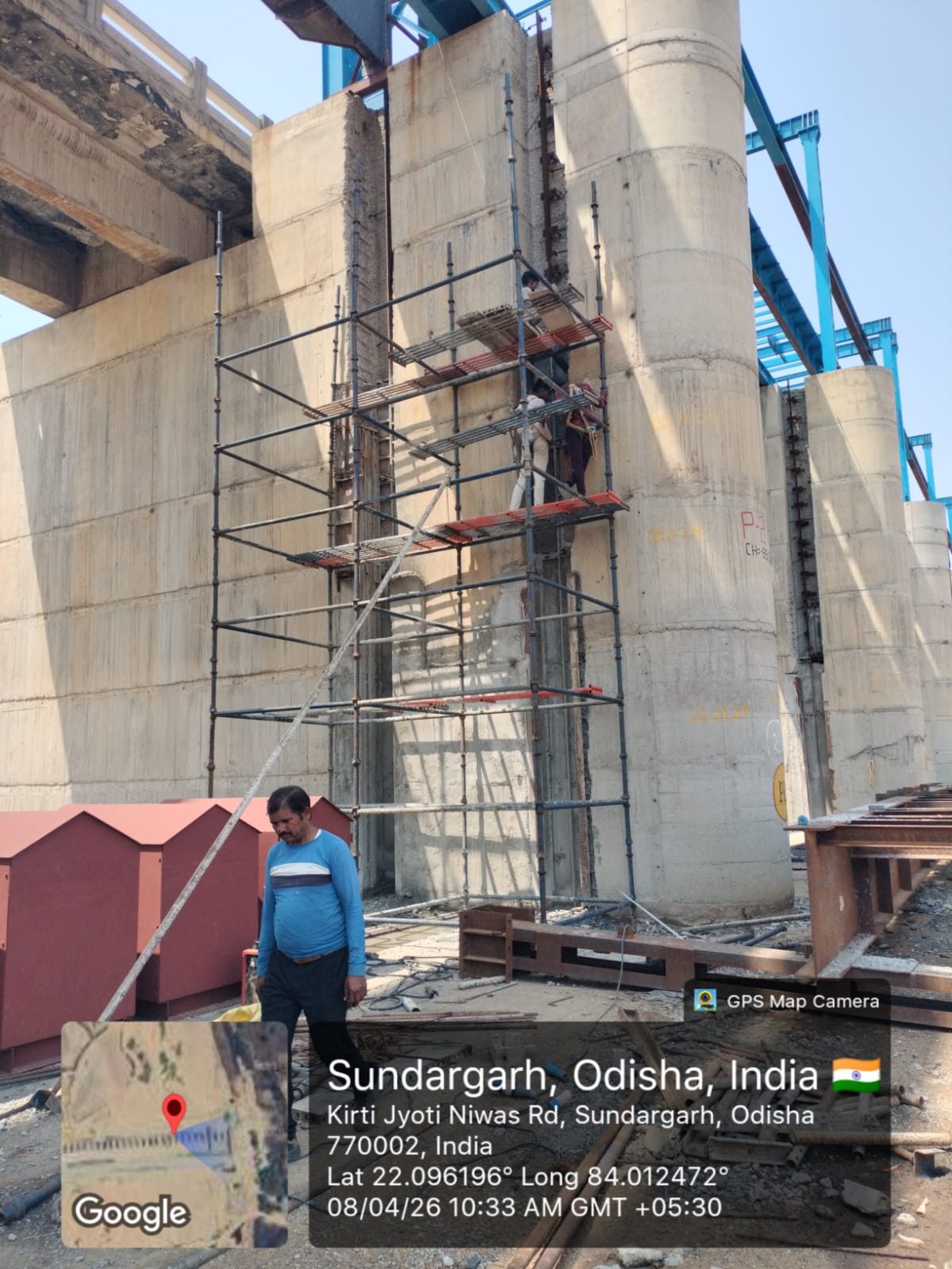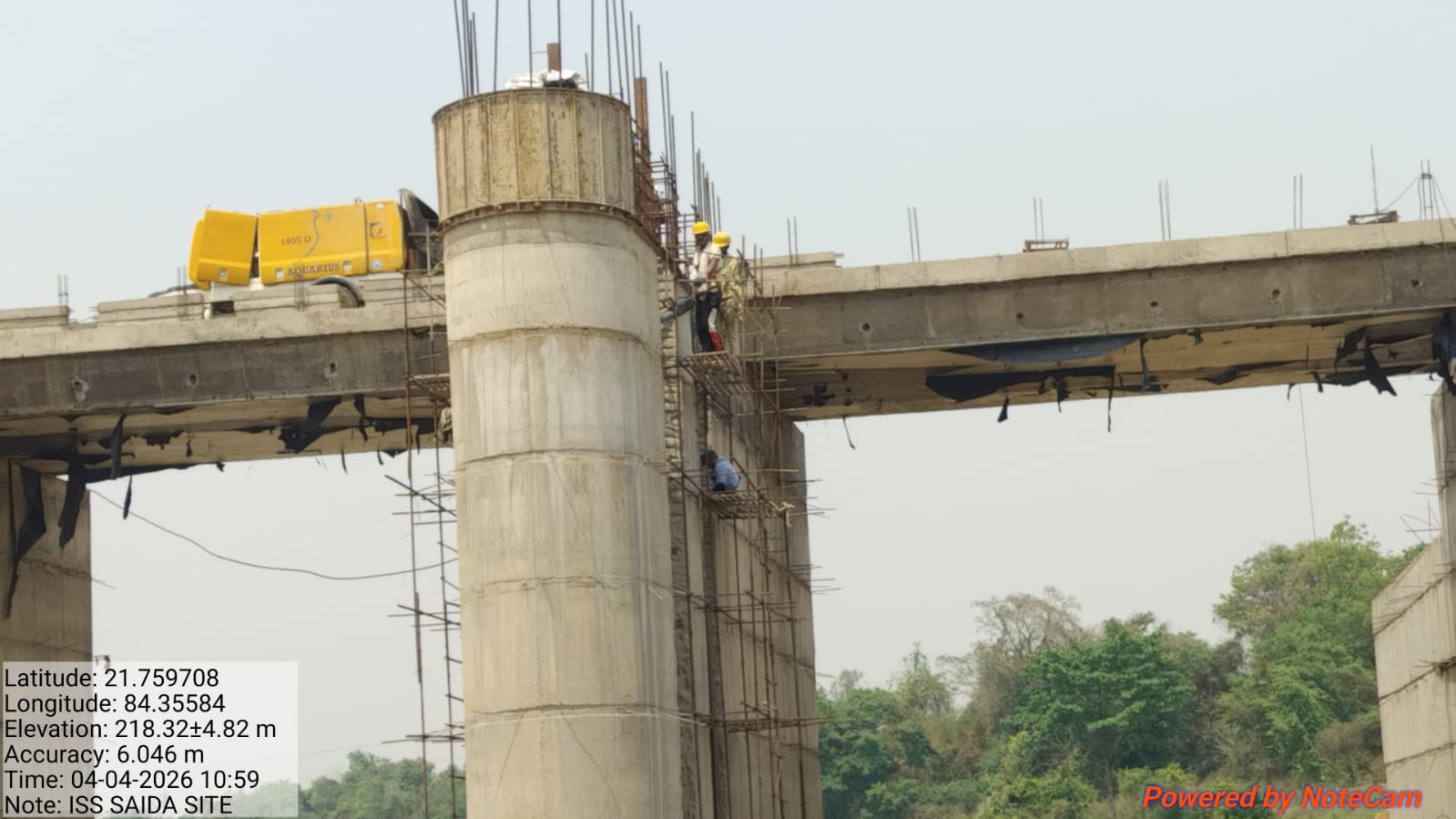 Concrete casting with M35A20 grade of Blockout portion at pier no. 1 is in progress in presence of PM EPC agency,Site Engineers of PMC & EPC agency. The slump test value is 86mm on 08.04.2026