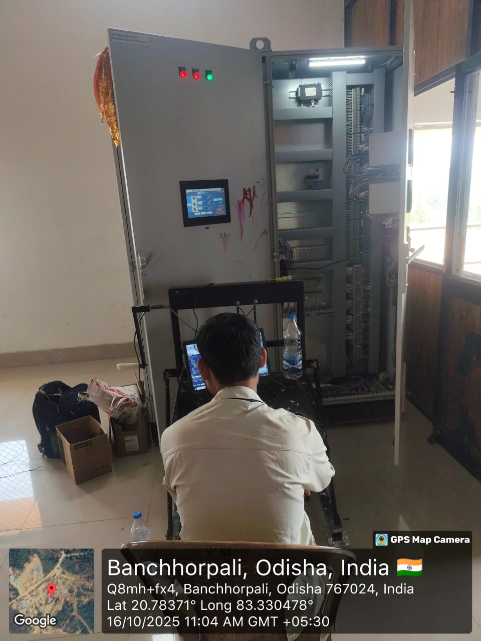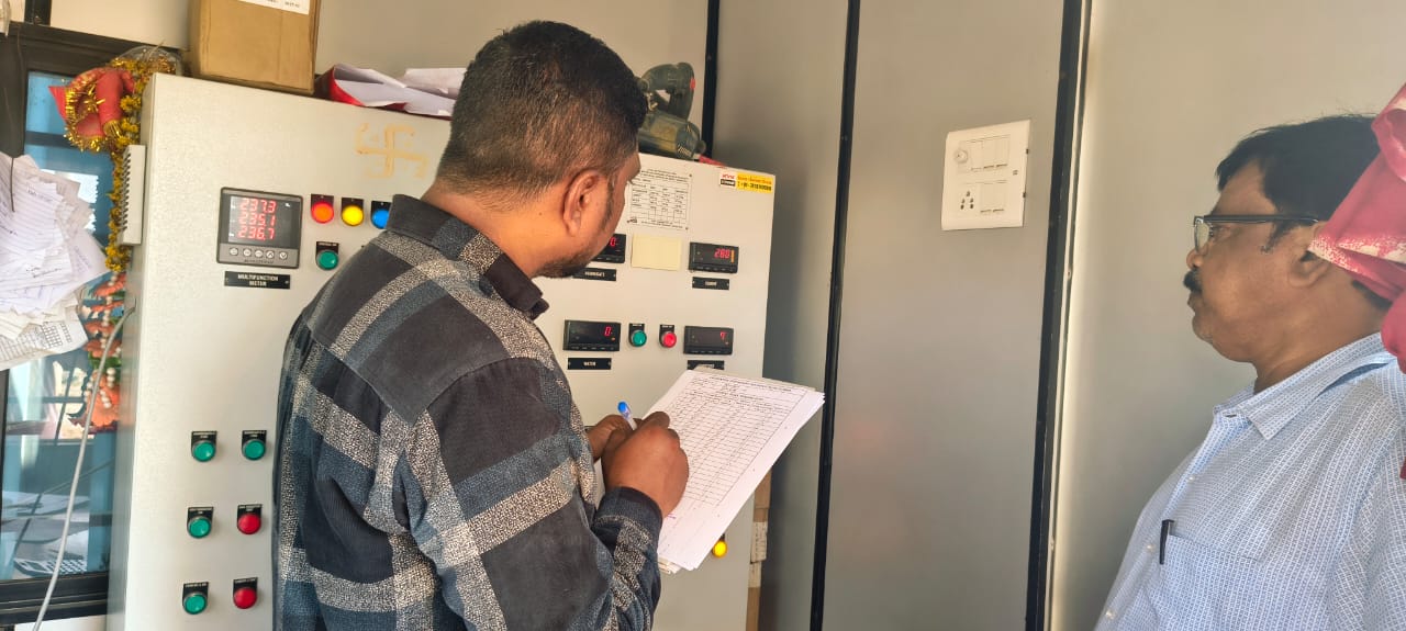 PLC panel programming work and instrumentation cable re checking work is in progress by PLC Engineer at Pump House.