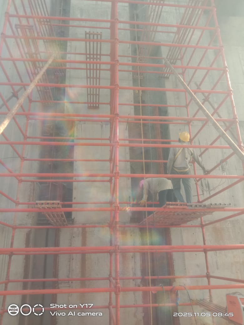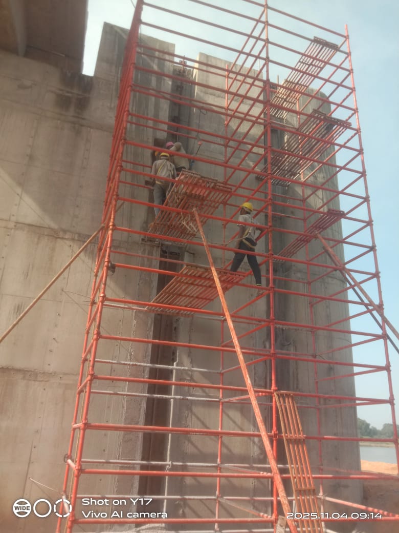 Pier no-25 LHS side gate groove second stage De shuttering & shuttering work in progress.
