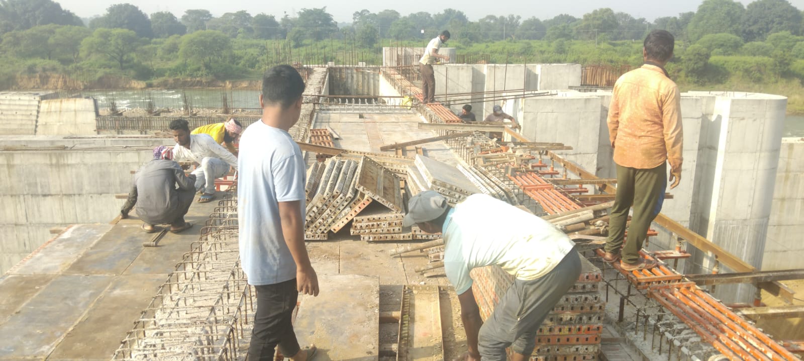Barrage bay-3 span no-06 M35A20 deck slab (Rl-217.440 to Rl-217.740) casting work in completed