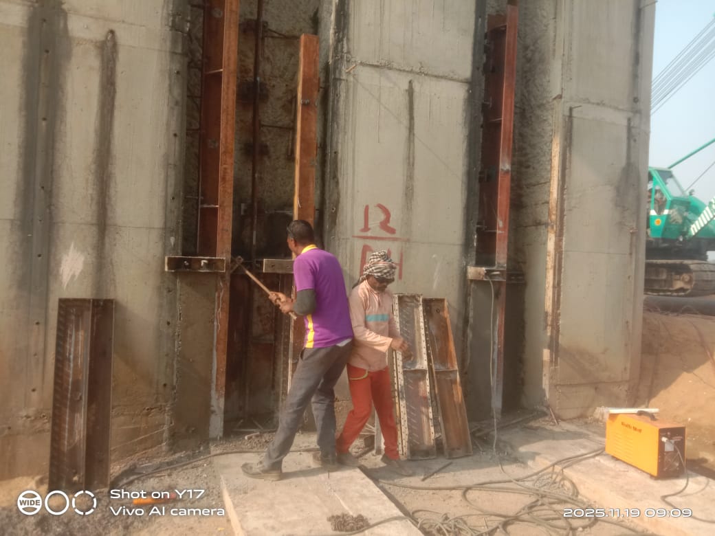 Pier no-25, gate groove second stage deshuttering work in progress.
