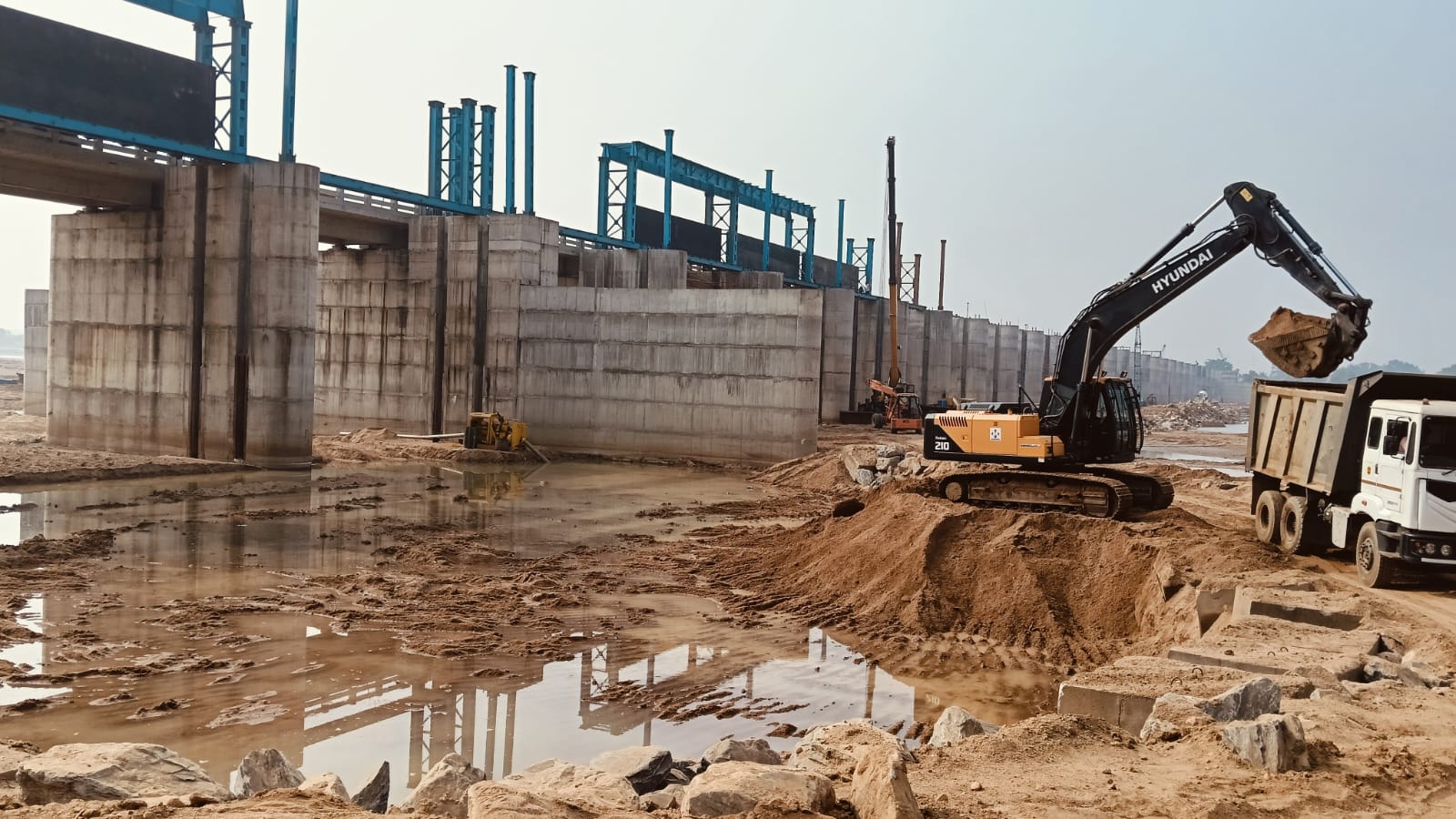Pier no.6 (left) Stop log gate and right side barrage gate second stage concreting work is completed.