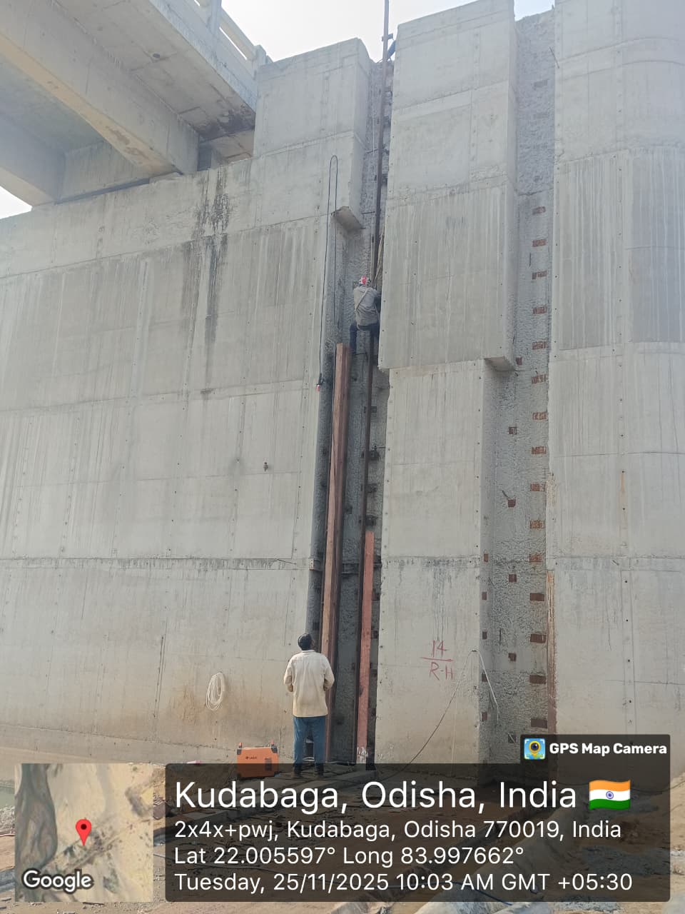 De-shuttering of LHS U/S & D/S Divide wall, 1st lift is under progress.