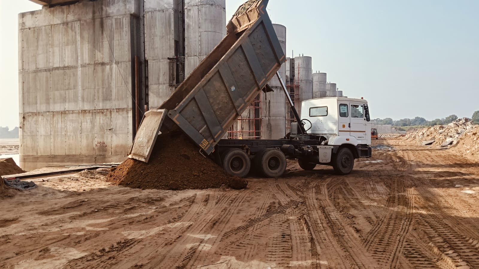 Barrage bay 1, u/s portion soil unloading for crane bed erection work in progress