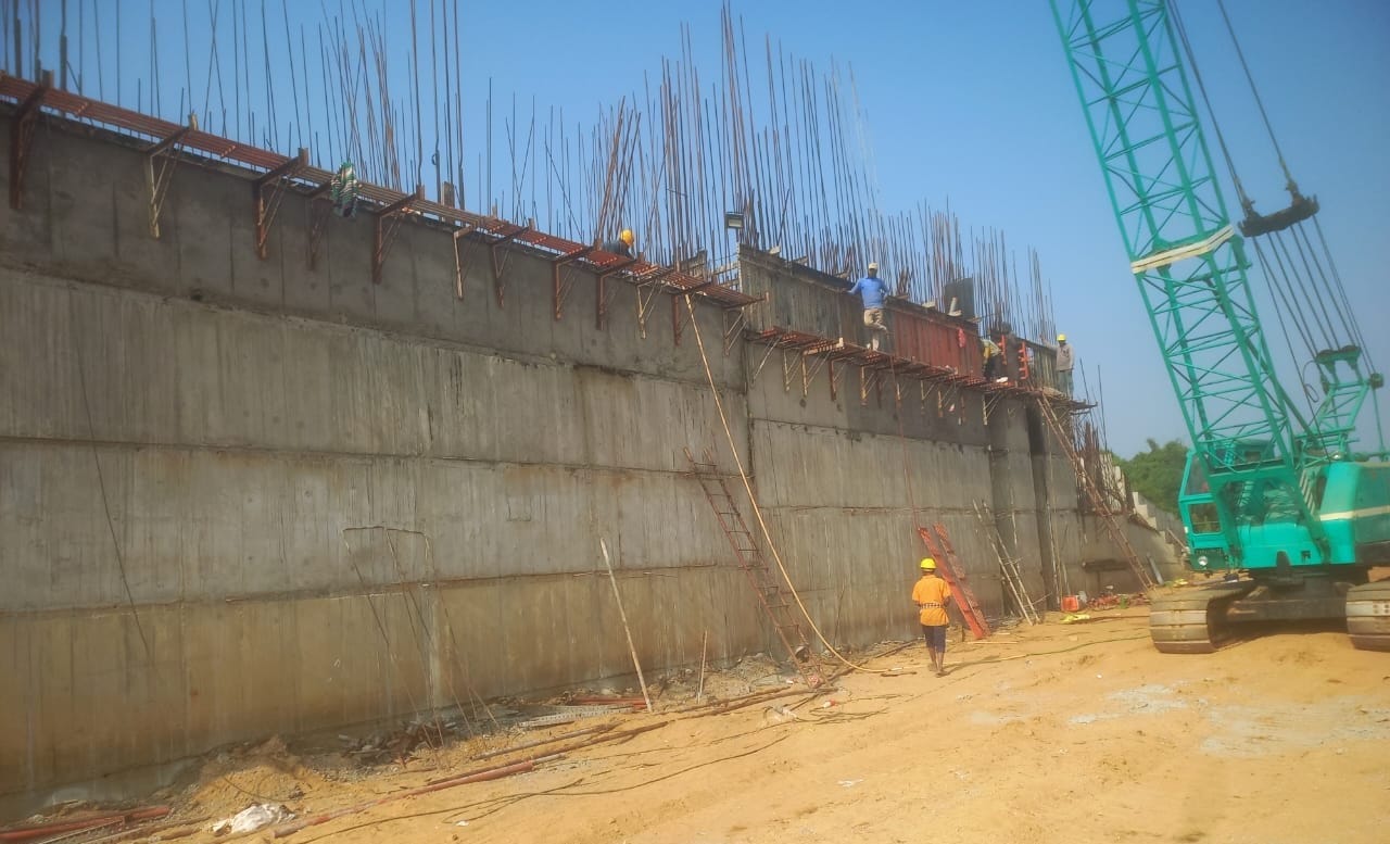 Cleaning & Vertical straightening of reinforcement for Divide wall, 3rd lift is under progress.